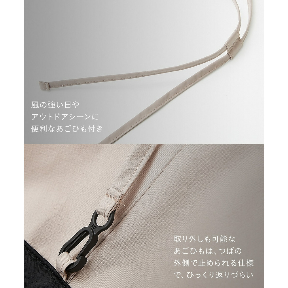 | 素材 | 材質=表側:ポリエステル100% 裏側:ナイロン83% ポリウレタン17% サイズ=L:適応頭囲約60~62cm(外側ドロストコードで調節可) LL:適応頭囲約63~65cm(外側ドロストコードで調節可)つばの長さ=約12.5cm あごひも取り外し可 UVカット率99%以上 手洗い可 |