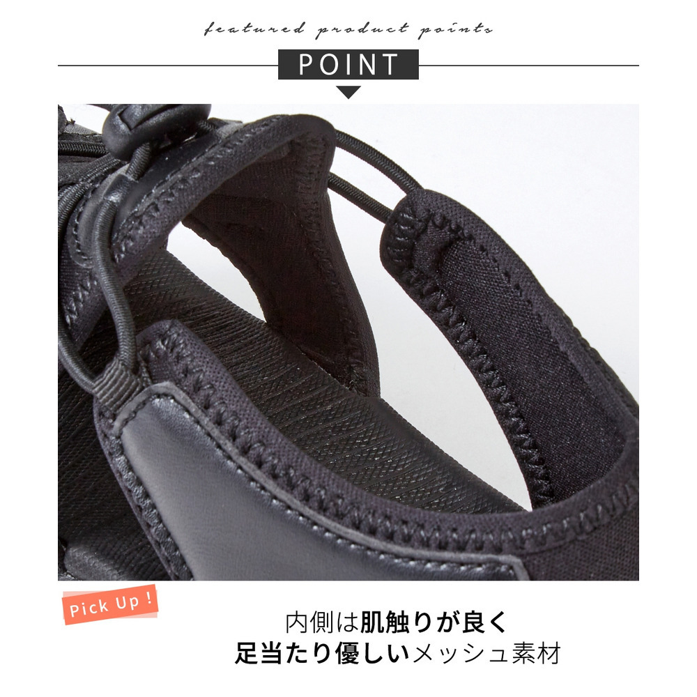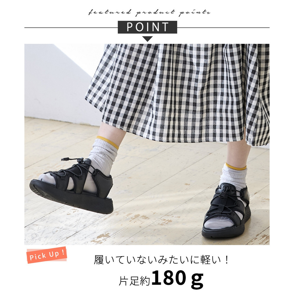 | 素材 | 材質=合成繊維・合成皮革 底材=合成底 底の厚さ(後ろ)=約5cm ワイズ=4E 重量=約180g(4E:Lサイズ片足) ※生産時期や素材などによって多少個体差があります。 |