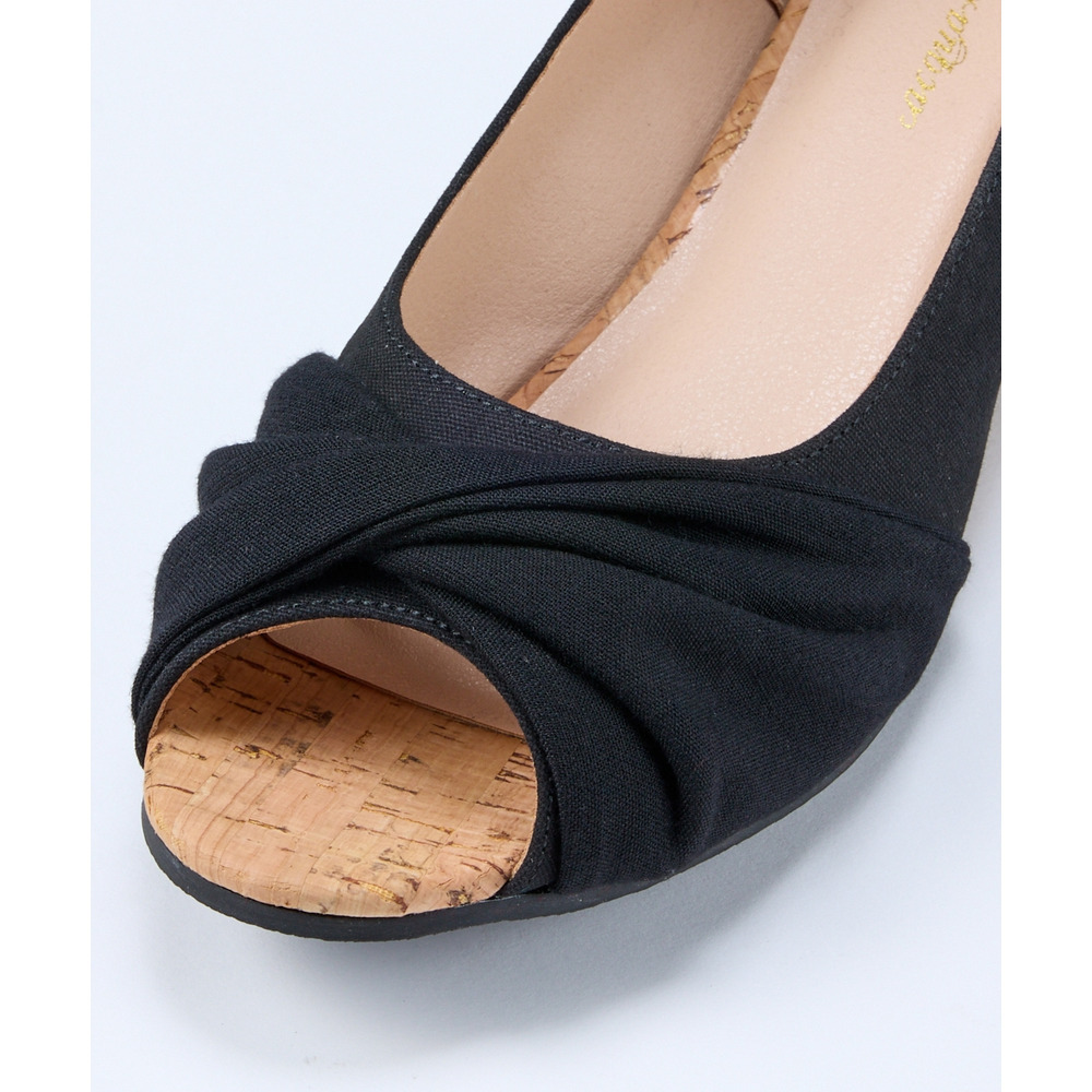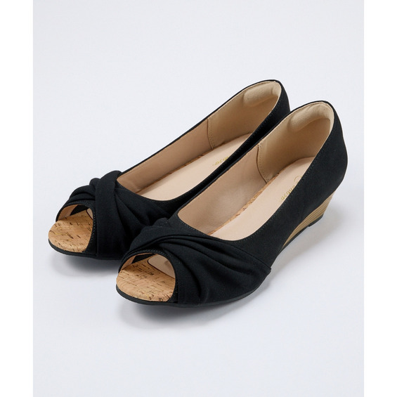 【ゆったり幅広】痛いところにやさしいツイストターバンオープントゥウェッジパンプス(ワイズ4E)
