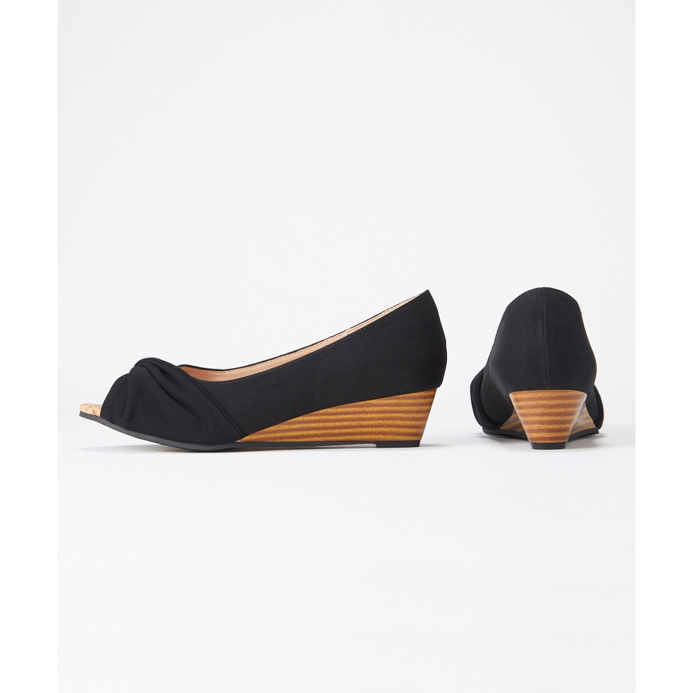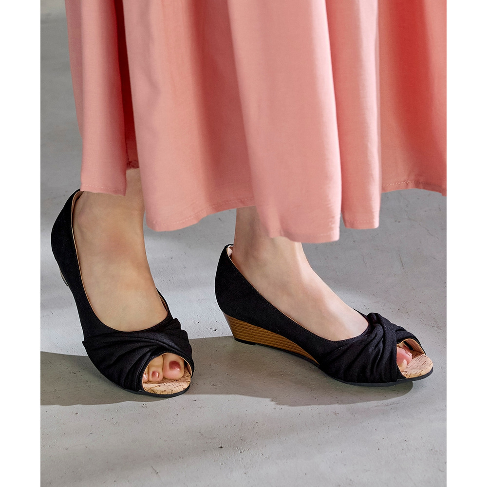 • 【ゆったり幅広】痛いところにやさしいツイストターバンオープントゥウェッジパンプス(ワイズ4E)1