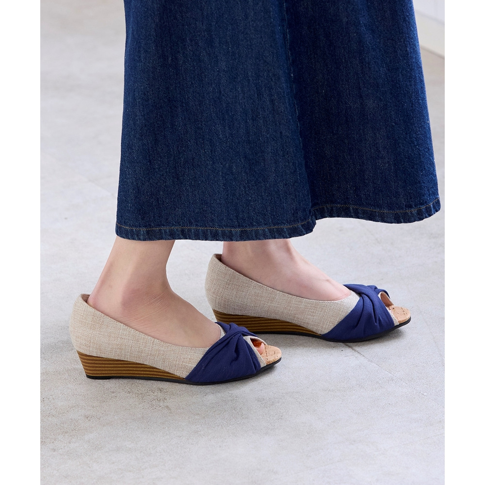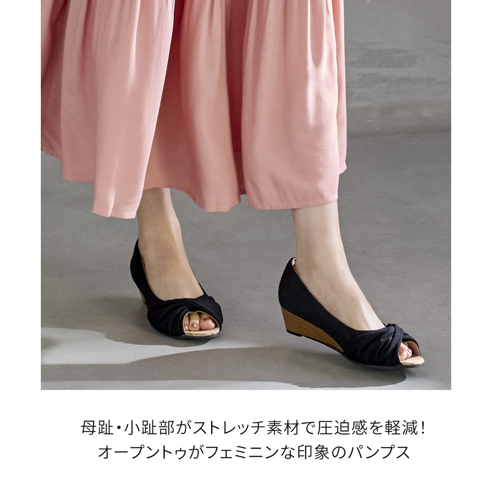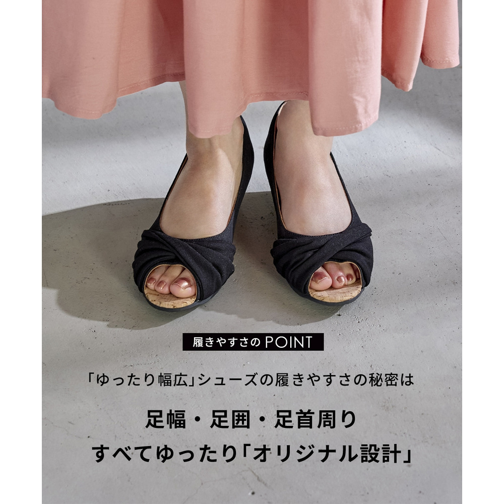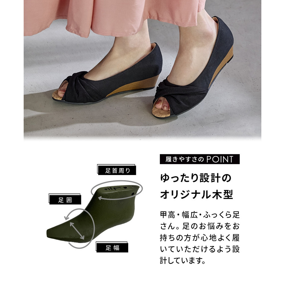 • 【ゆったり幅広】痛いところにやさしいツイストターバンオープントゥウェッジパンプス(ワイズ4E)24