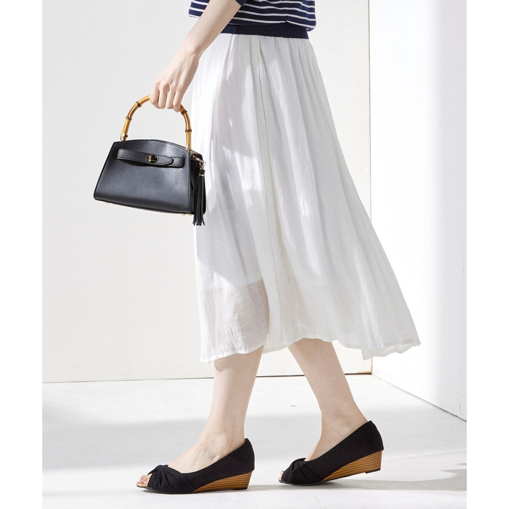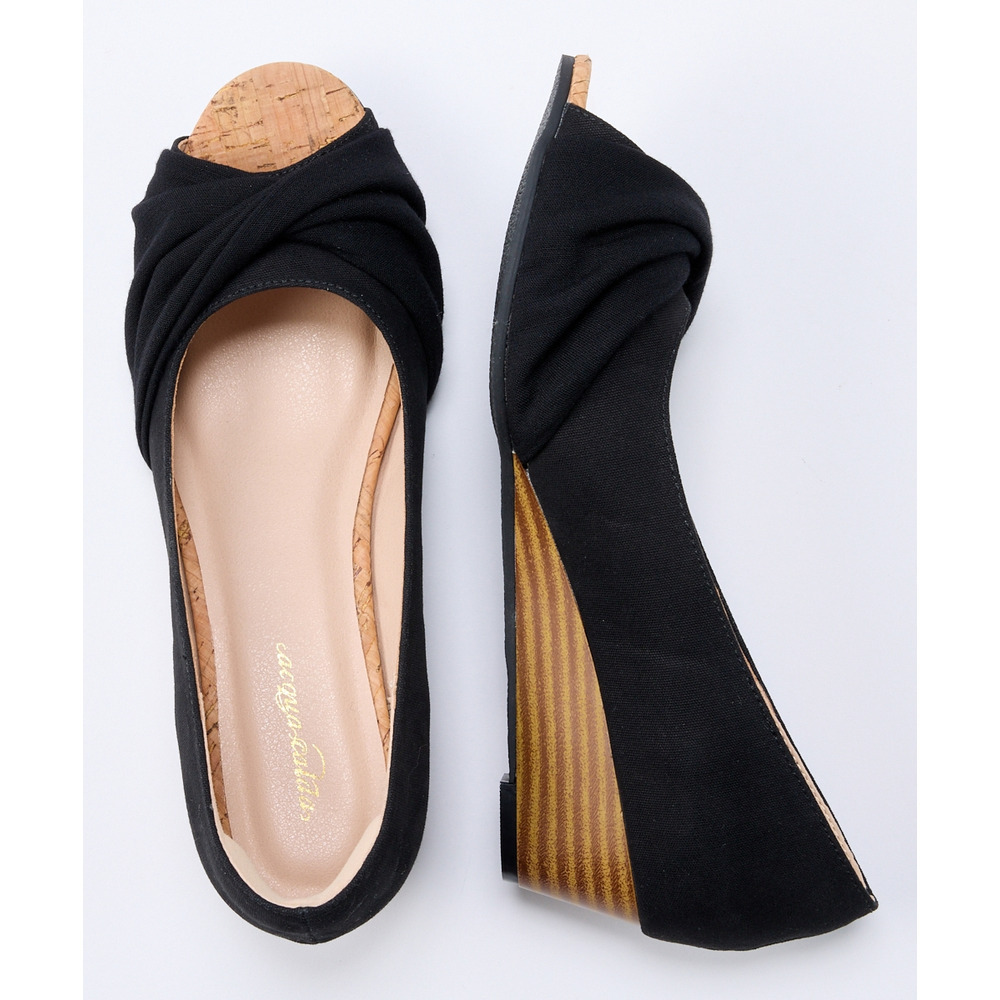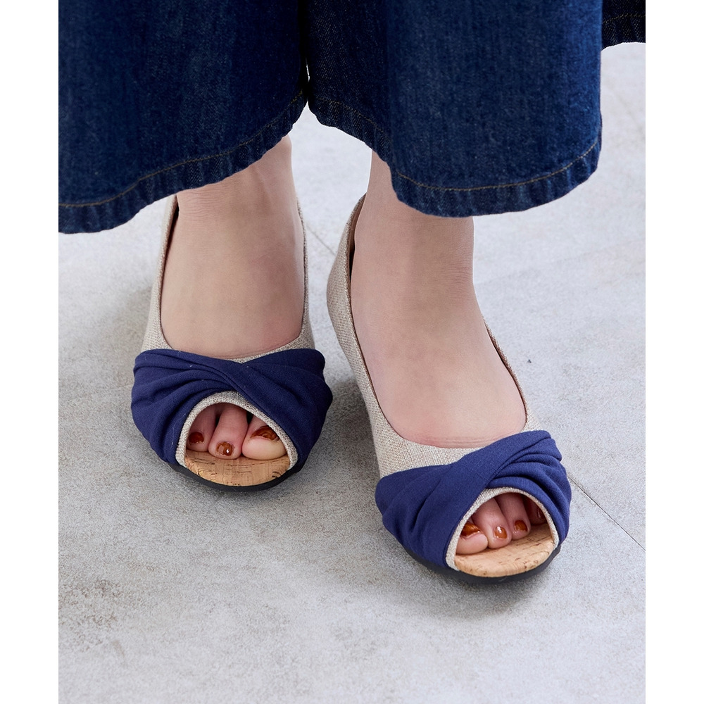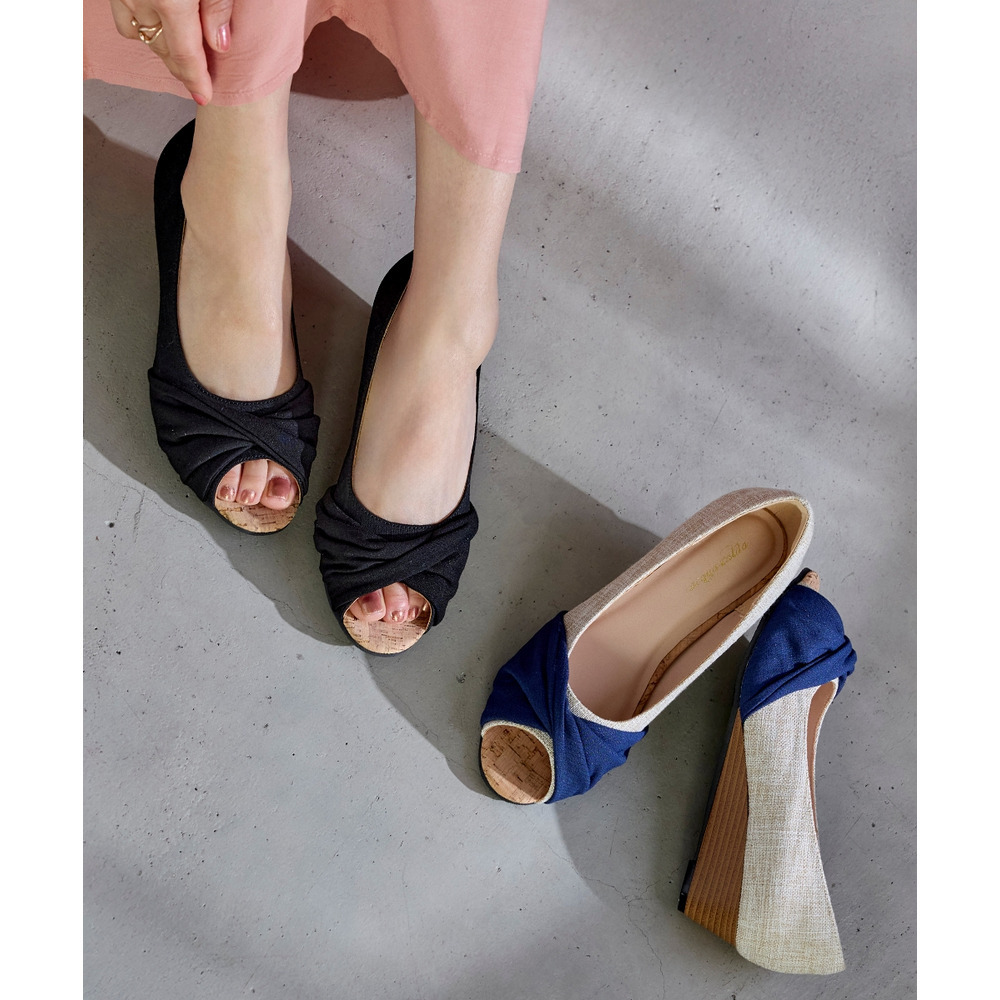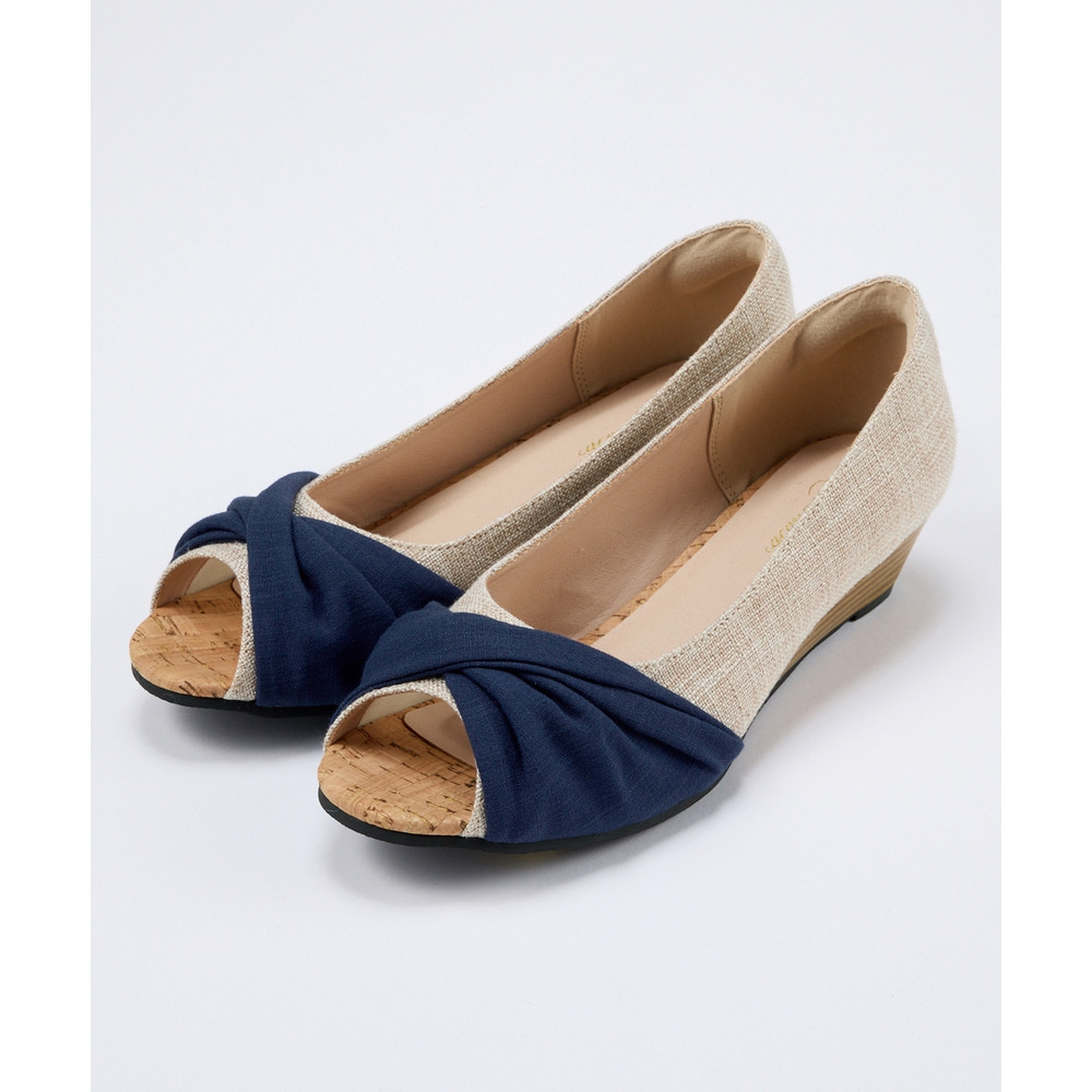 • 【ゆったり幅広】痛いところにやさしいツイストターバンオープントゥウェッジパンプス(ワイズ4E)24