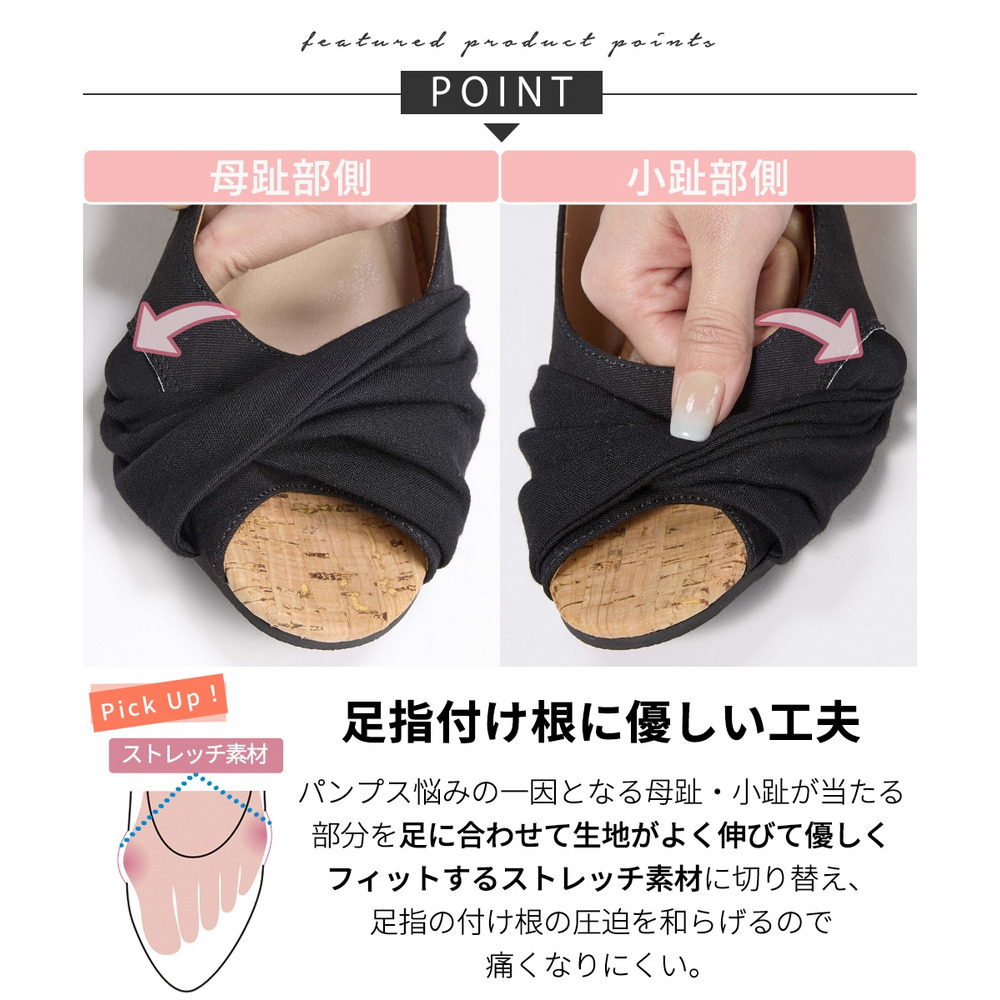 • 【ゆったり幅広】痛いところにやさしいツイストターバンオープントゥウェッジパンプス(ワイズ4E)4