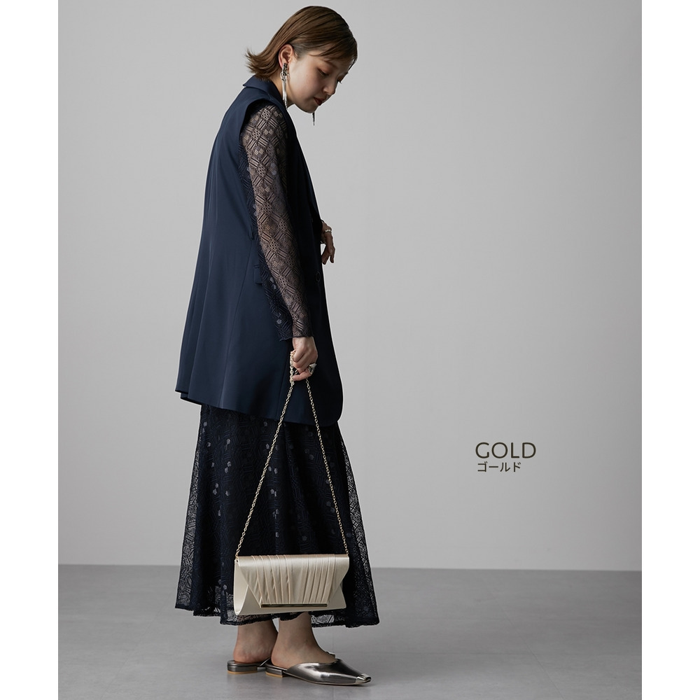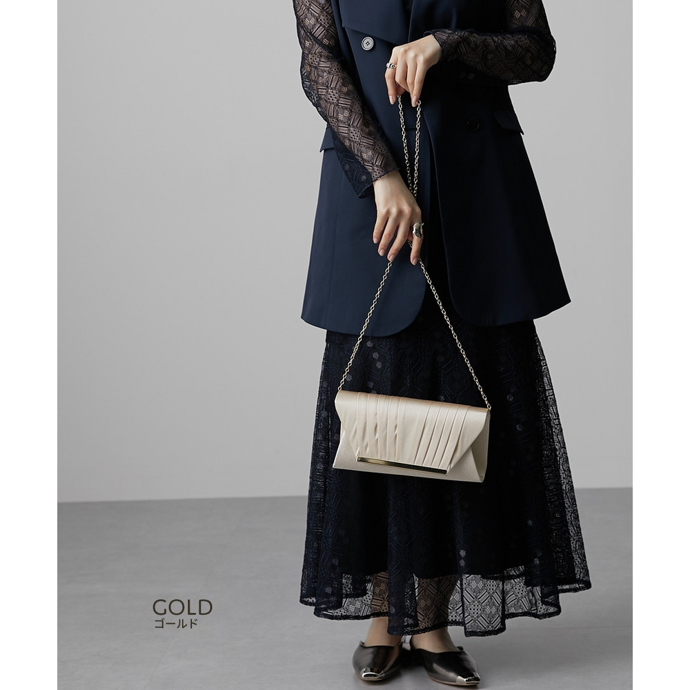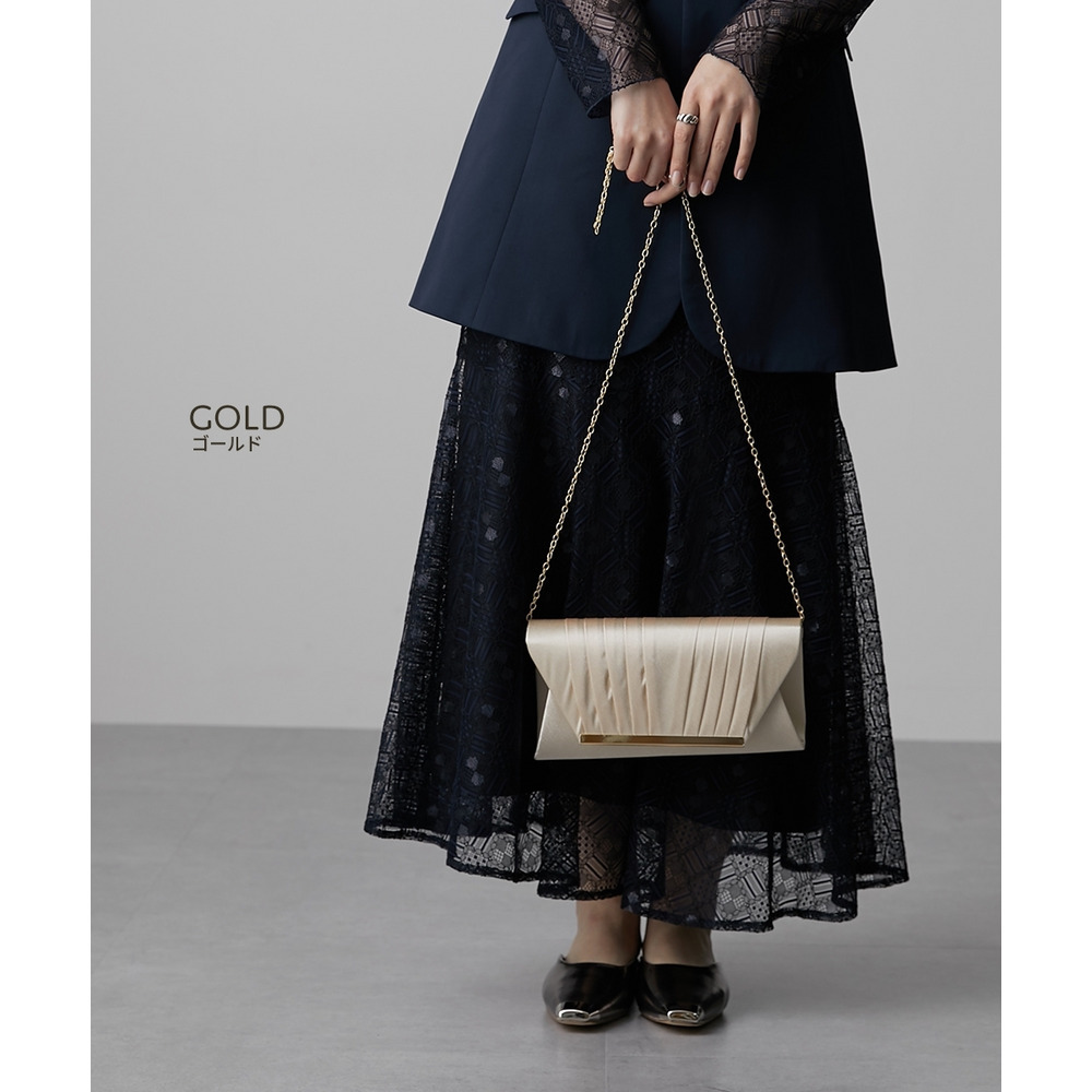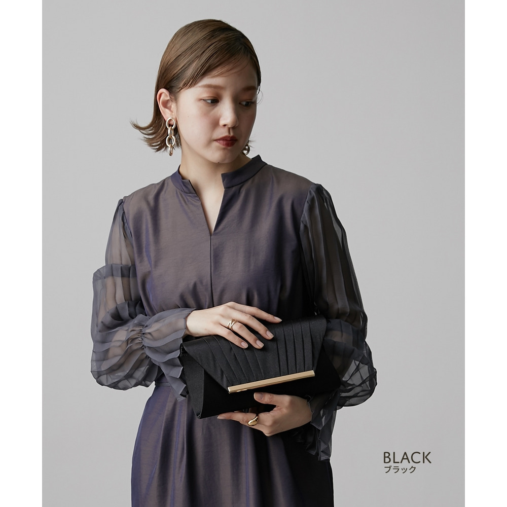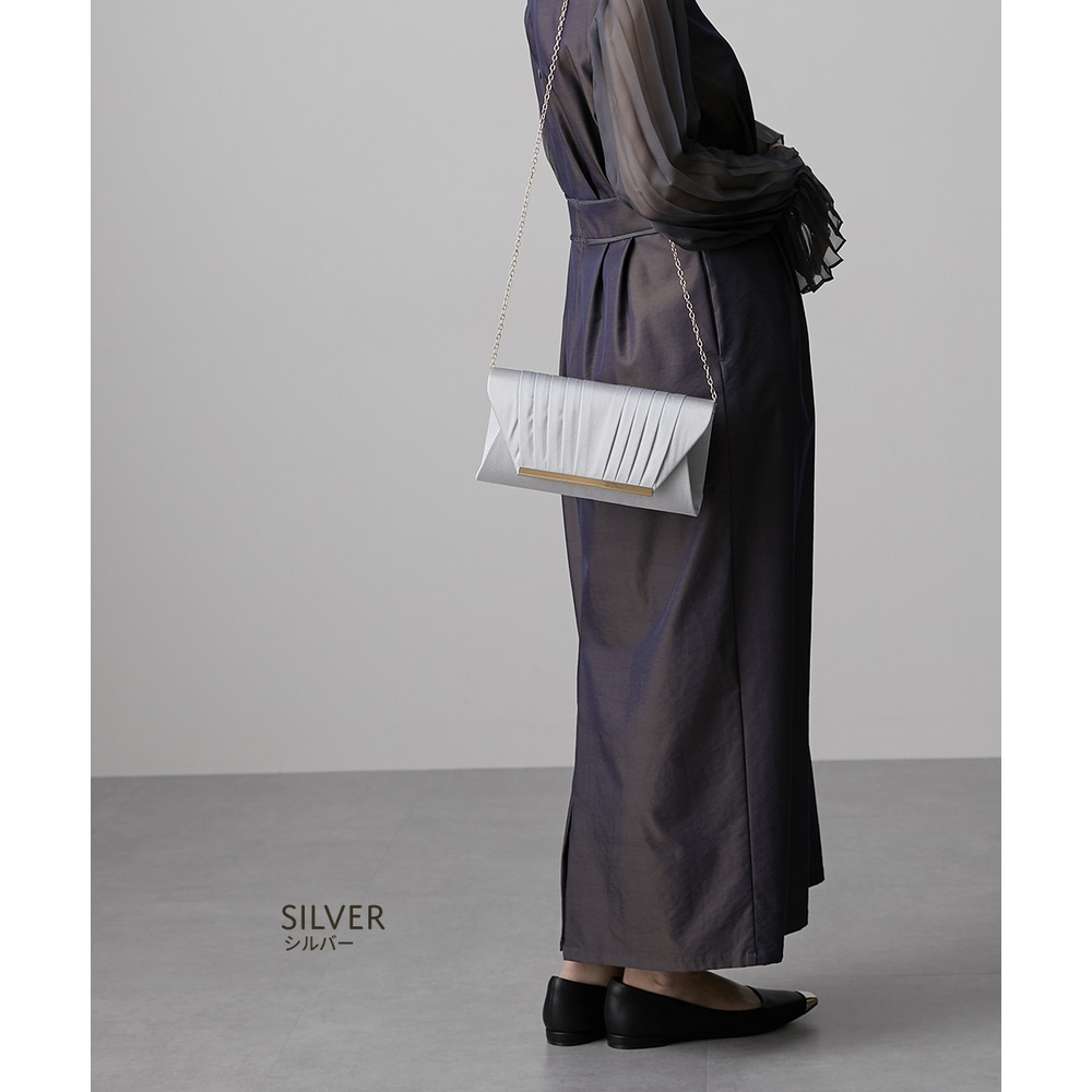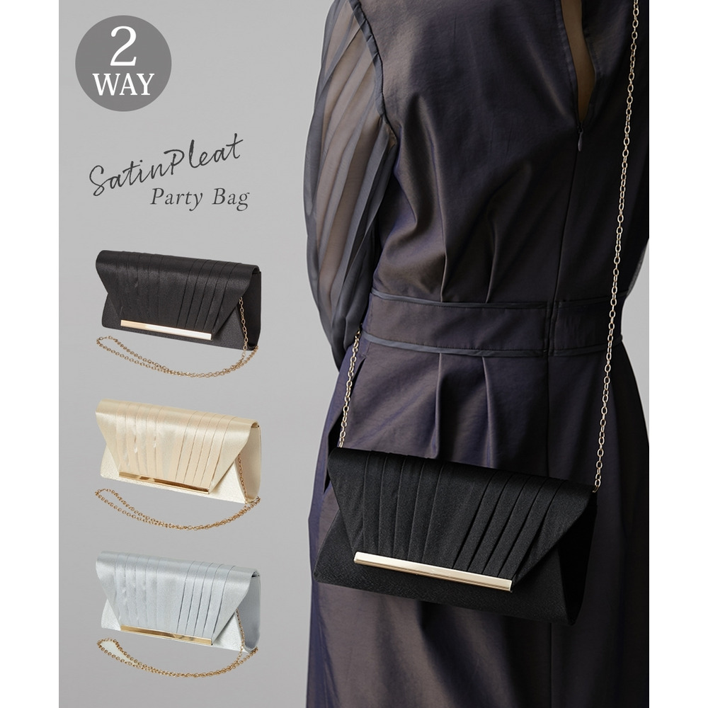 【結婚式バッグ】サテンプリーツ2WAYパーティーバッグ