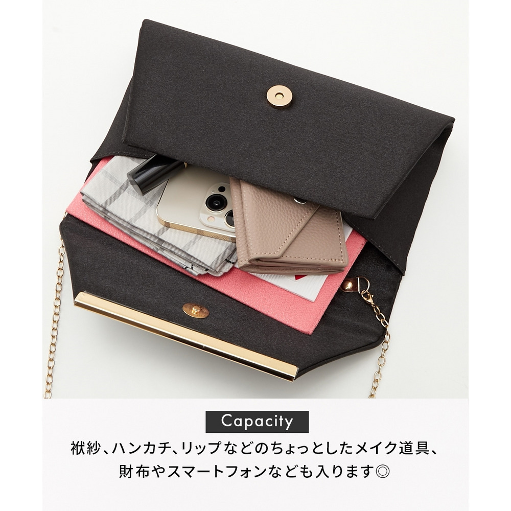 袱紗、ハンカチ、携帯、ミニ財布等、必要最低限の荷物がしっかり収納できます。