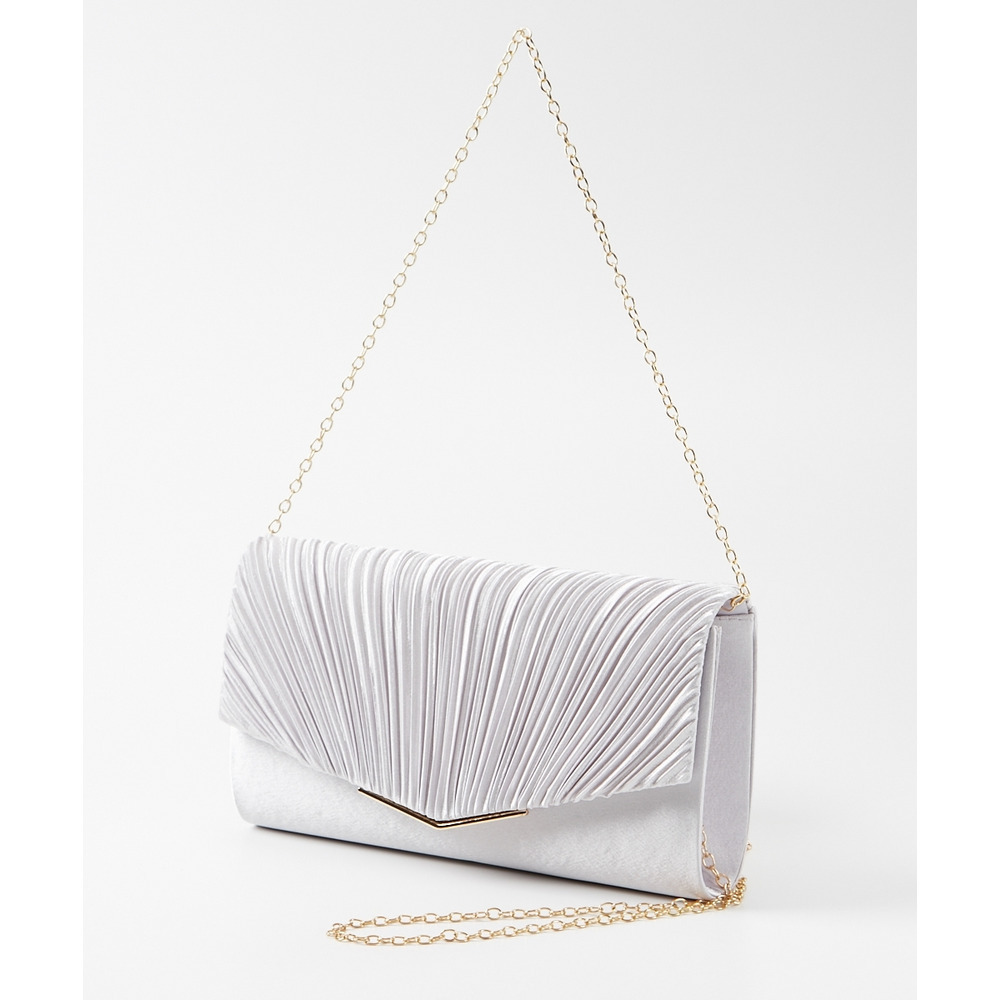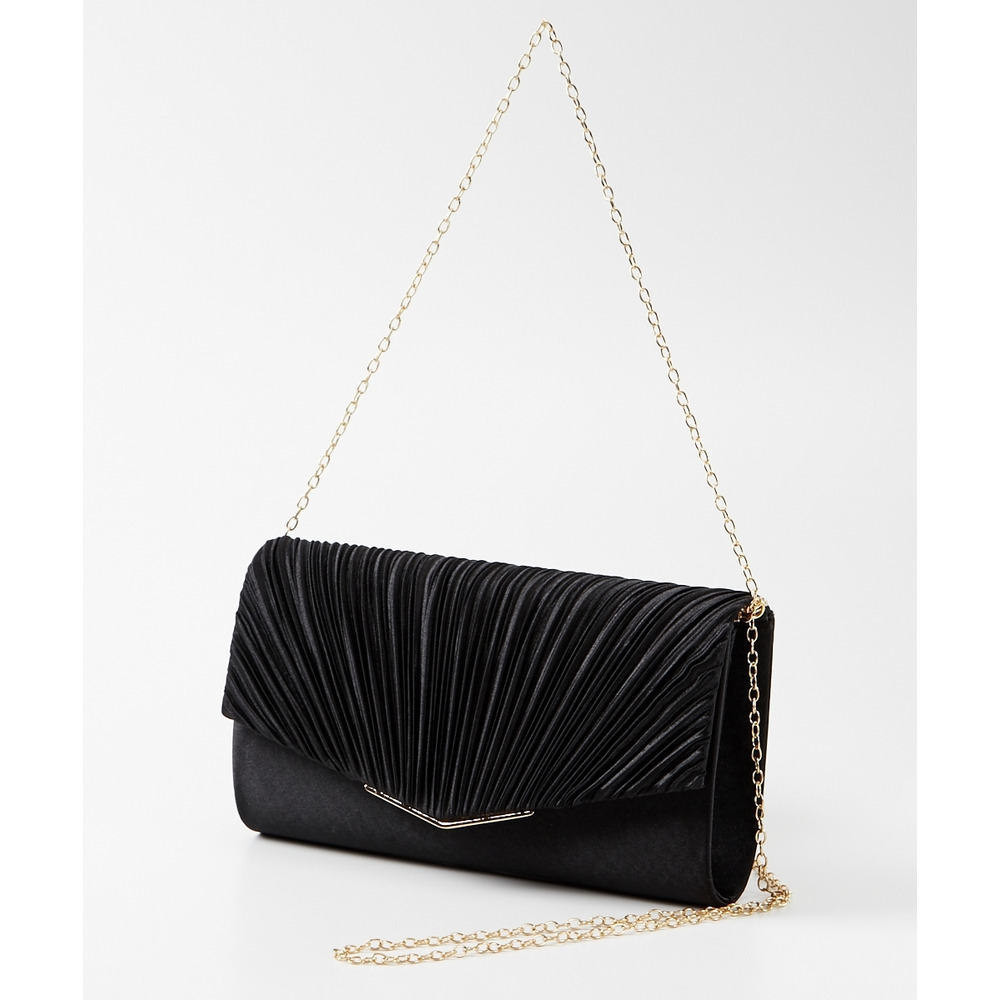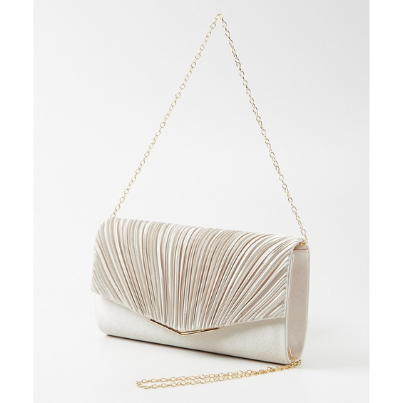 シンプルかつプリーツデザインが華やかなパーティバッグ。
