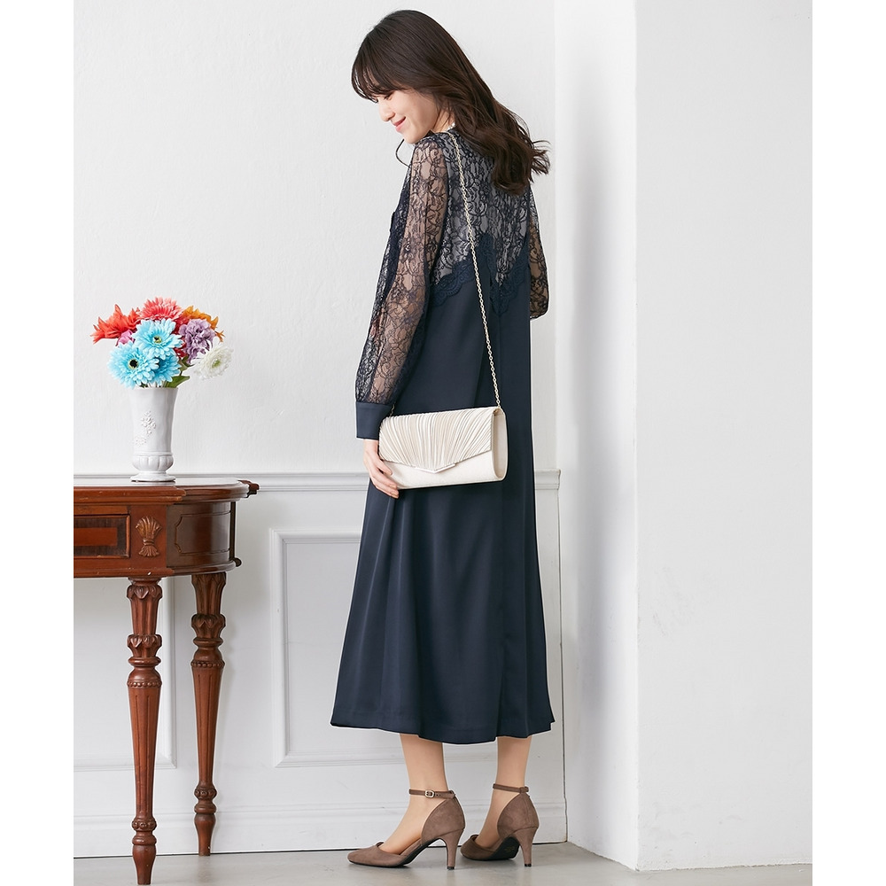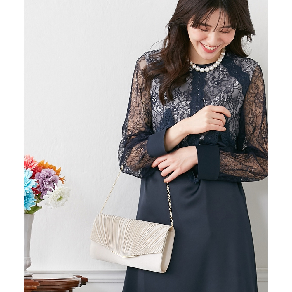 細かなプリーツとメタルパーツ使いがフォーマルなシーンにマッチ。