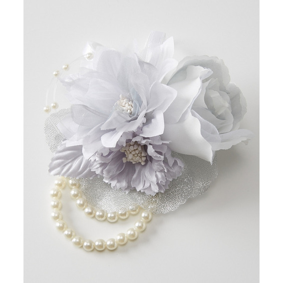 コサージュの後ろはヘアピンとクリップになっているので、アレンジOKの2WAY仕様。