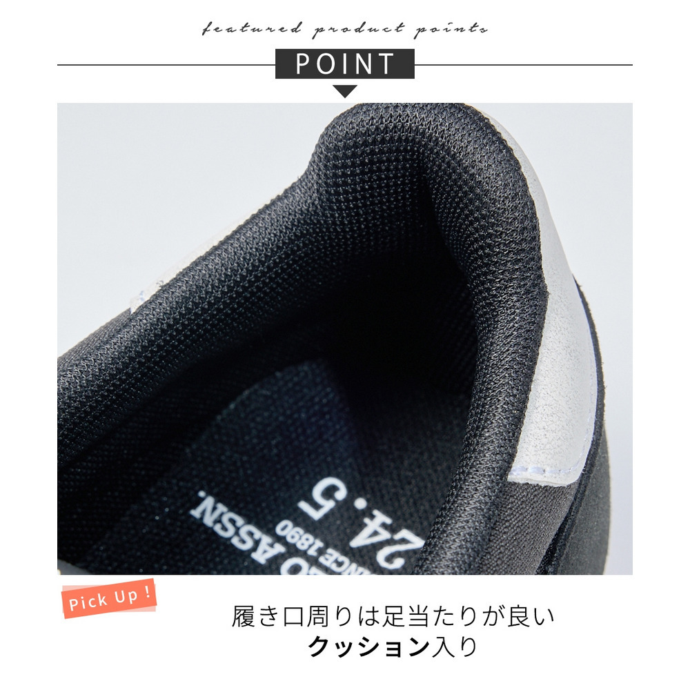 ベロ・サイドに施されたブランドを象徴するロゴがさりげなくアクセントになり、シンプルながら品のある印象に。