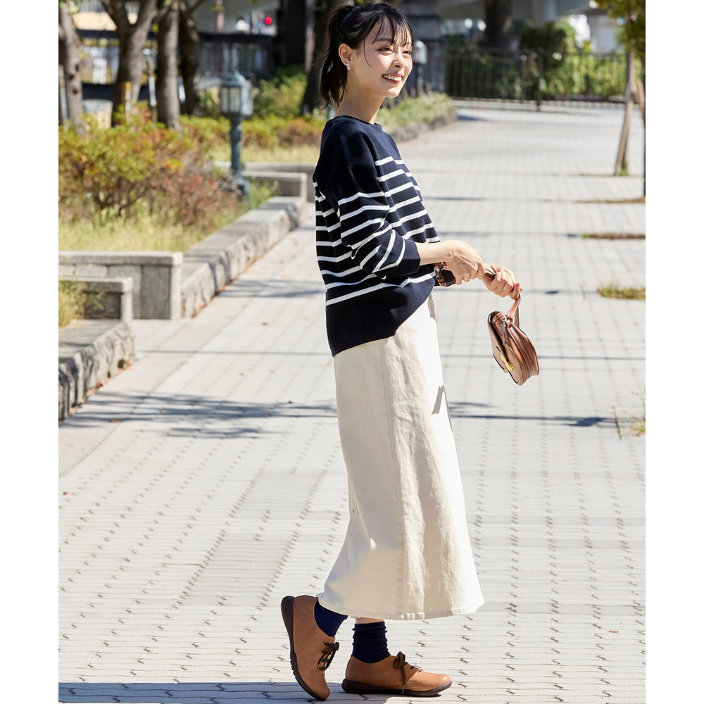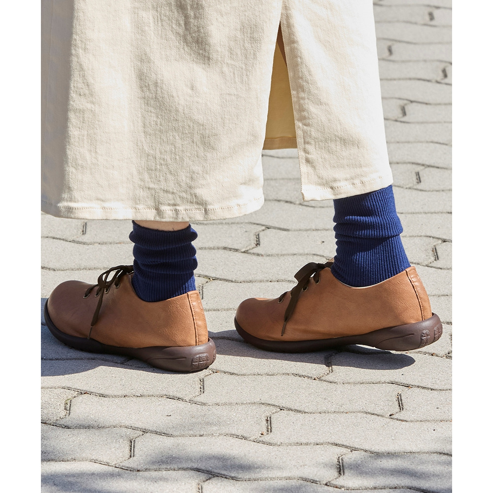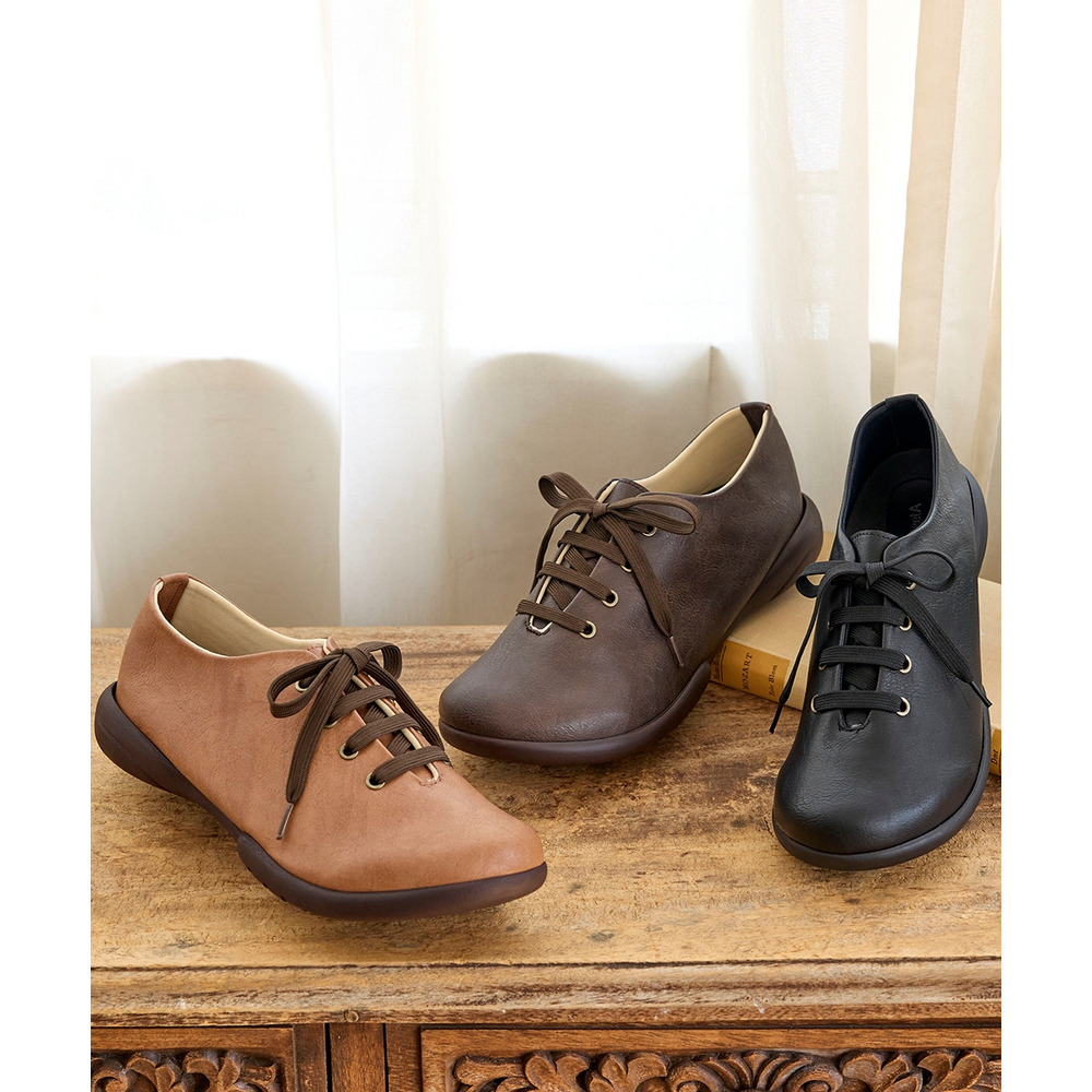季節問わずに履きやすくシンプルで合わせやすい紐靴デザイン。