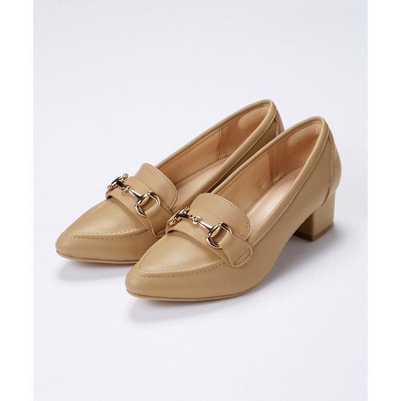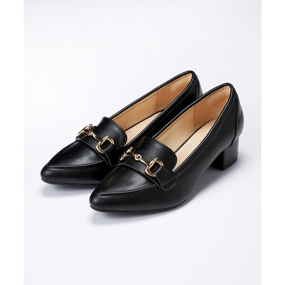 【ゆったり幅広】ビット付ポインテッドトゥローファーパンプス(ワイズ4E)