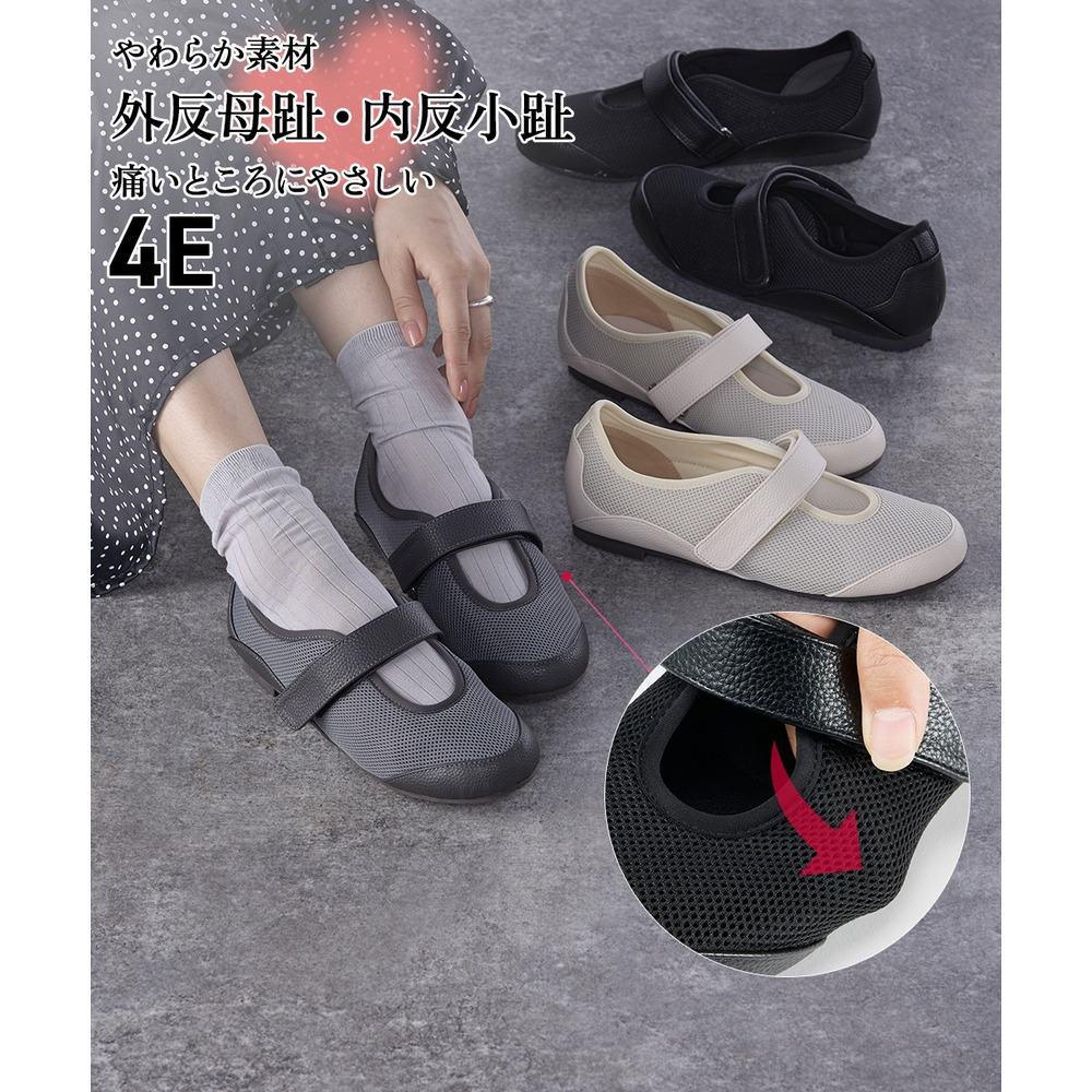 • 【ゆったり幅広】痛いところにやさしいワンベルトメッシュシューズ(ワイズ4E)4
