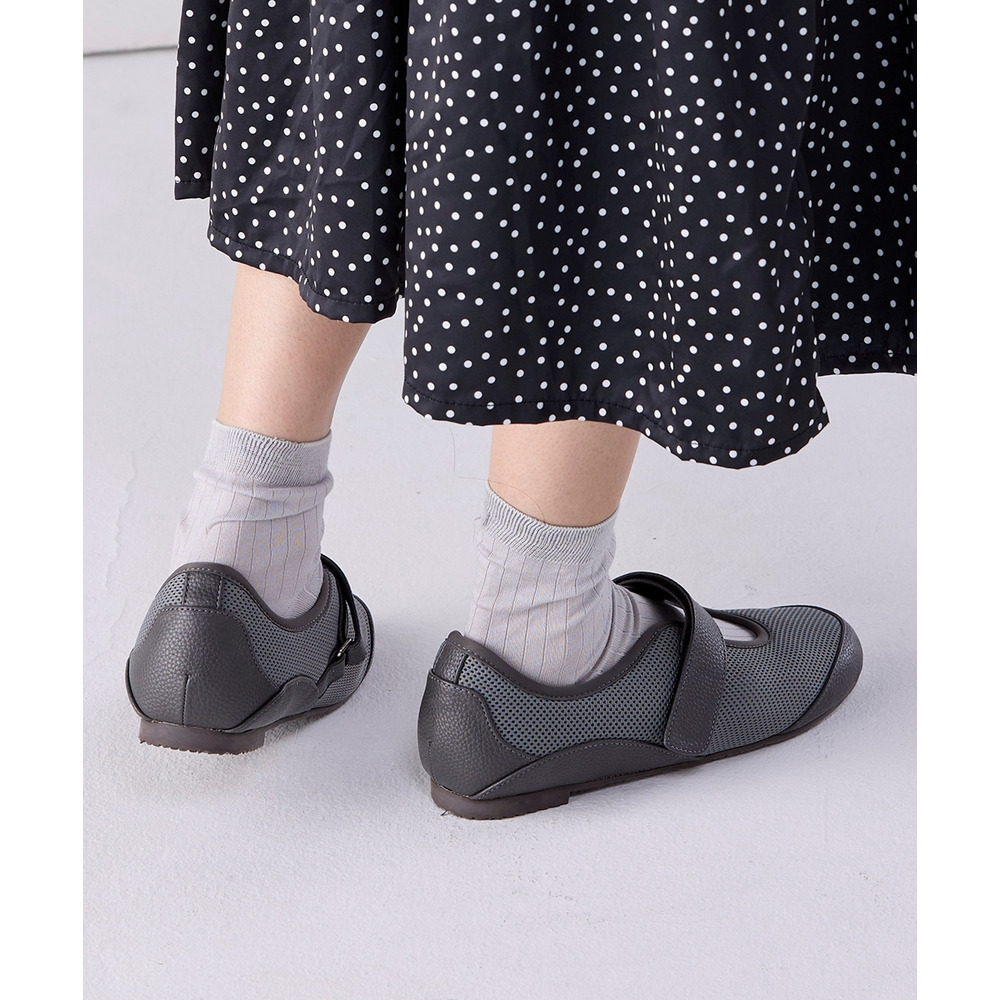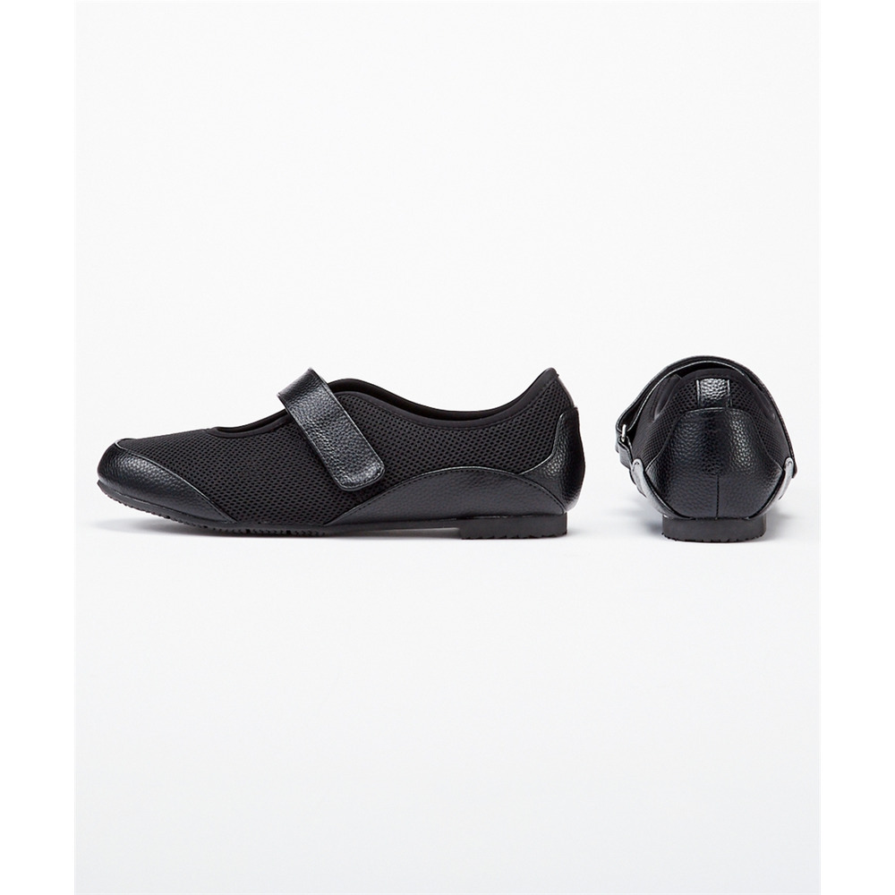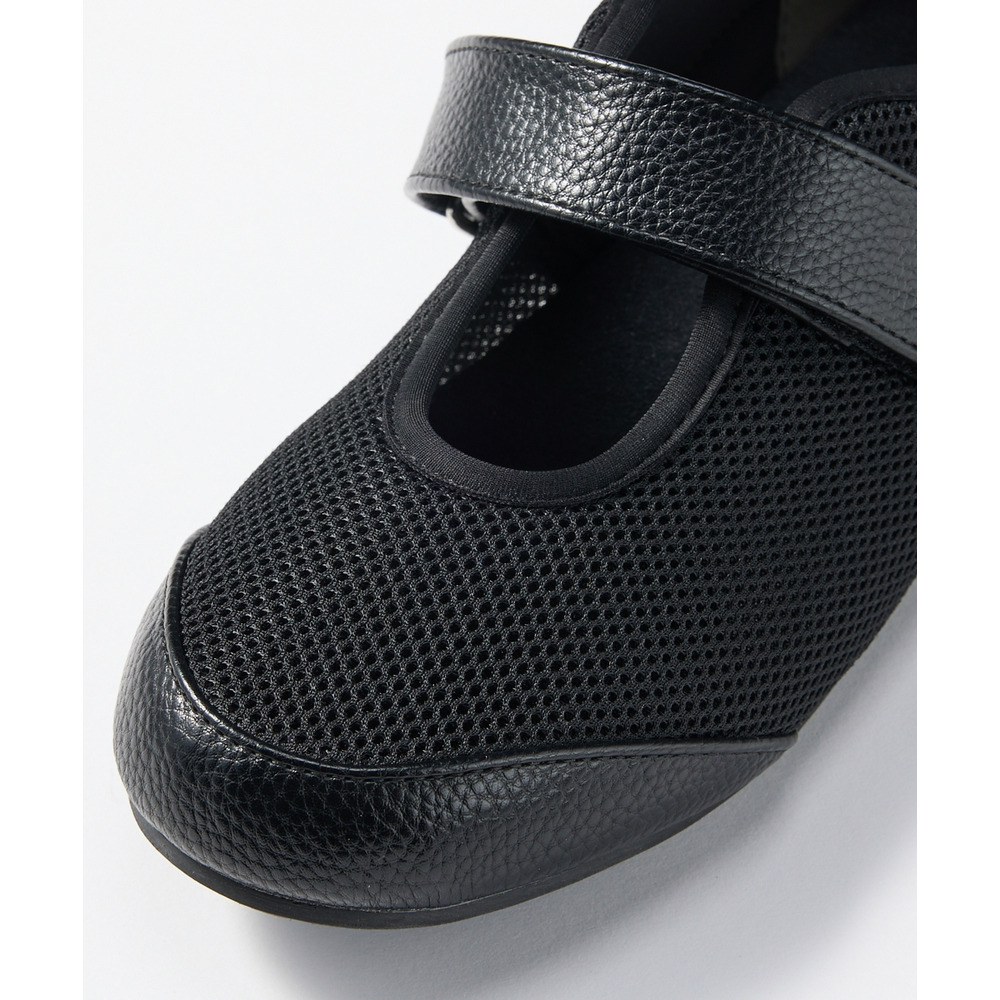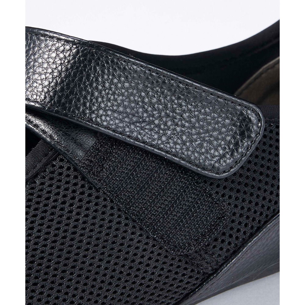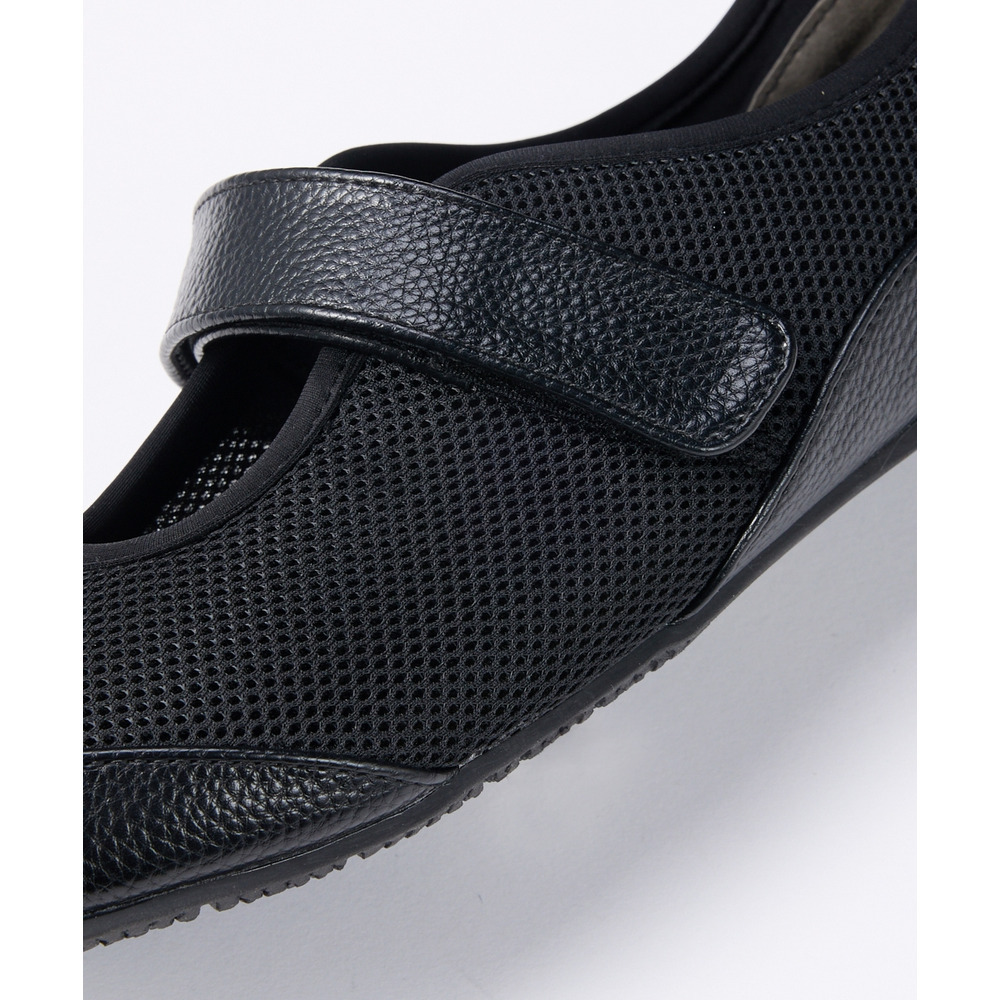 外反母趾、内反小趾さんが痛いと感じる部分にやわらかいメッシュ素材をあしらうことで、窮屈感なく履いていただける仕様に仕立てたベルトシューズ。