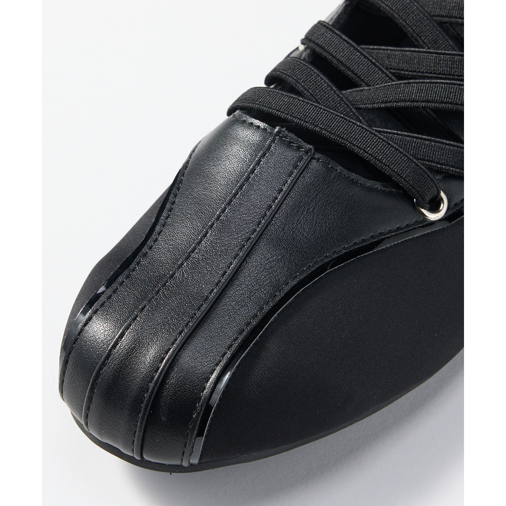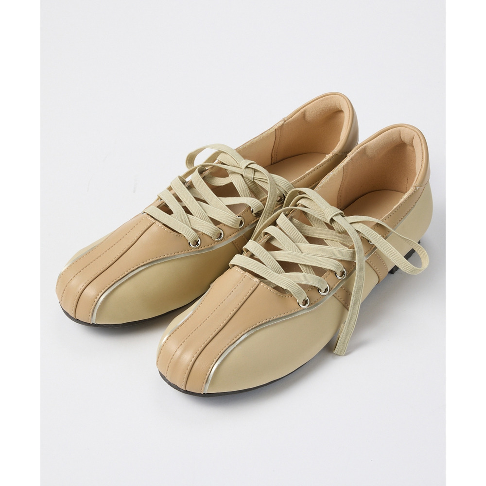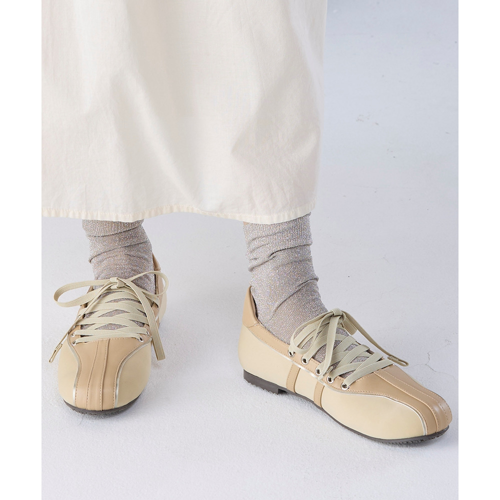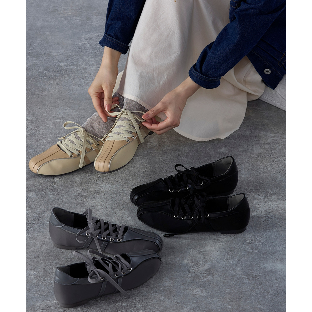 外反母趾さん、内反小趾さんが痛いと感じる部分にストレッチ素材をあしらうことで、窮屈感なく履いていただける仕様に仕立てたレースアップシューズ。