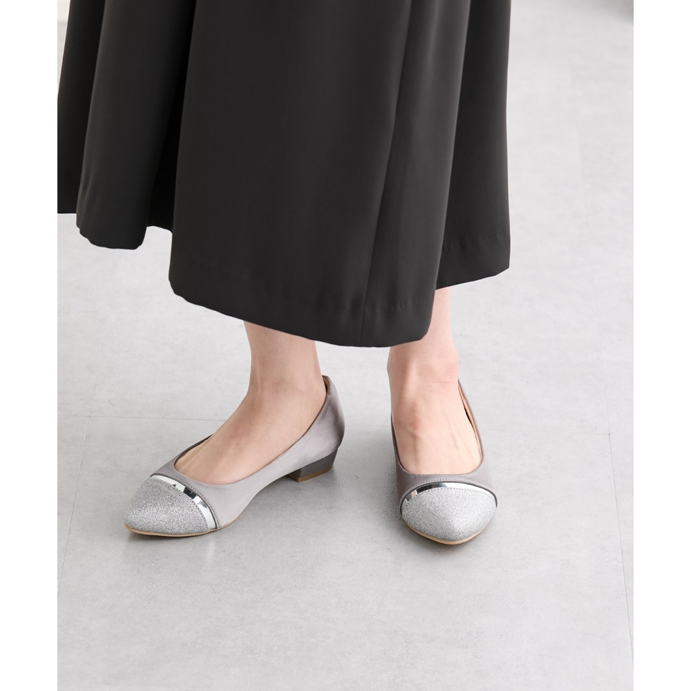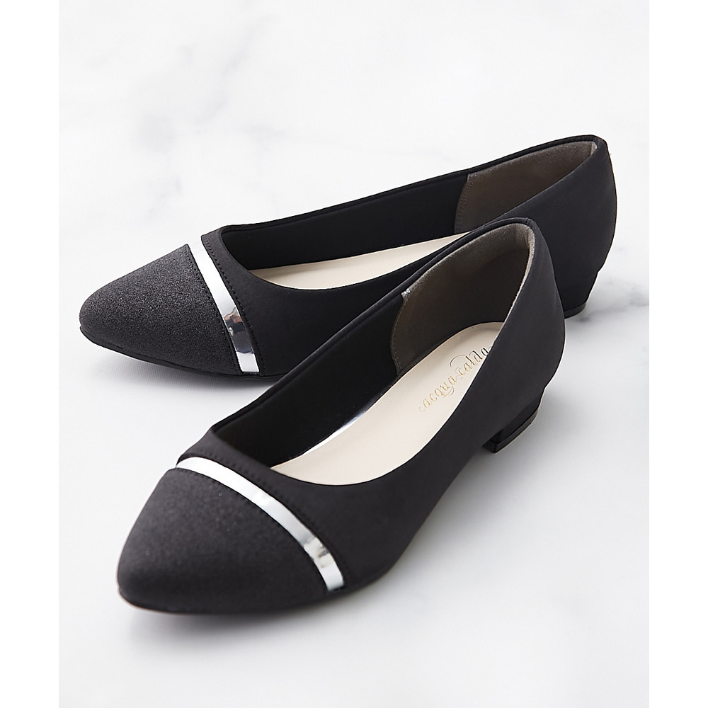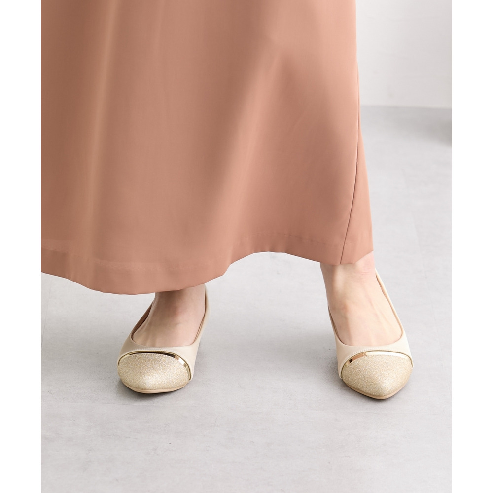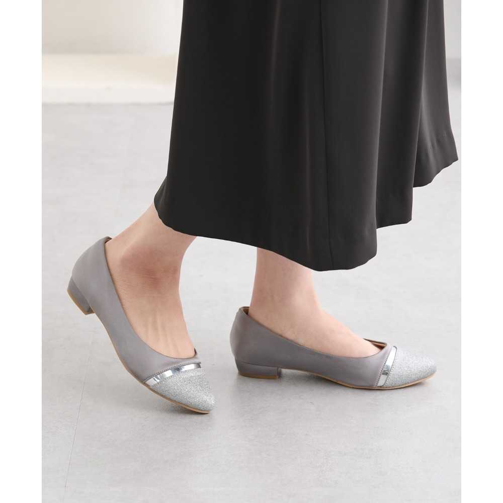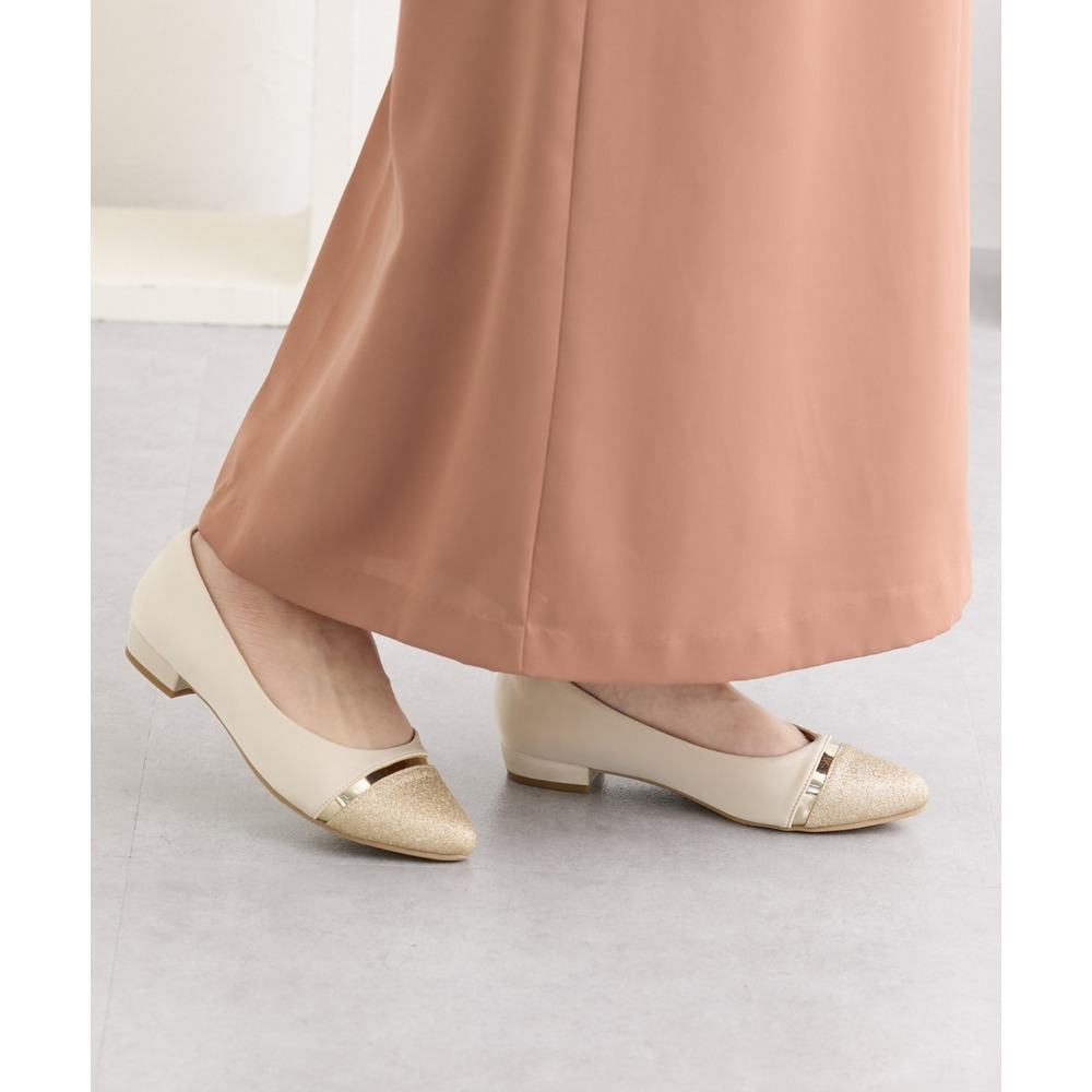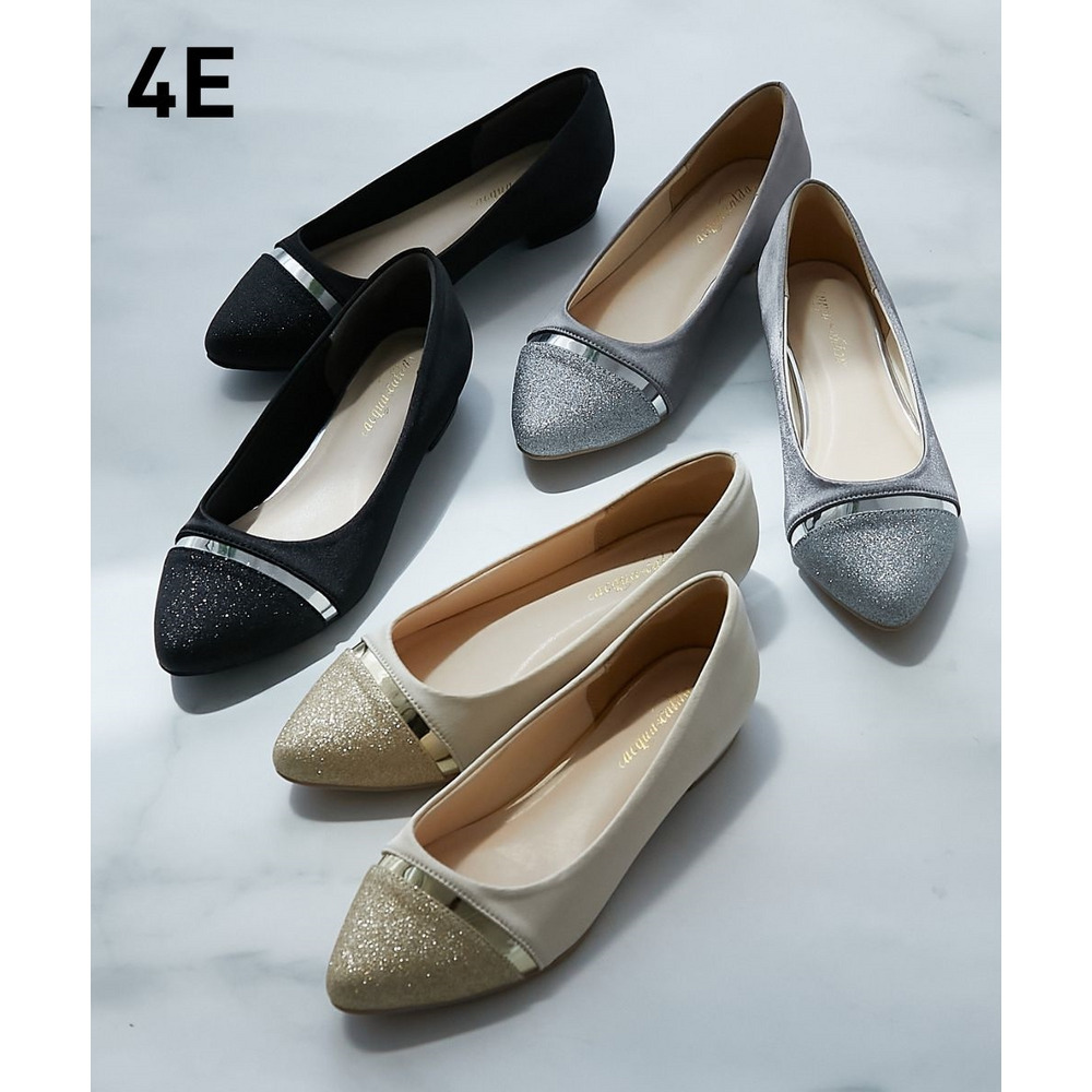 【ゆったり幅広】ラメ切り替えパンプス(ワイズ4E)