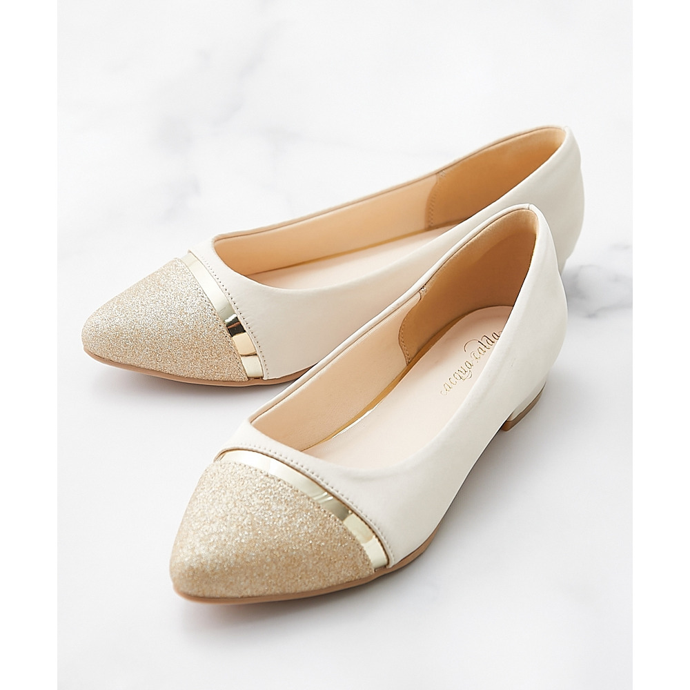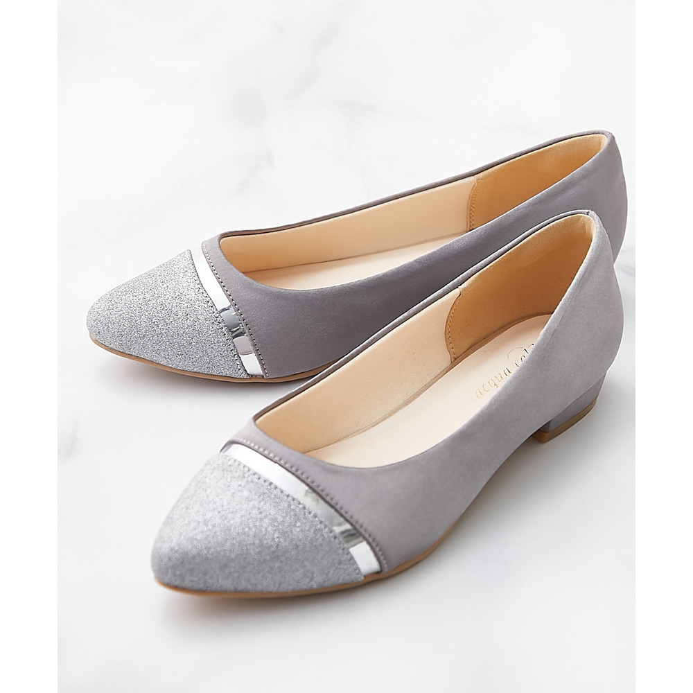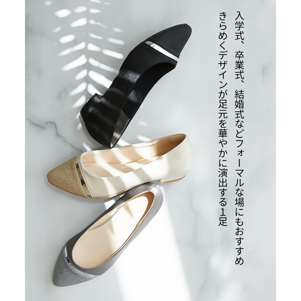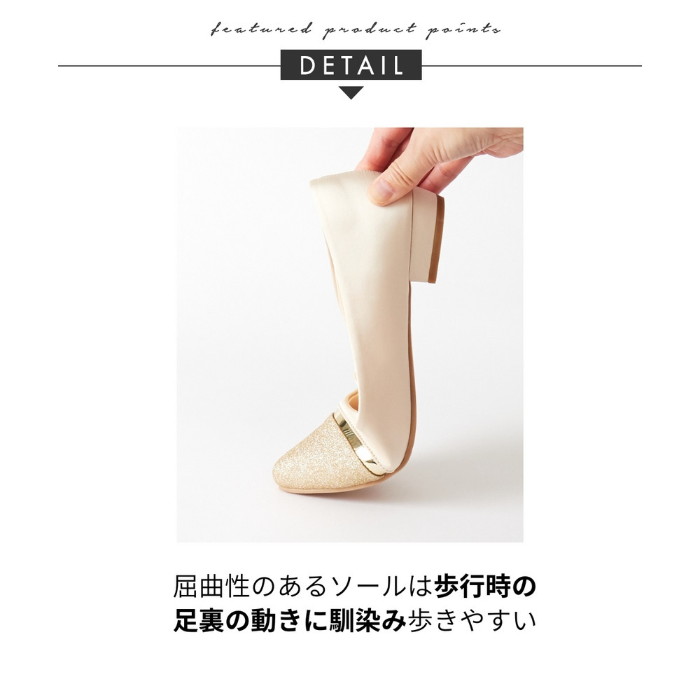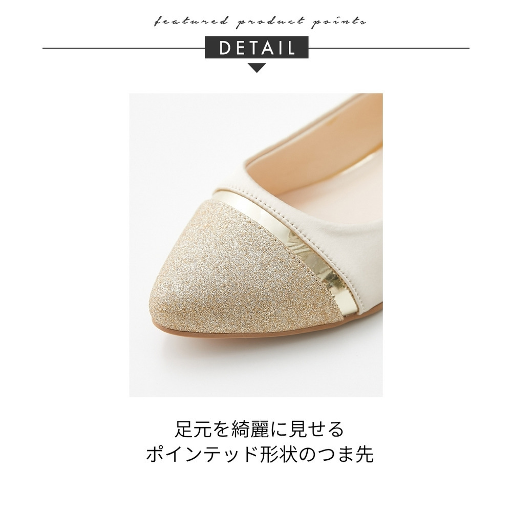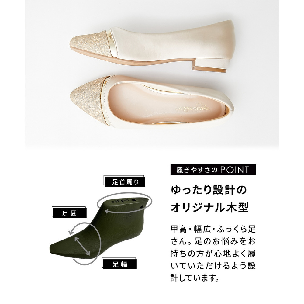 【ゆったり幅広】ラメ切り替えパンプス(ワイズ4E)
