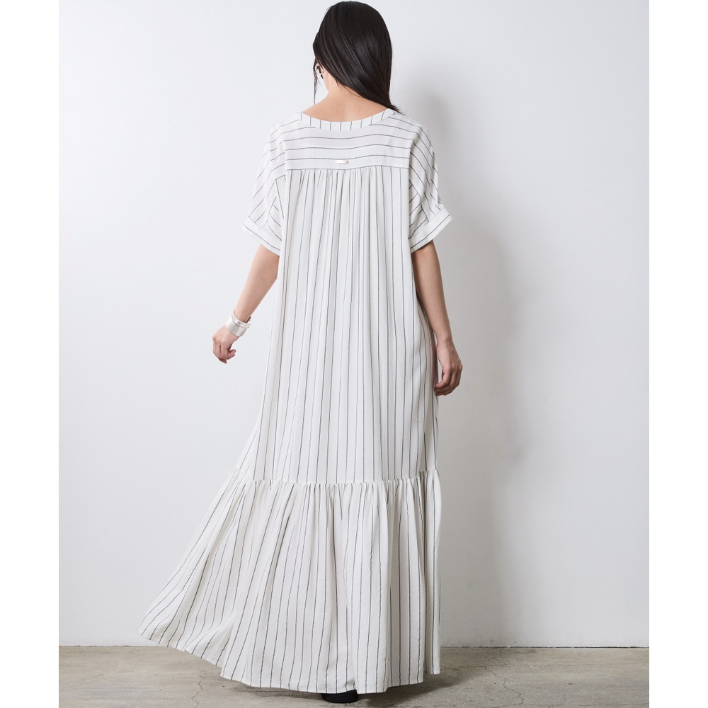 シックなストライプ柄とゆったりとしたシルエットが魅力のワンピース。