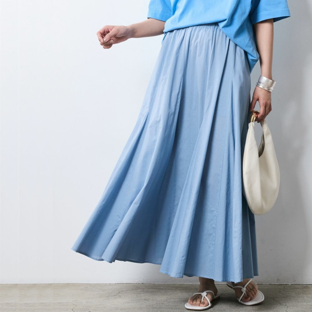 歩くたびにドラマテックに揺れるフレアシルエットが印象的なロングスカート。