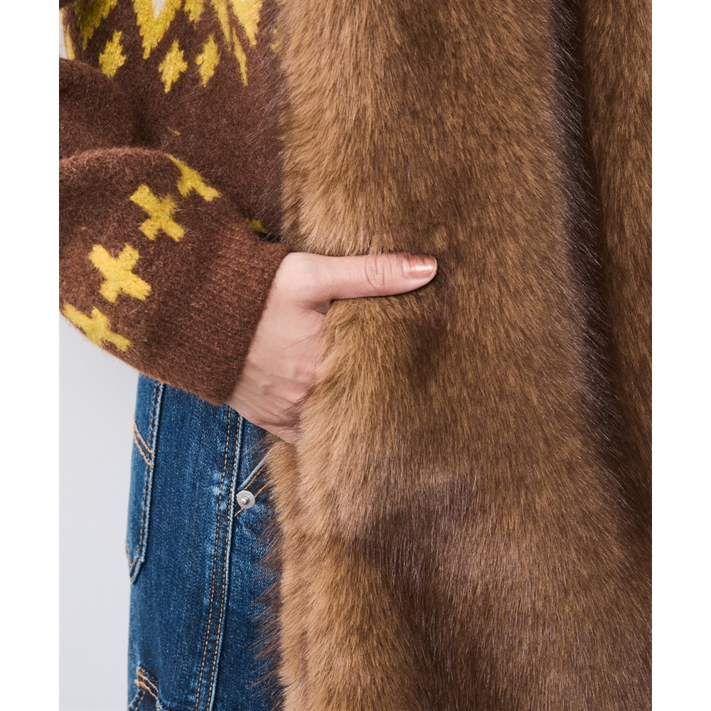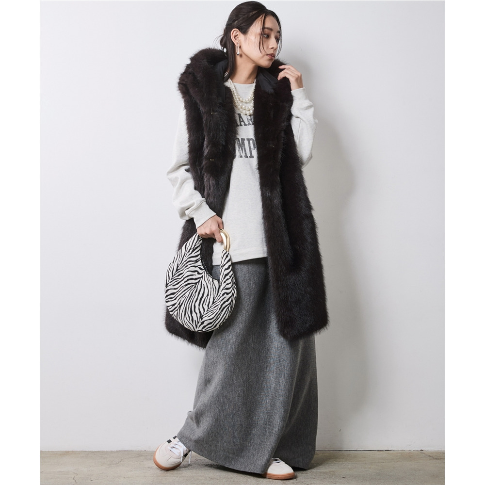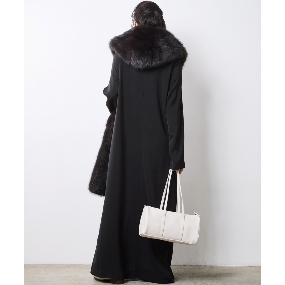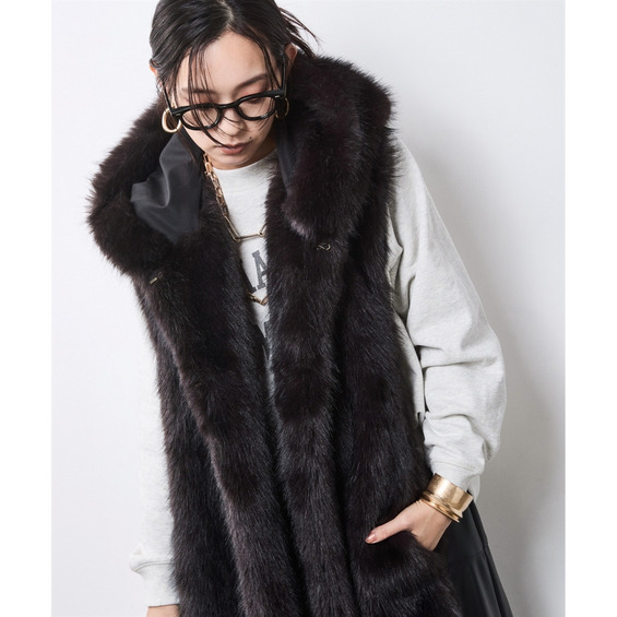 顔周りを華やかに彩るボリューム感のあるフェイクファーマフラー。