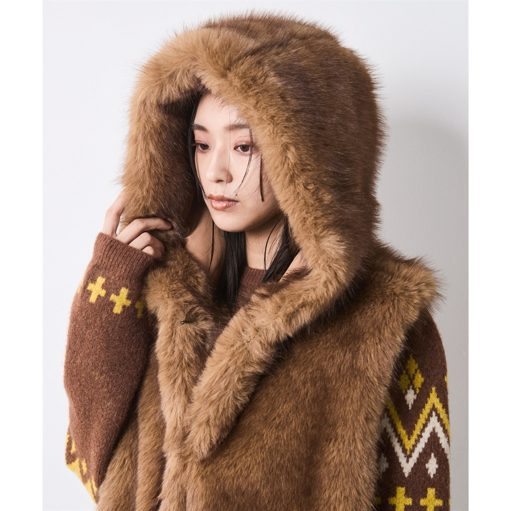 • フェイクファーフーディマフラー 大きいサイズ シックスタイル23