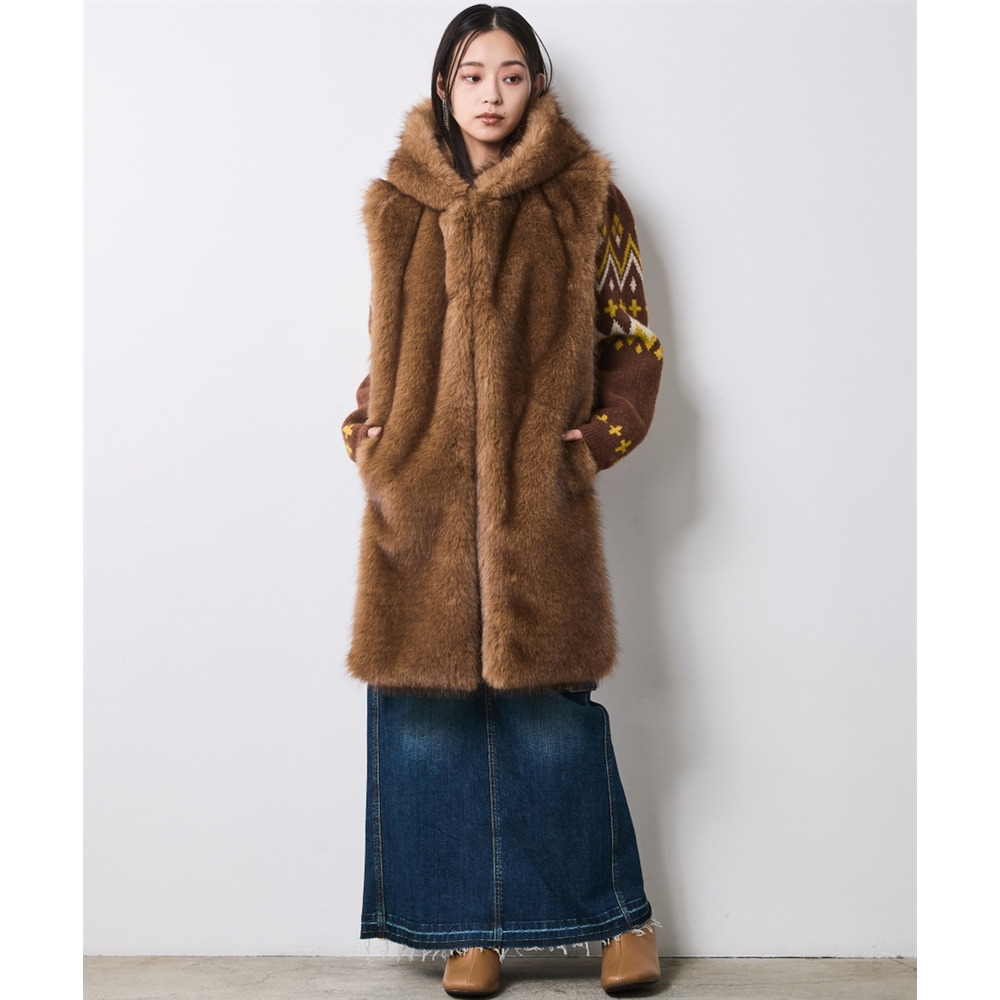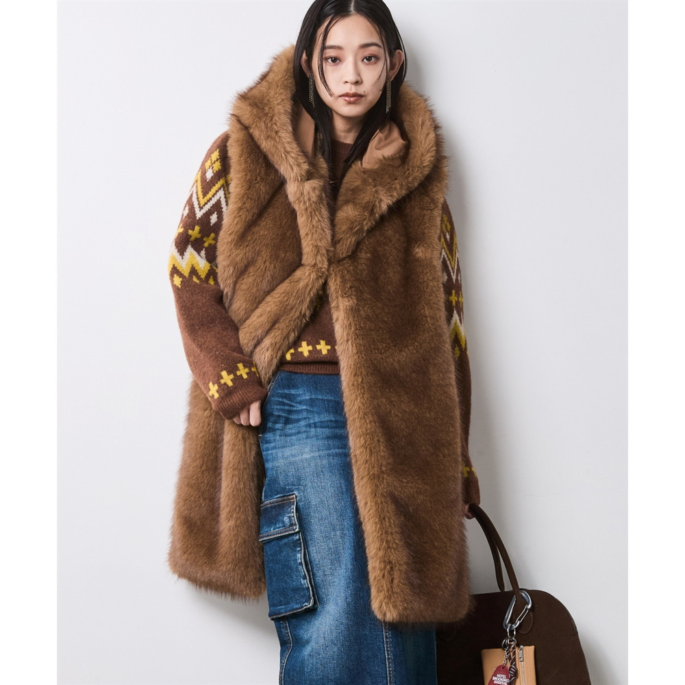 • フェイクファーフーディマフラー 大きいサイズ シックスタイル21