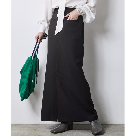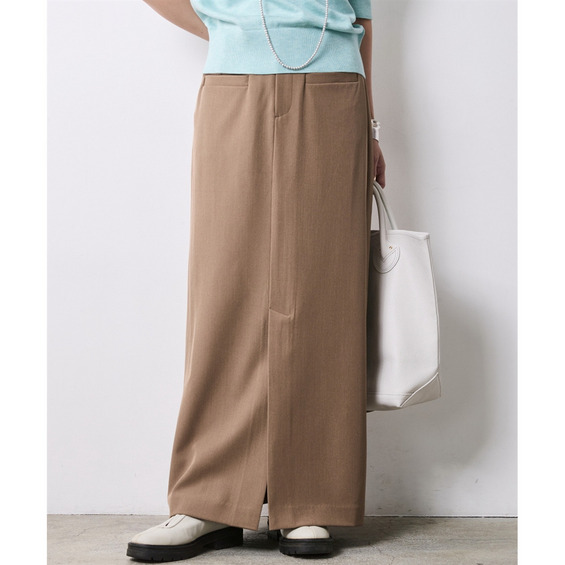 すっきりとしたナローシルエットで、スタイルアップを叶える大人のためのマキシスカート。