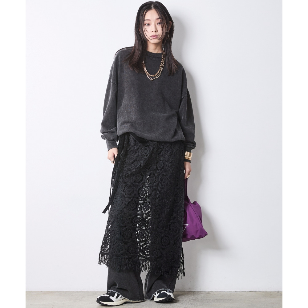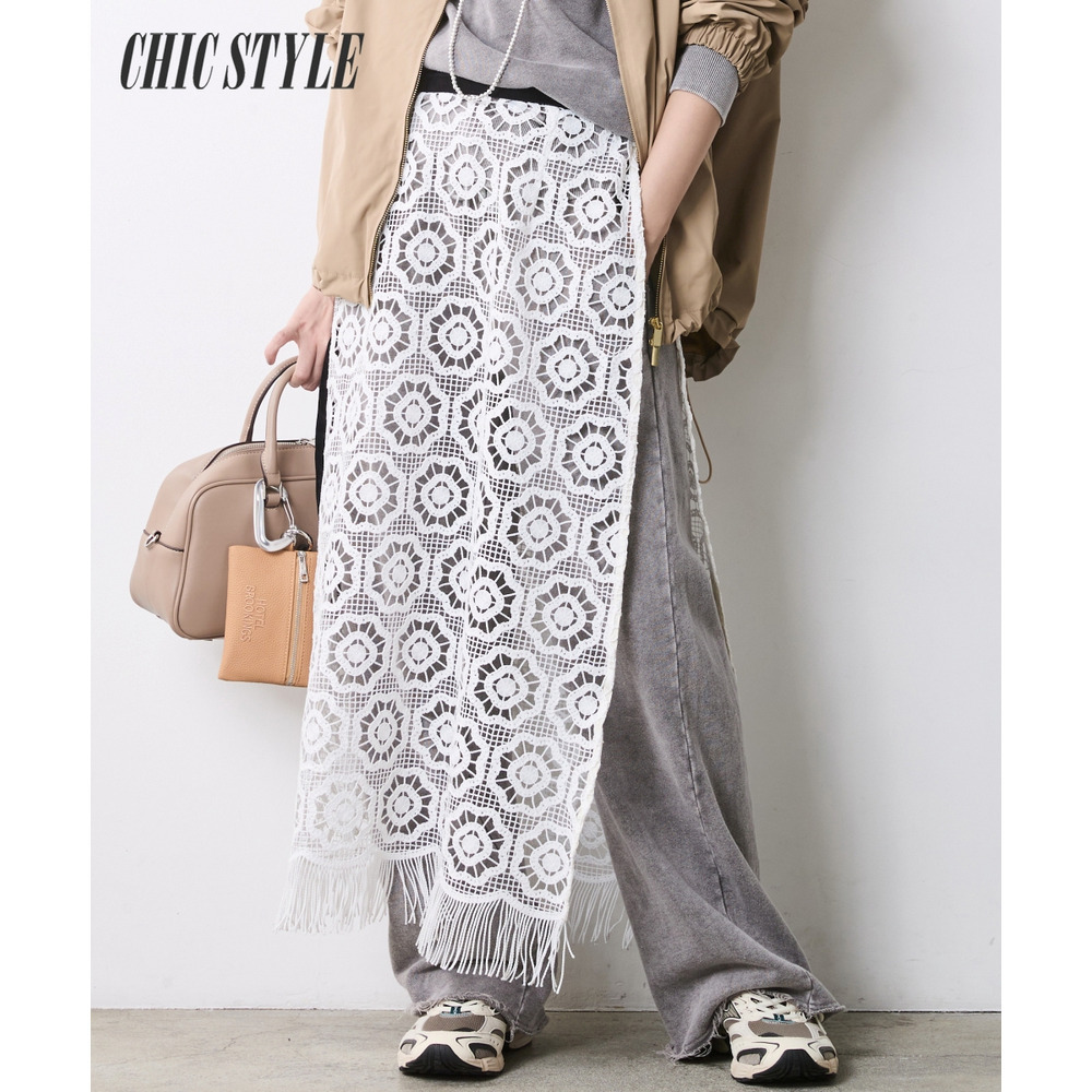 手持ちのアイテムに重ねるだけで、スタイリングの鮮度を劇的に引き上げるレースオーバースカートです。