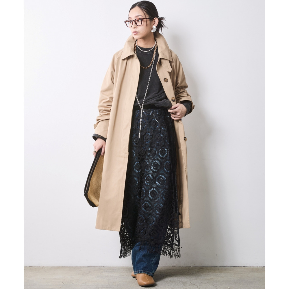 Modern Trad: トレンチコートやロングシャツの裾からレースとフリンジを覗かせ、トラッドな装いにフェミニンなエッセンスを。