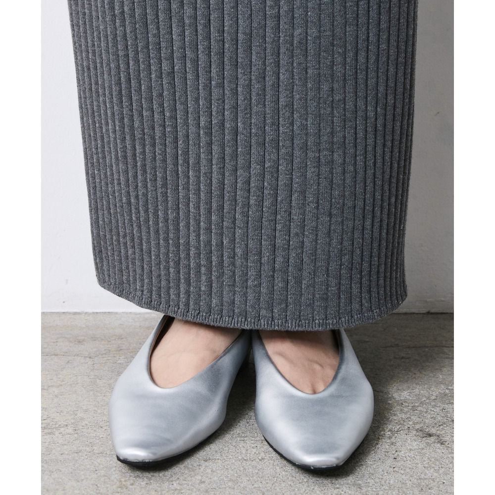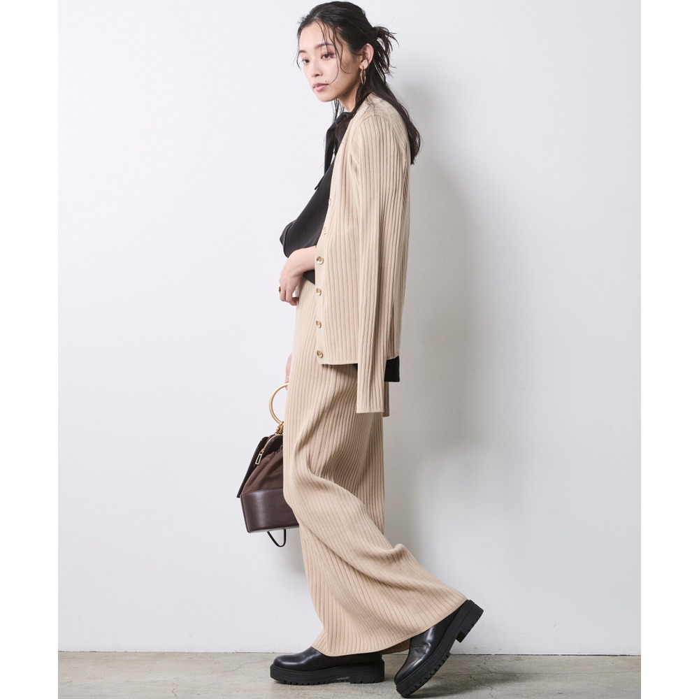 太めのピッチで施されたワイドリブが強力な縦のラインを形成し、脚長効果とともに下半身をスマートに引き締めて見せてくれます。
