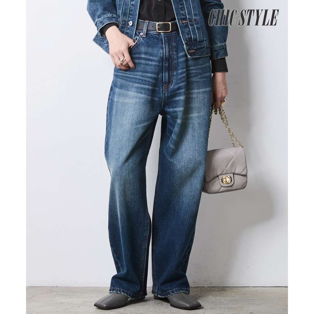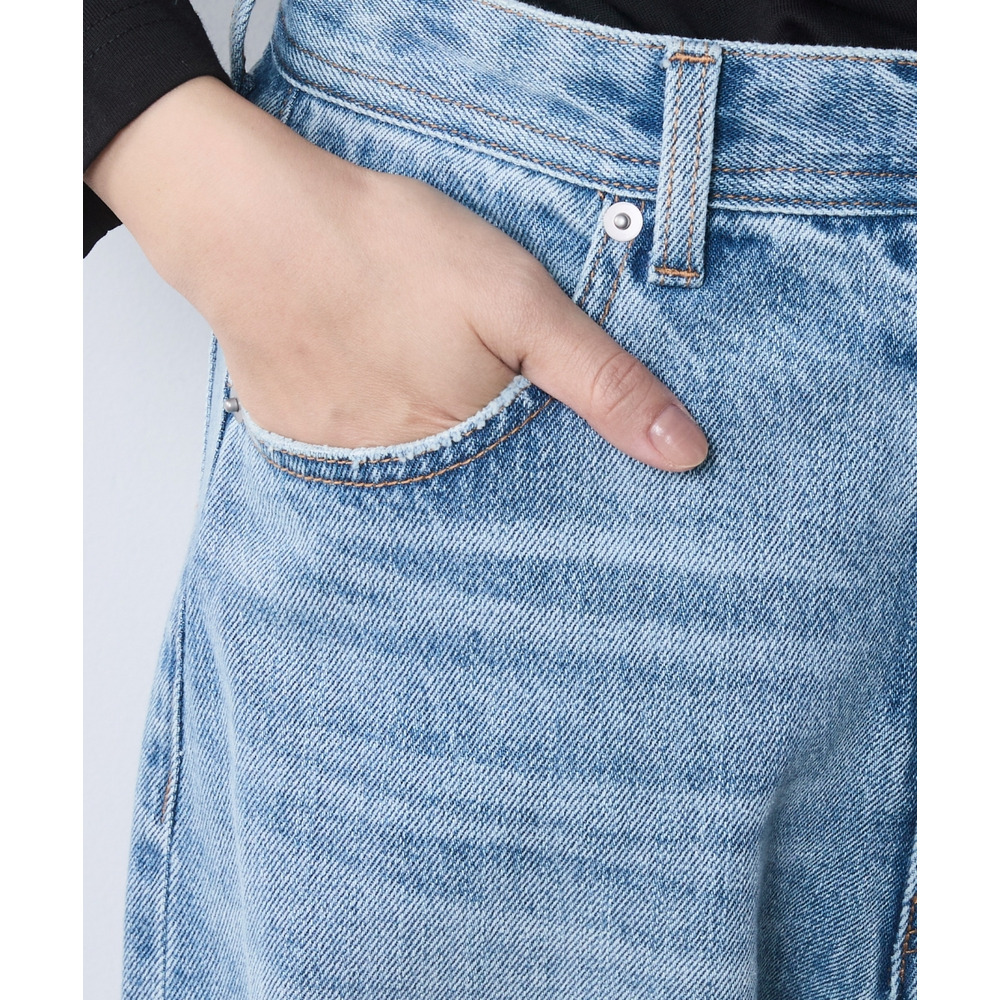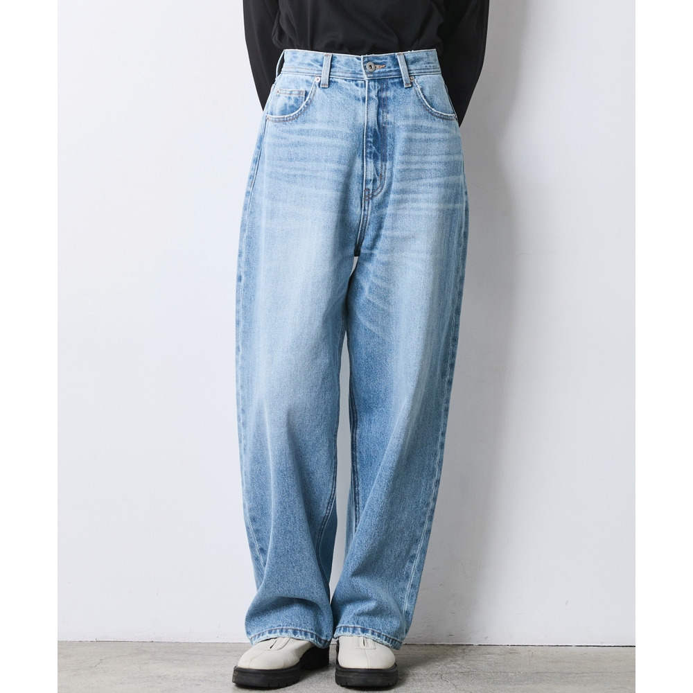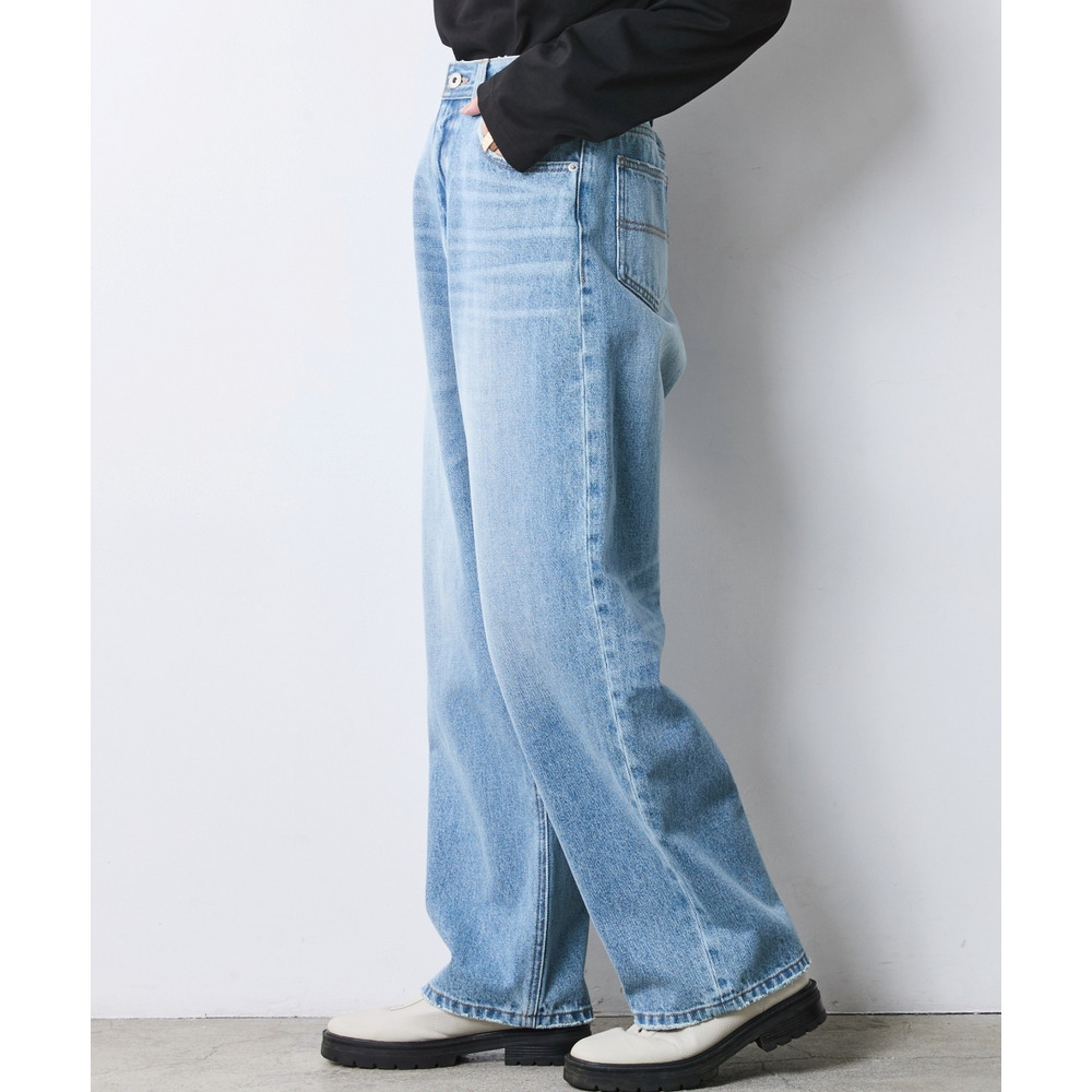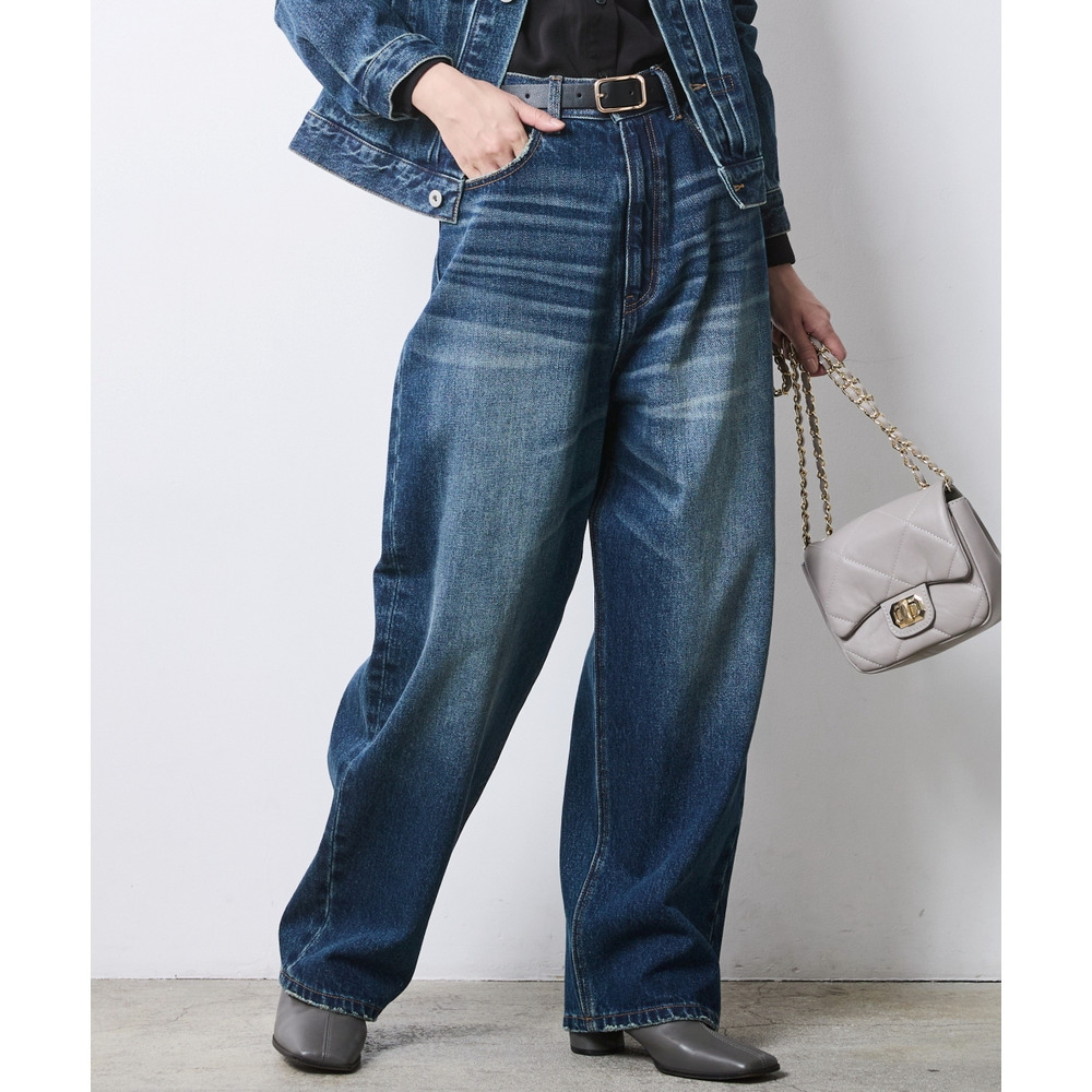 身体のラインを拾わず、すとんと落ちる贅沢なワイドシルエットが魅力のデニムパンツです。