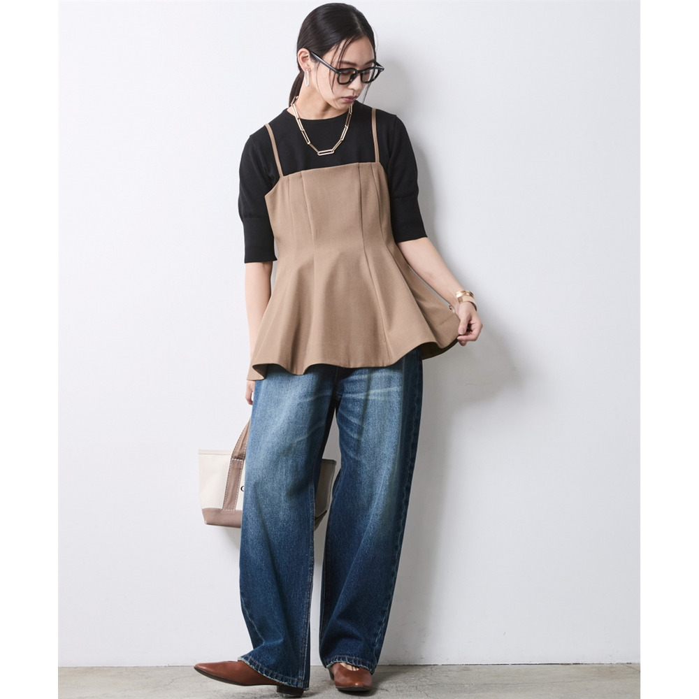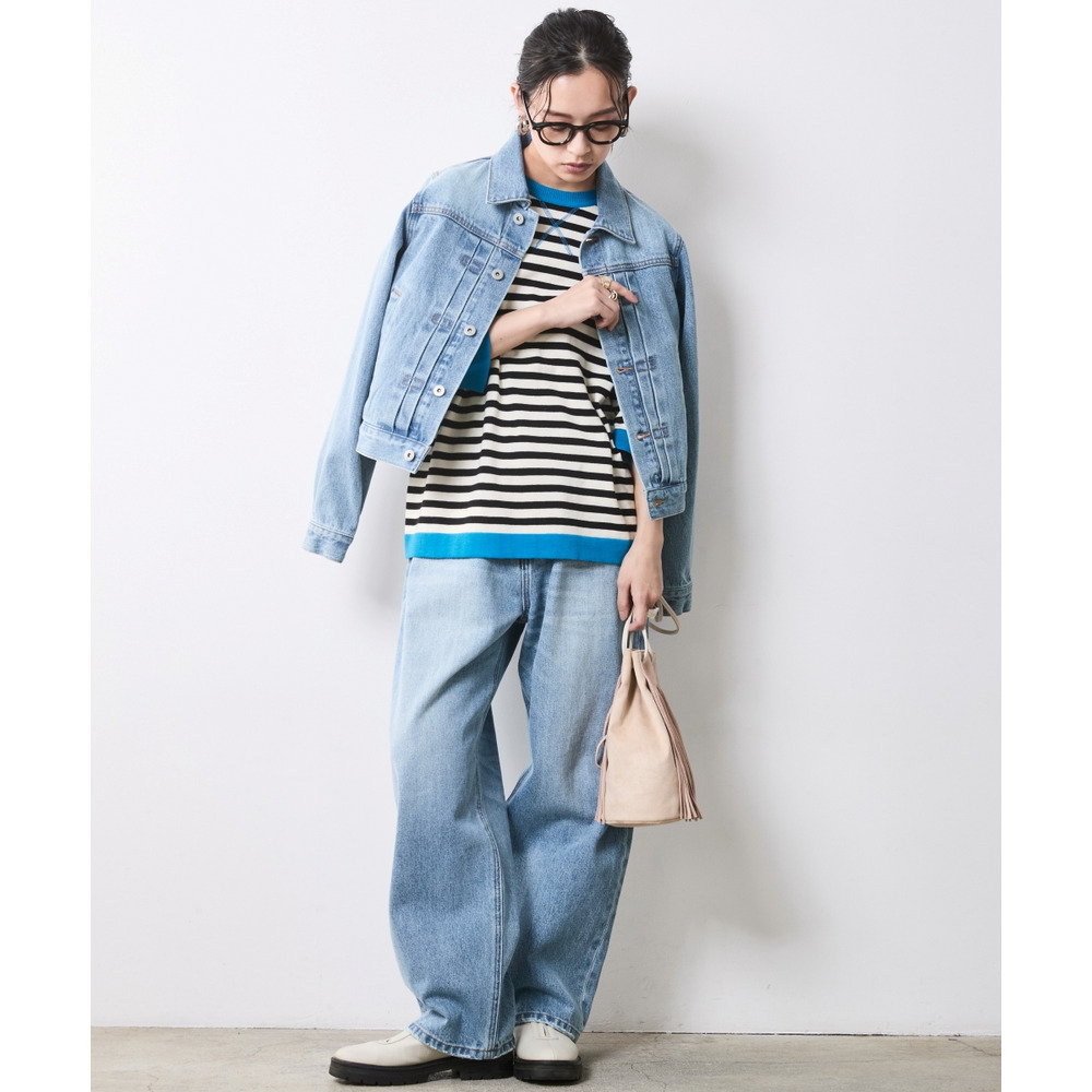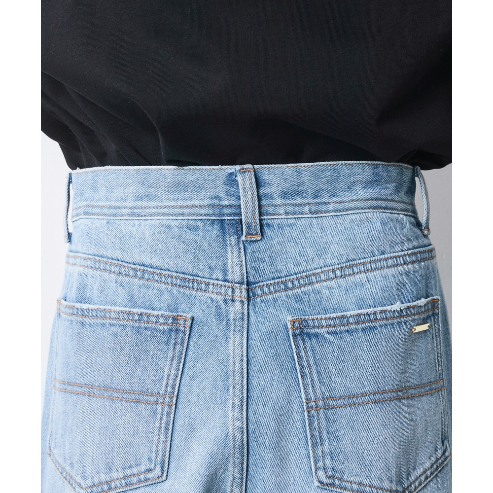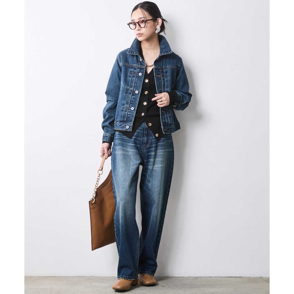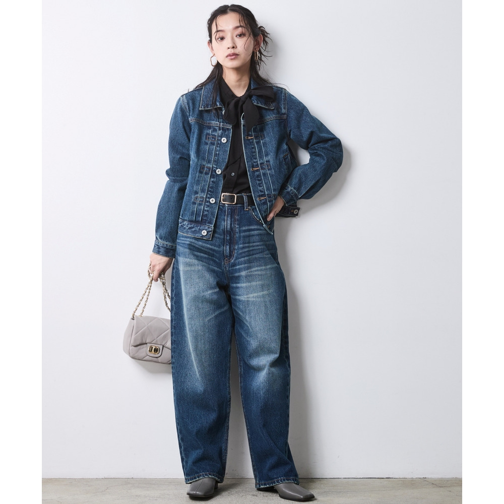 ヴィンテージデニムのような絶妙な加工感が装いに奥行きを与え、バックスタイルまで美しく決まるよう緻密に計算されています。