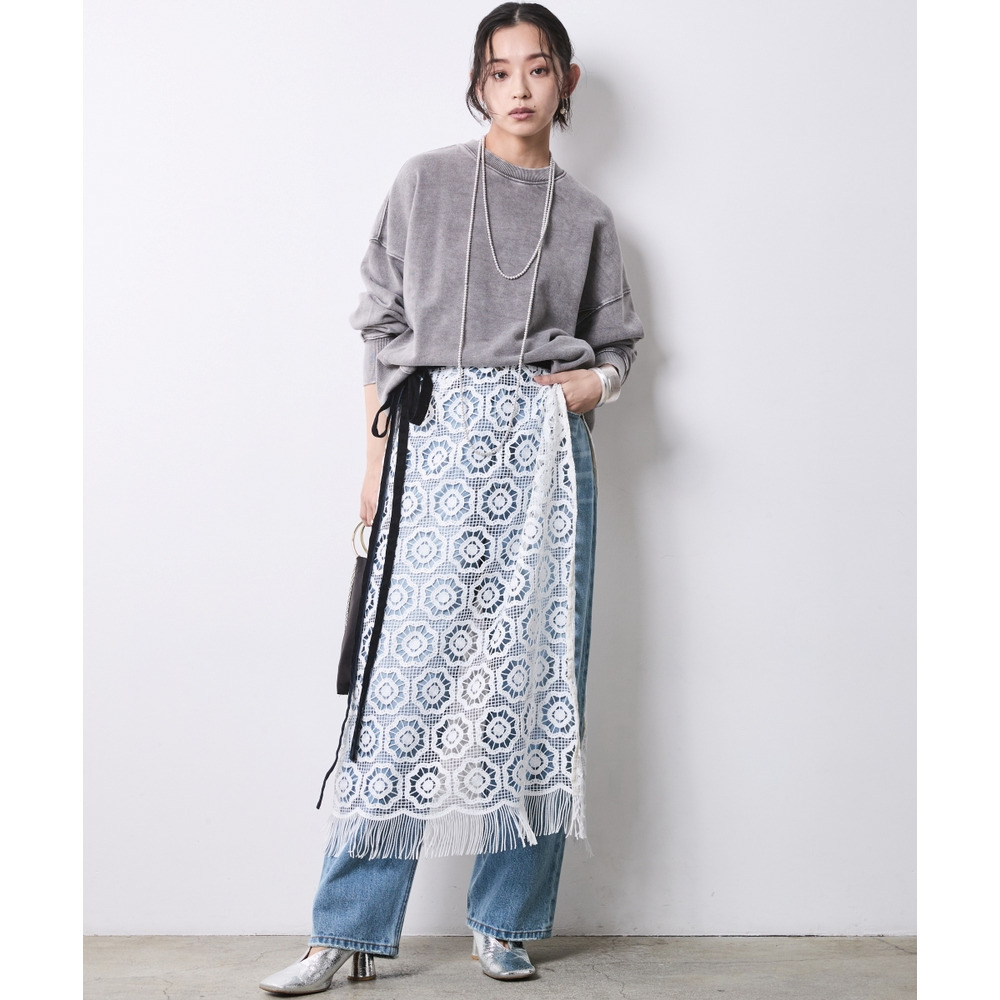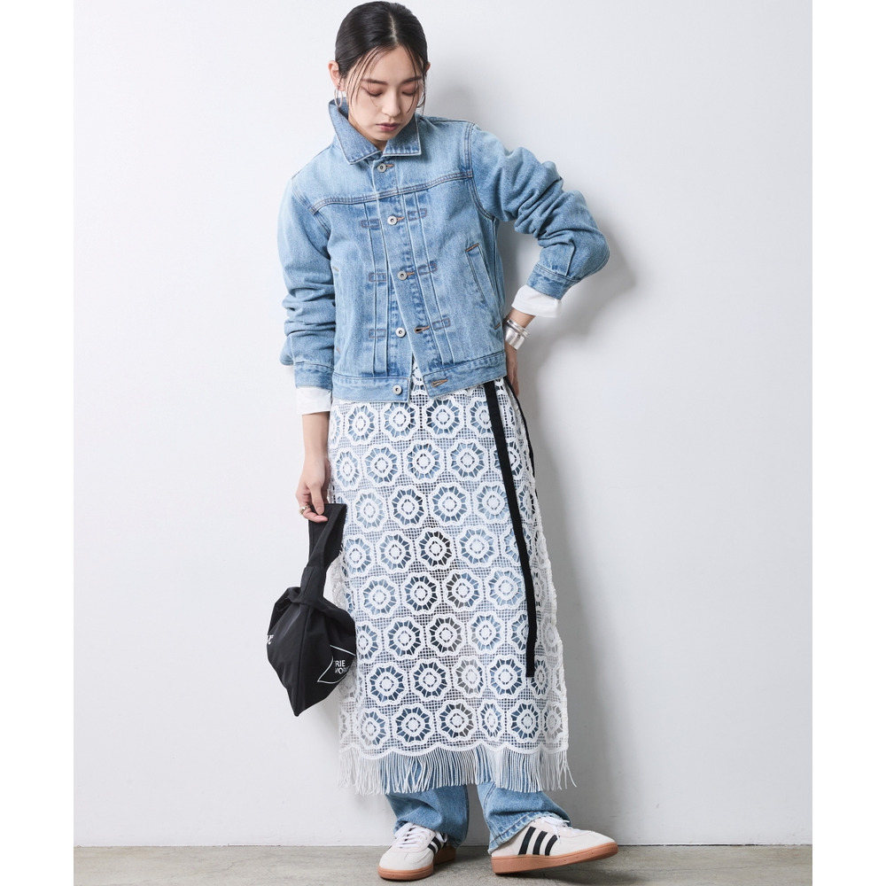 Lady Layered: 繊細なレースオーバースカートを重ね、デニムの無骨さとレースの甘さを戦わせる、大人の遊び心溢れる上級コーディネート。