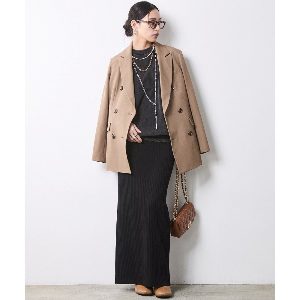 身体を泳がせるような大胆なビッグシルエットは、ドロップショルダーにすることで肩のラインを華奢に見せ、バックスタイルまで美しく決まるよう設計。