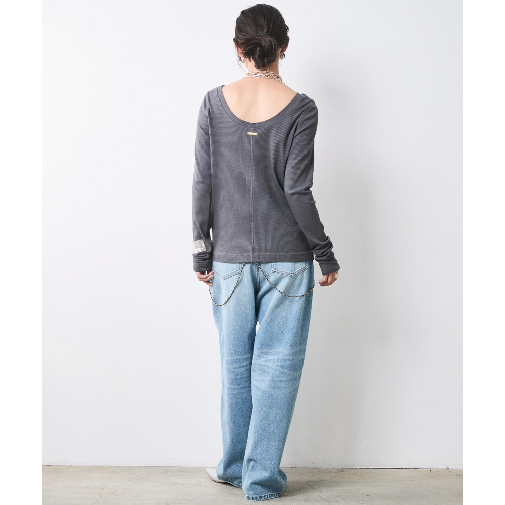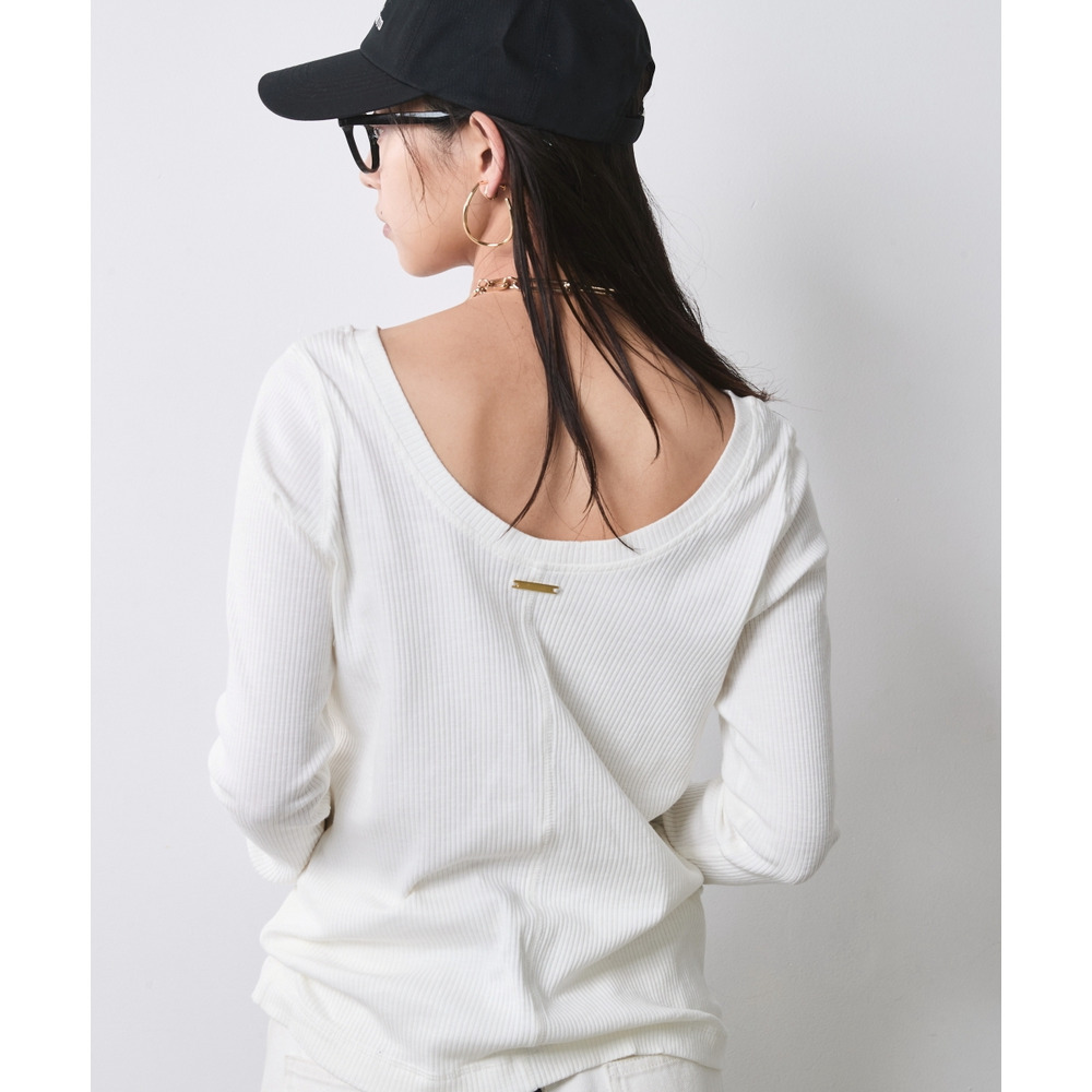背中のカッティング、ヘルシーな肌見せが、カジュアルな中に女性らしさをプラスします。