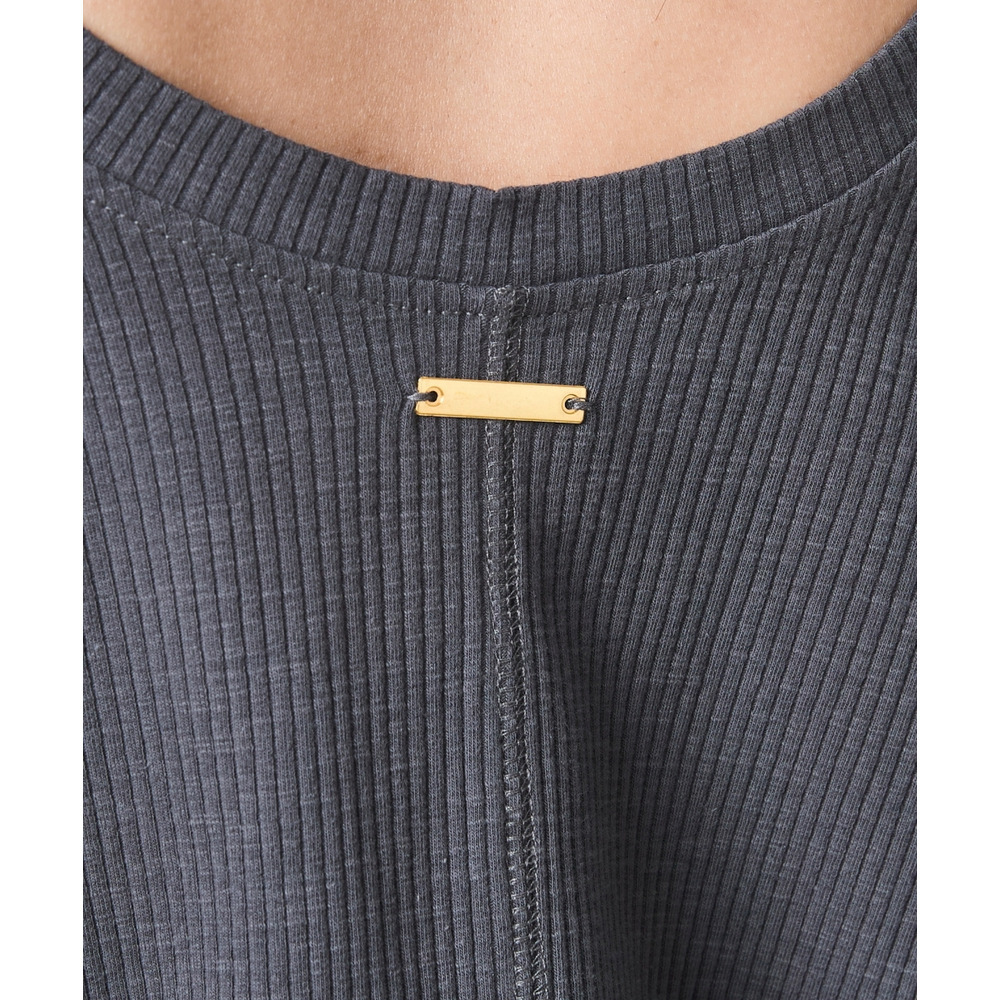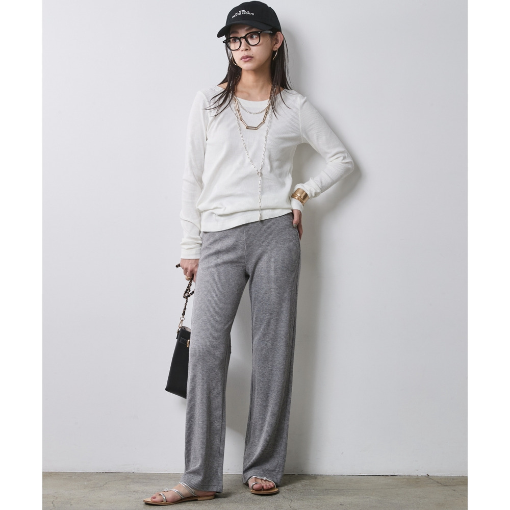 凹凸のある縦のライン(テレコ編み)が、視覚的な着痩せ効果を発揮。