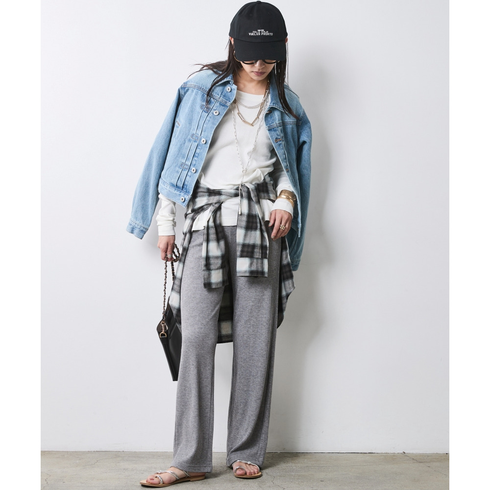 あえて長めに設定した袖丈が、手元にルーズな“たまり”を作り、今っぽい抜け感を演出します。