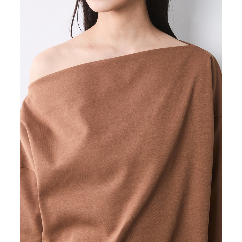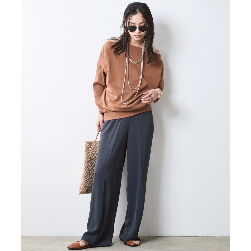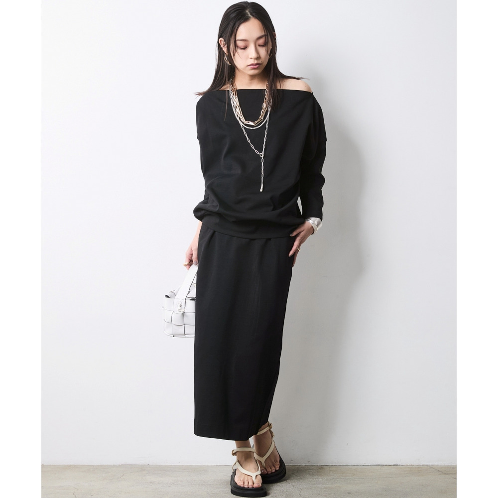 適度なハリ感があるため、ボートネックラインがキレイに決まります。