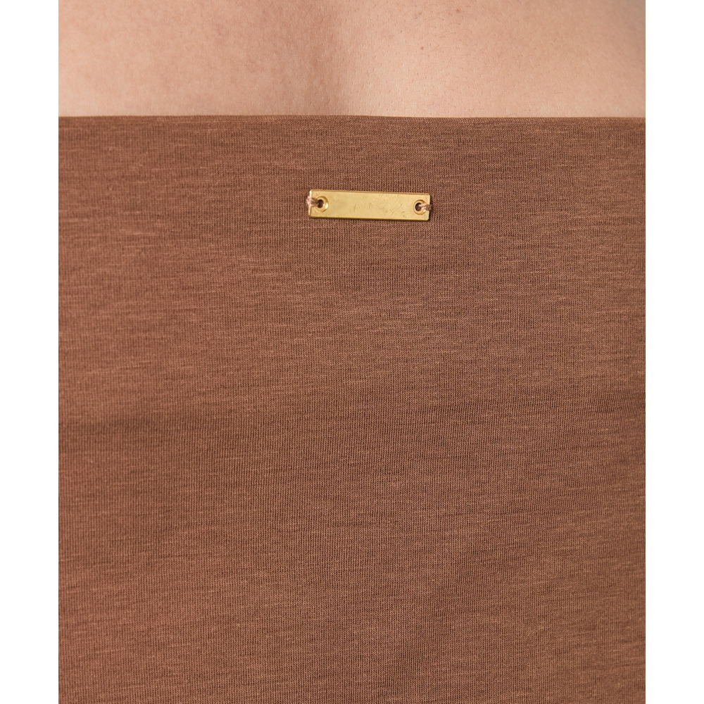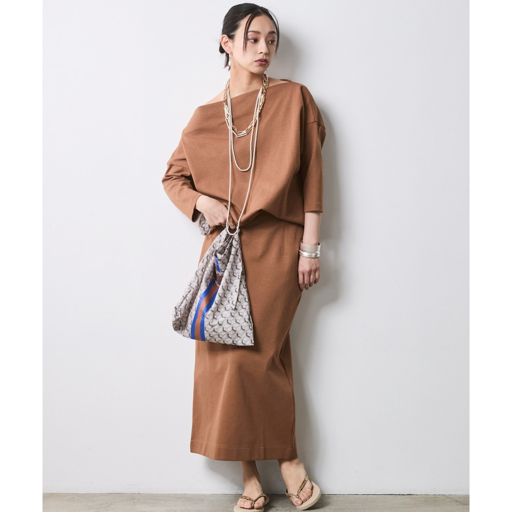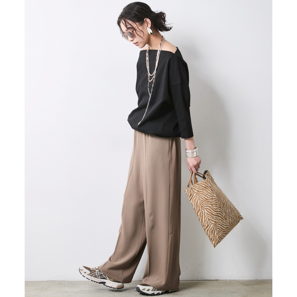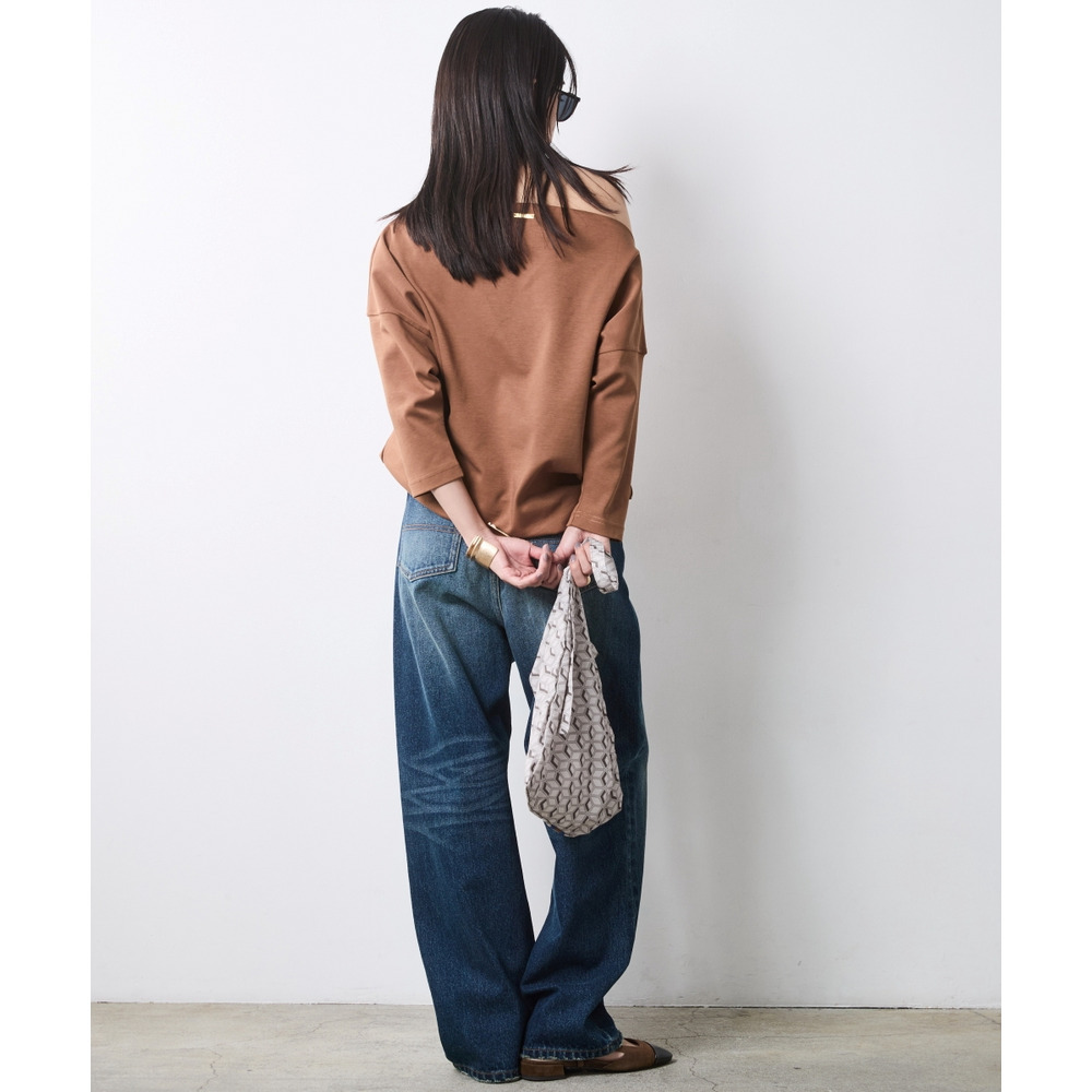 適度なハリ感があるため、ボートネックラインがキレイに決まります。