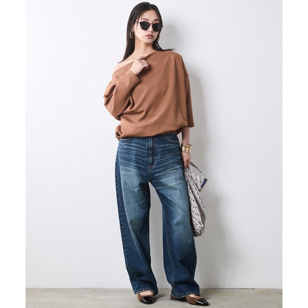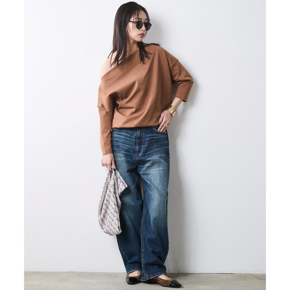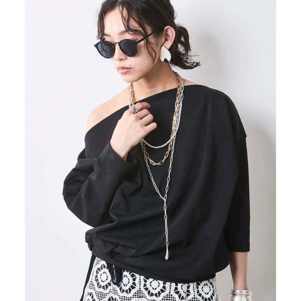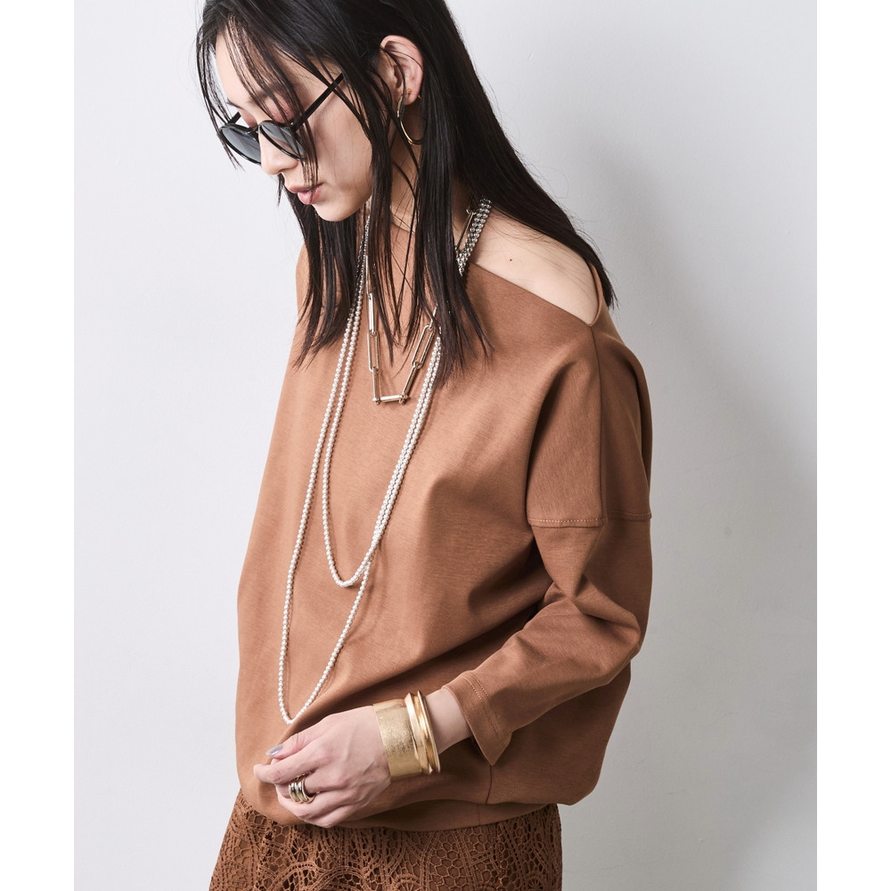 少し肩をずらして着れば、大人の色気が漂うアシンメトリーなオフショルスタイルへと表情を変えます。