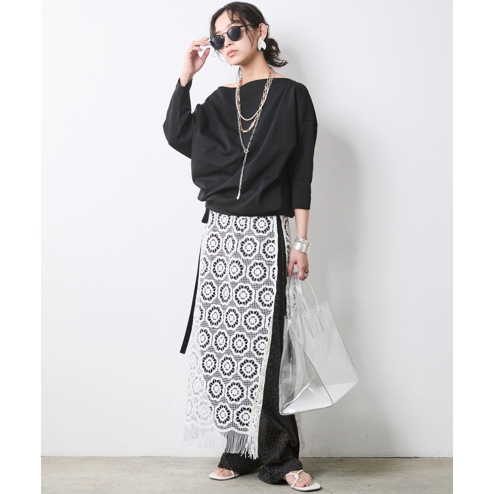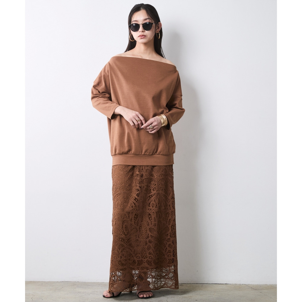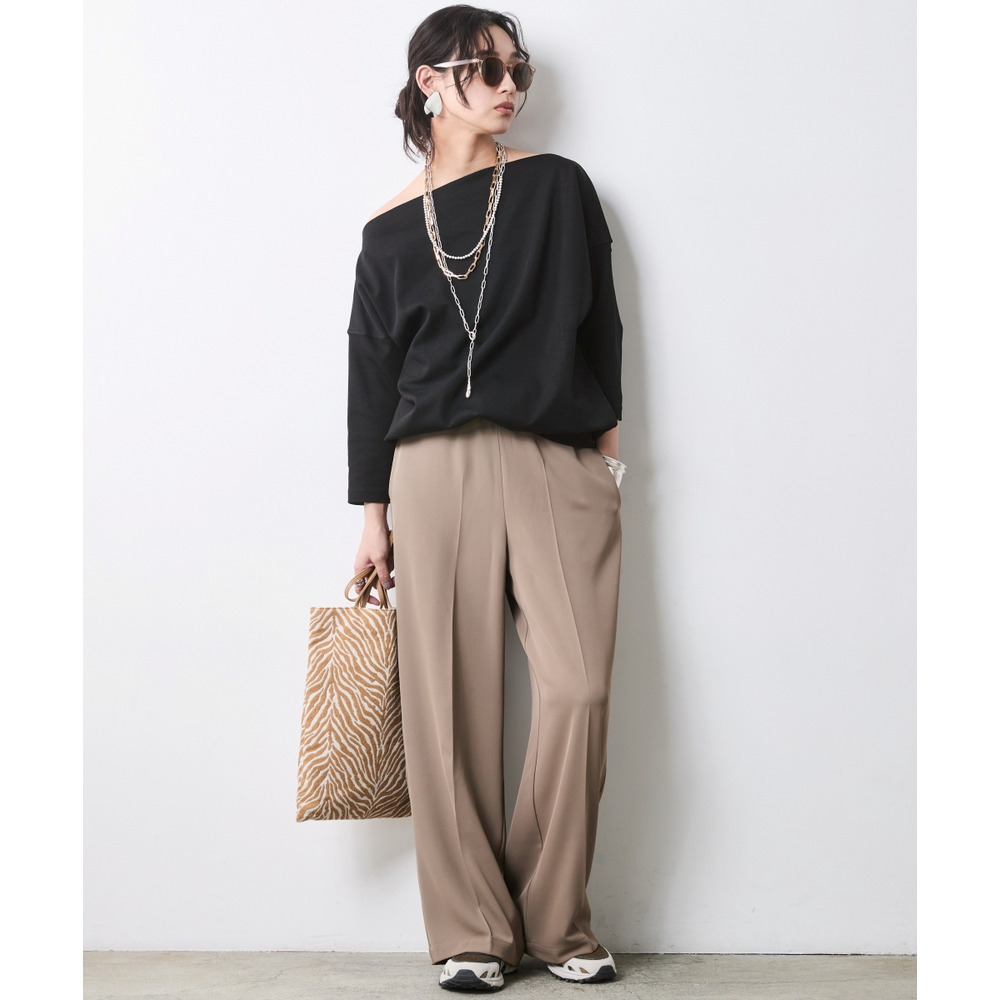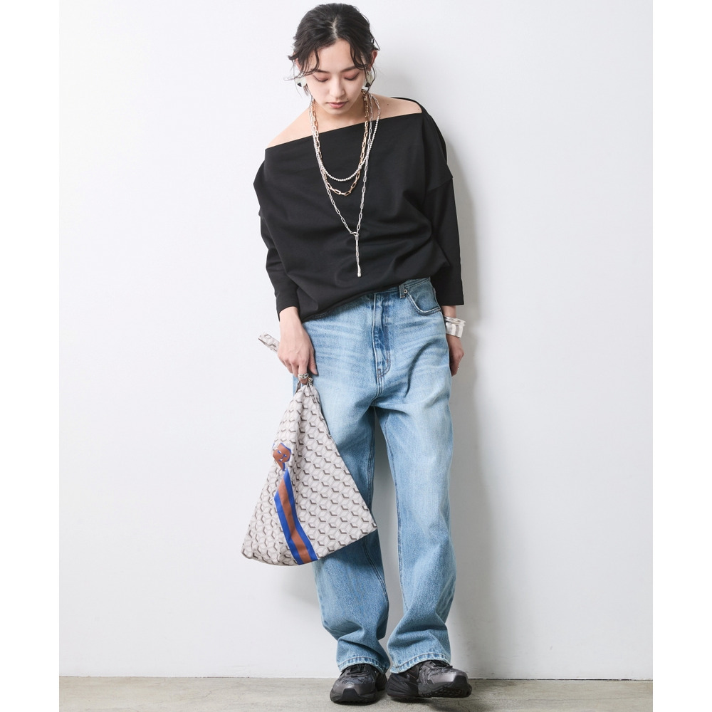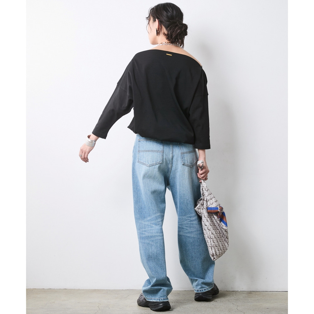 少し肩をずらして着れば、大人の色気が漂うアシンメトリーなオフショルスタイルへと表情を変えます。