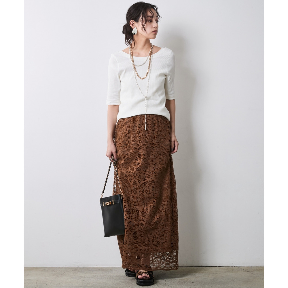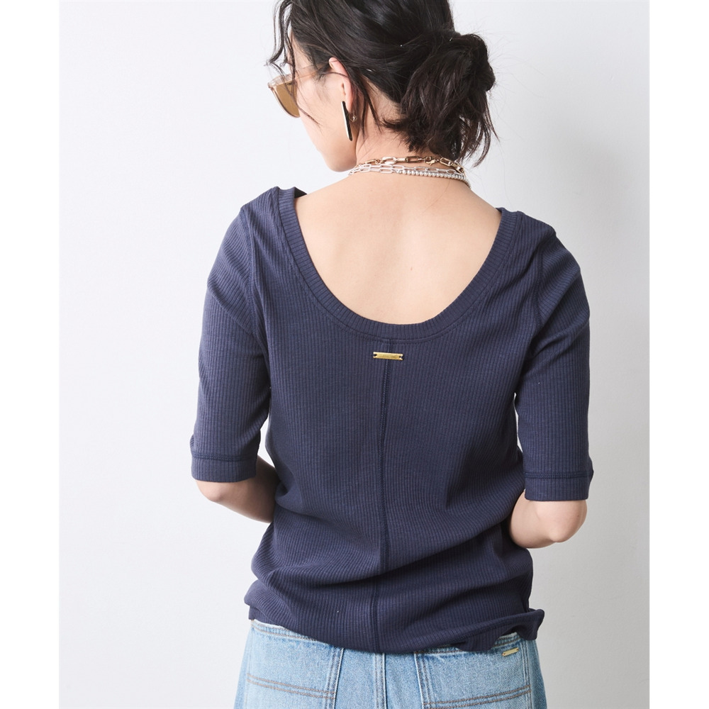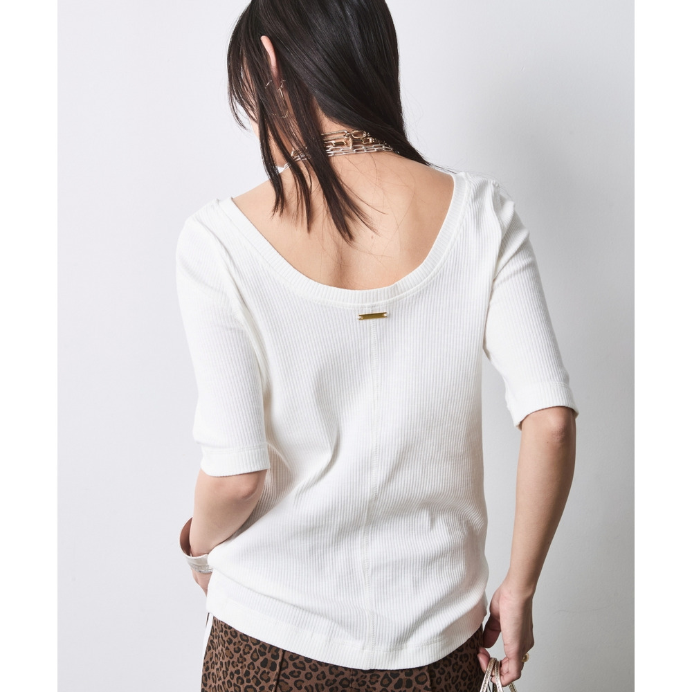 前後の開きを計算したネックラインが、鎖骨周りを美しく演出。