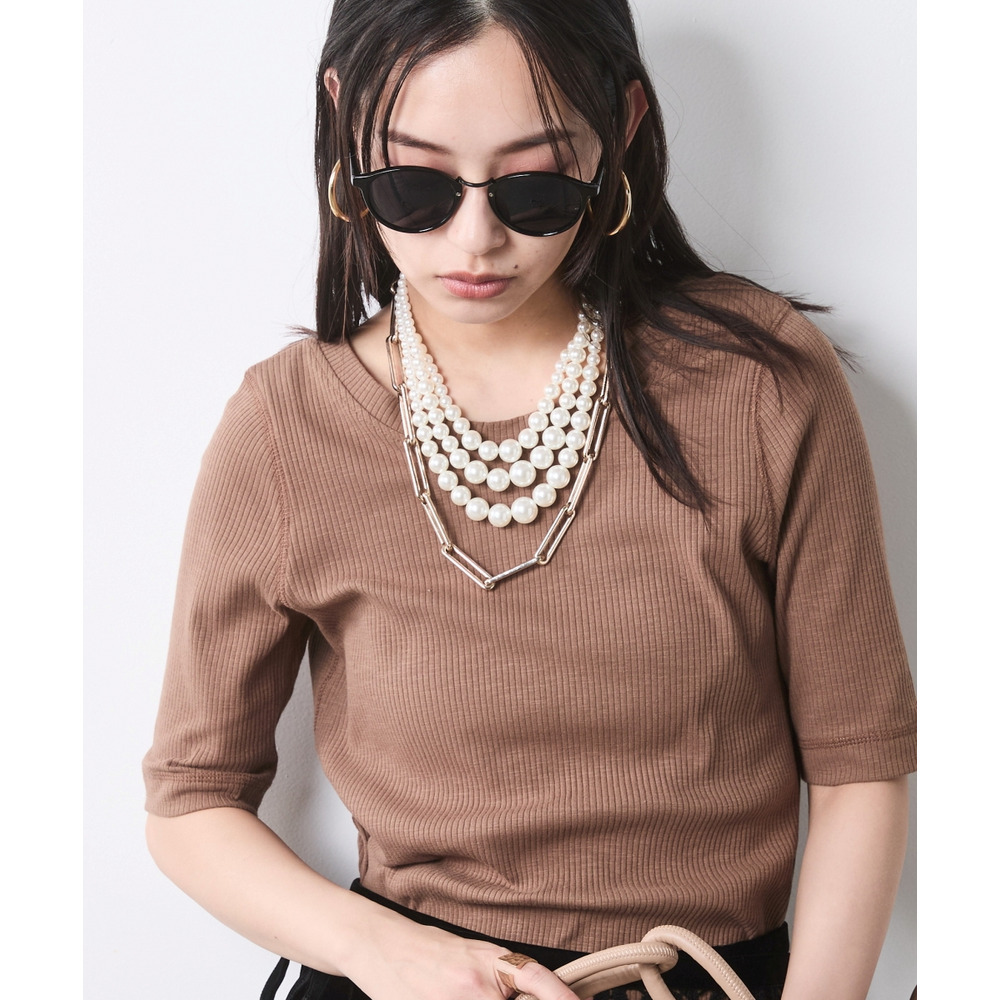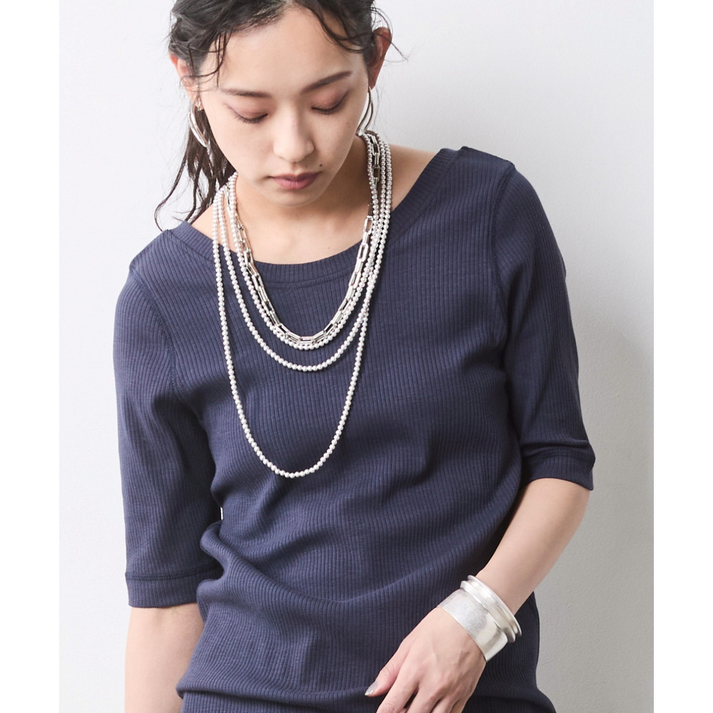 多連のパールネックレスやシルバーバングルをプラスすることで、エッジを効かせた、大人のこなれスタイルが完成します。