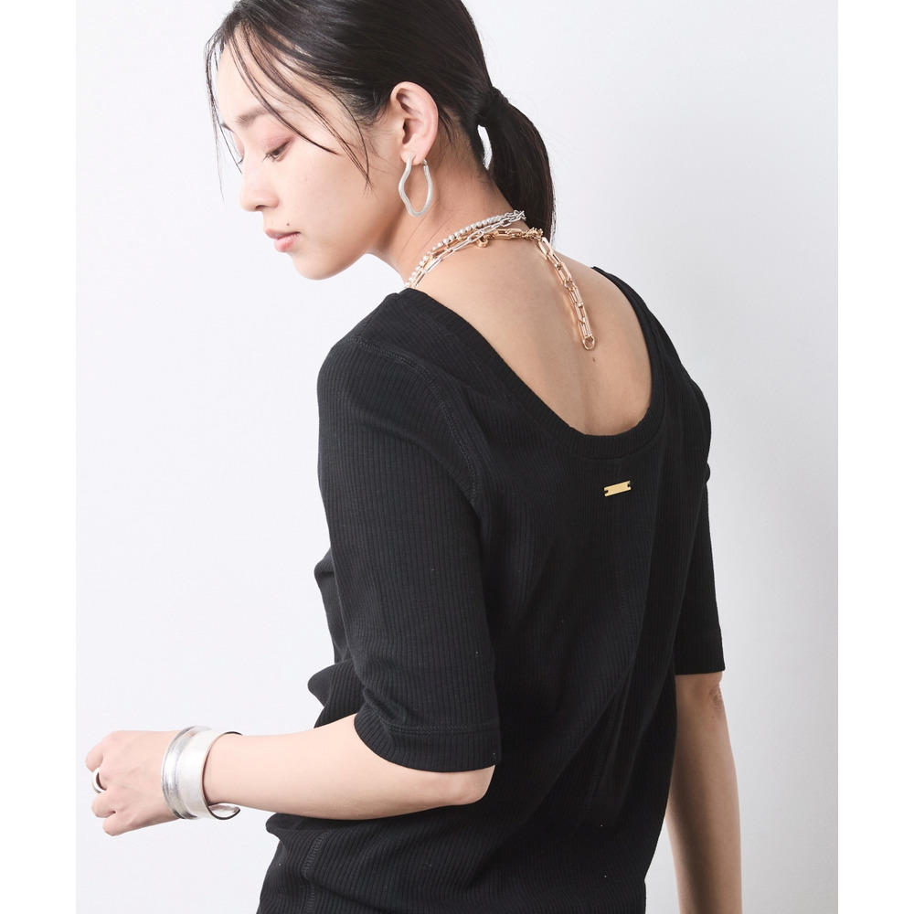 首元から覗く美しいカッティングと、袖のタイトなシルエットが、ボリュームのあるアウターとの対比を生み、洗練されたレイヤードスタイルを叶えます。
