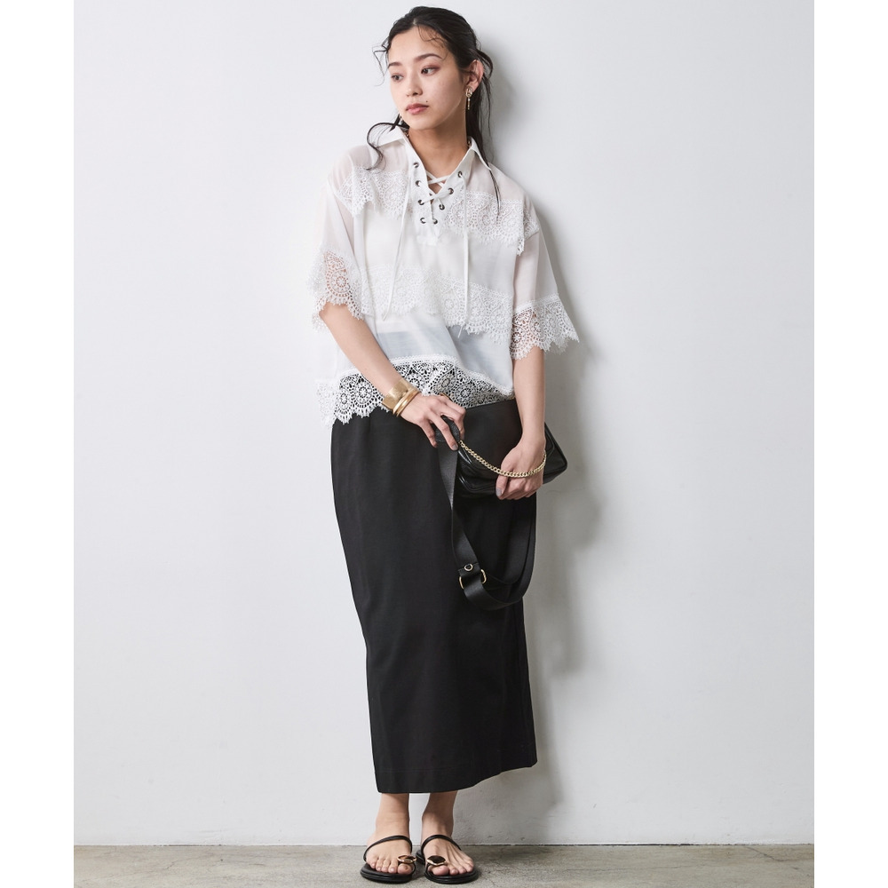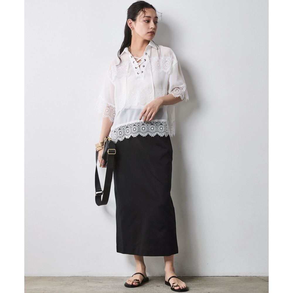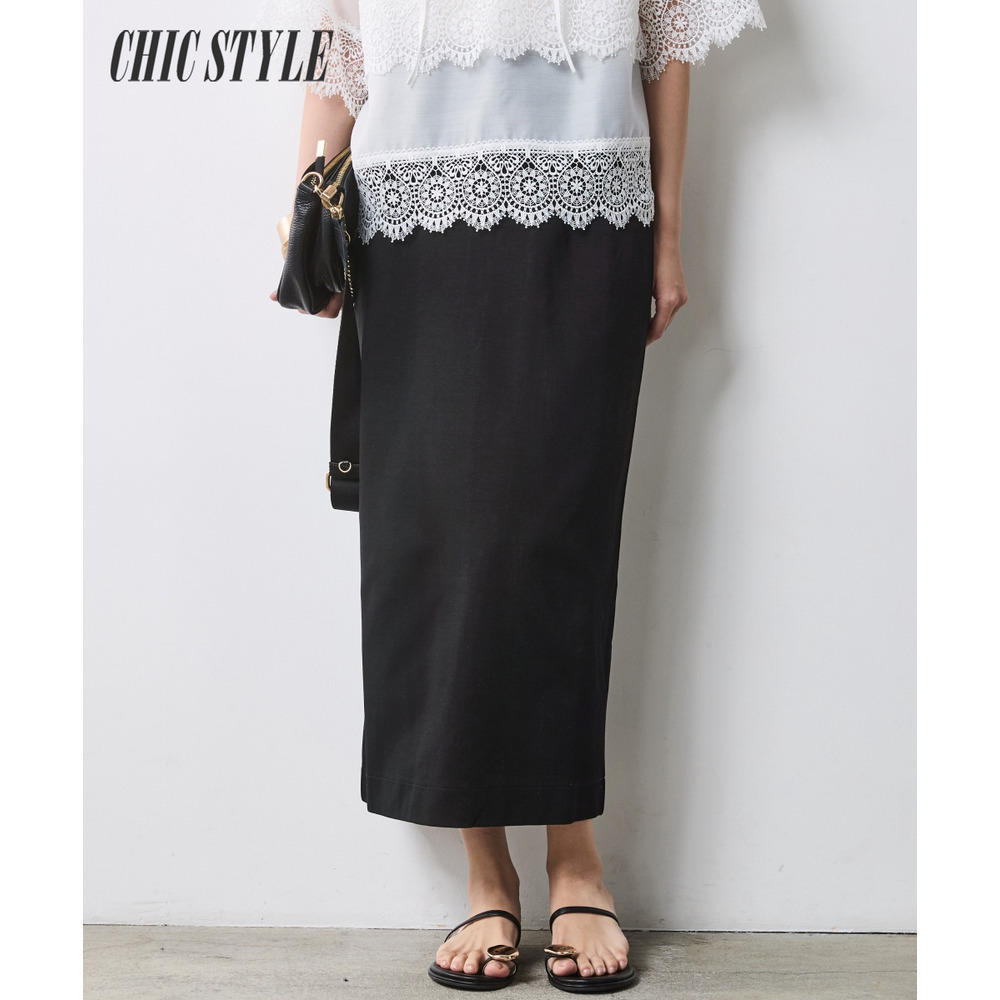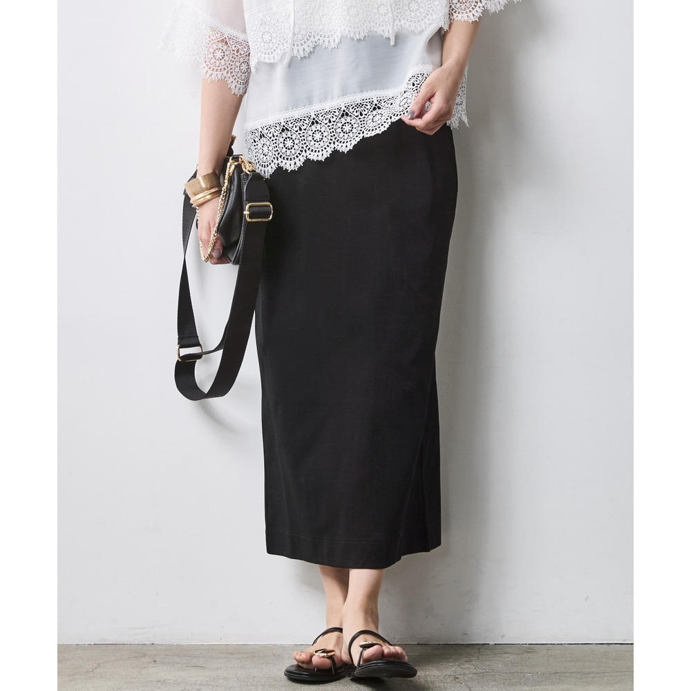 身体のラインを拾わず、真っ直ぐな美しさを引き出す大人のためのタイトスカート。