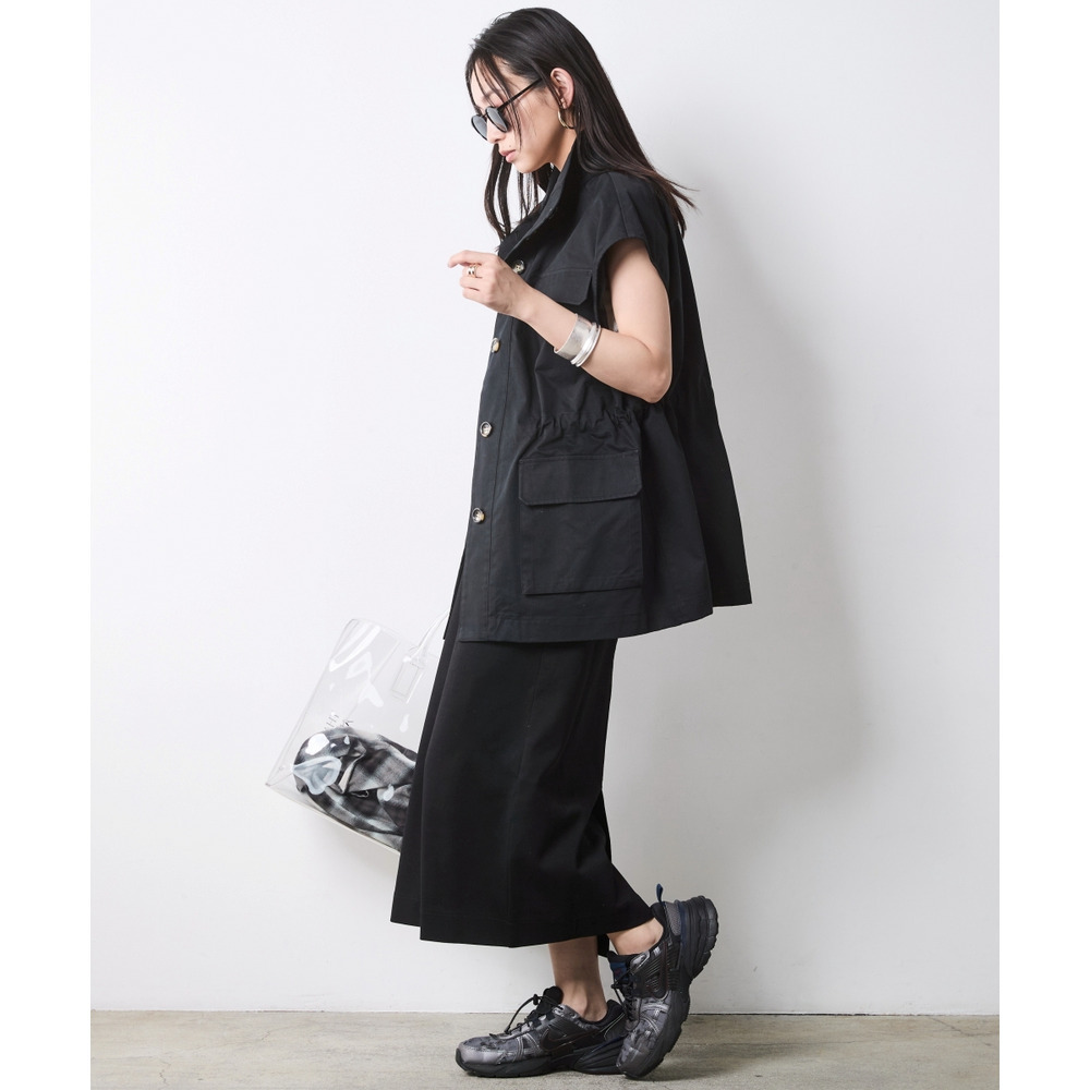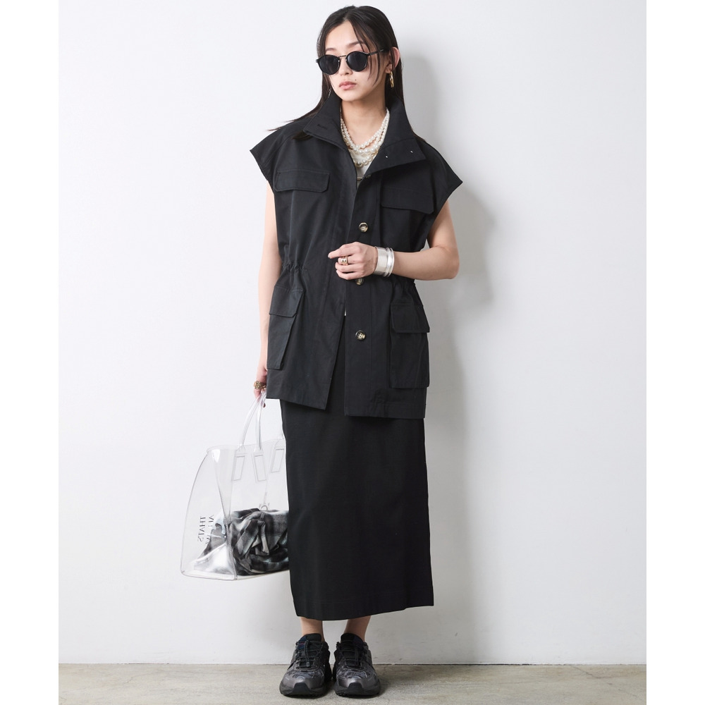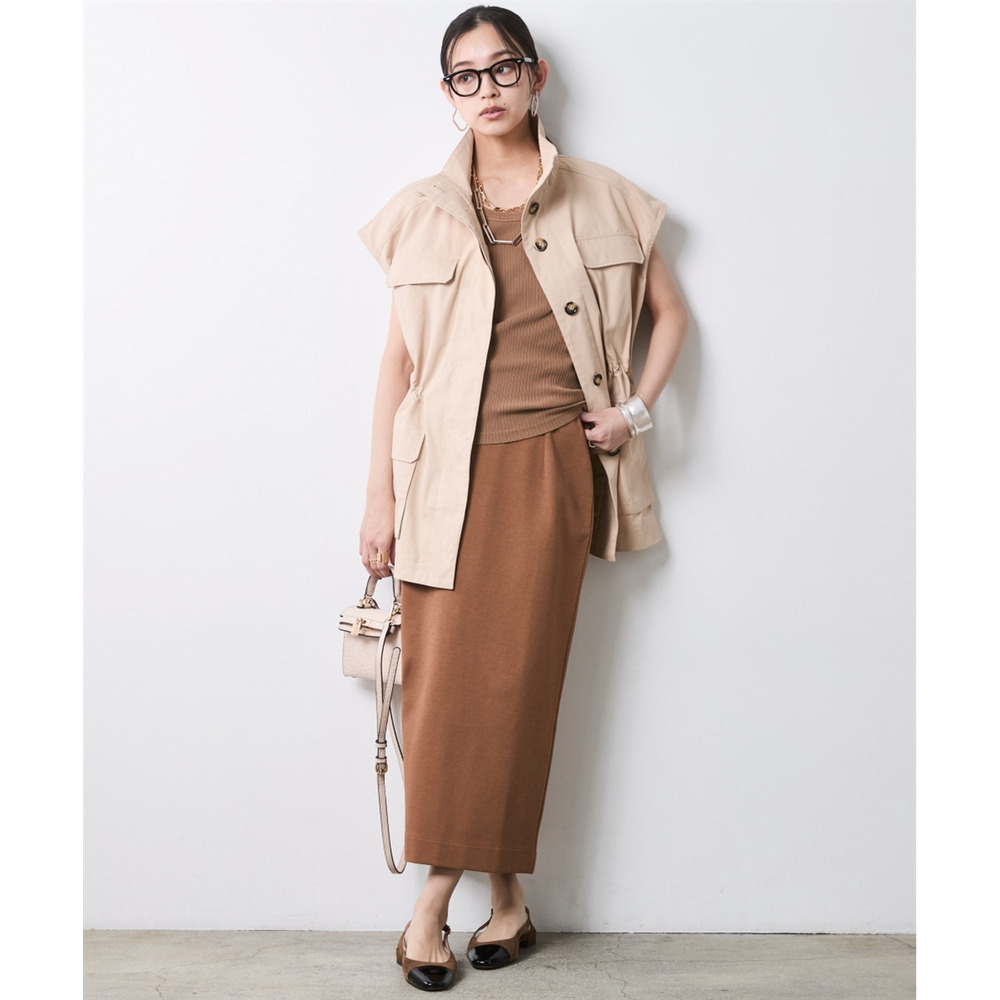Military Mix Mode:シンプルなタイトスカートに、あえてマニッシュな「ミリタリーベスト」を羽織って。