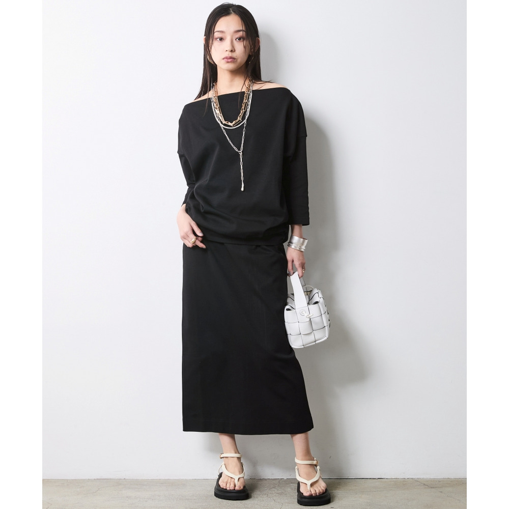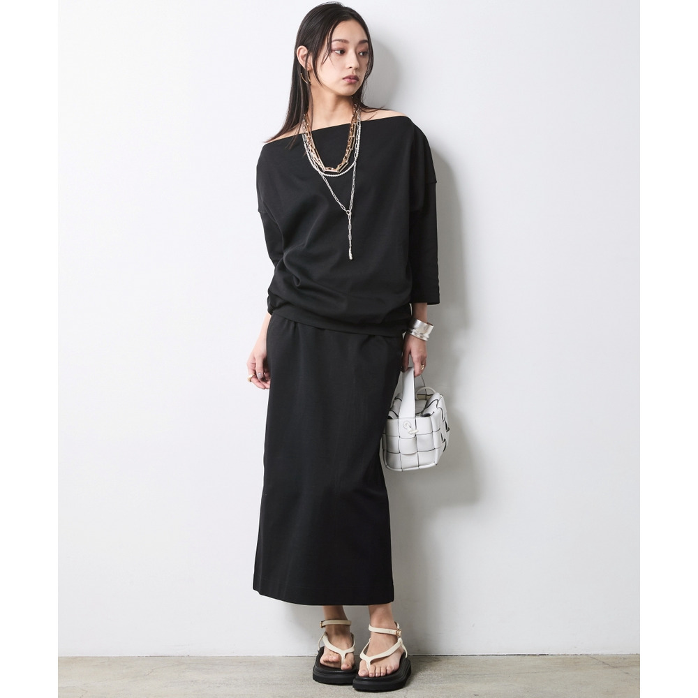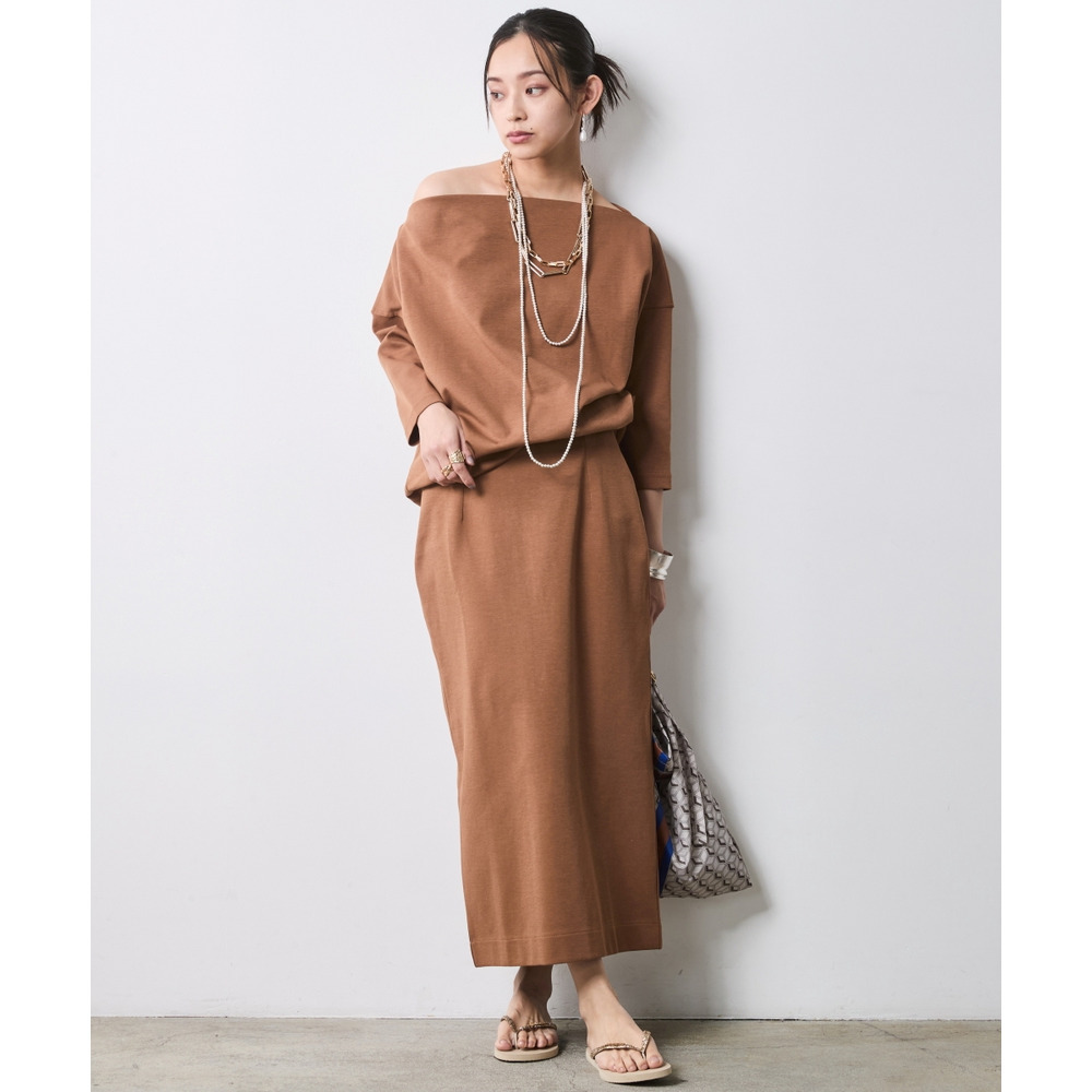Sophisticated Set-up:別売り同素材の「ボートネックプルオーバー」を合わせた、洗練のセットアップスタイル。