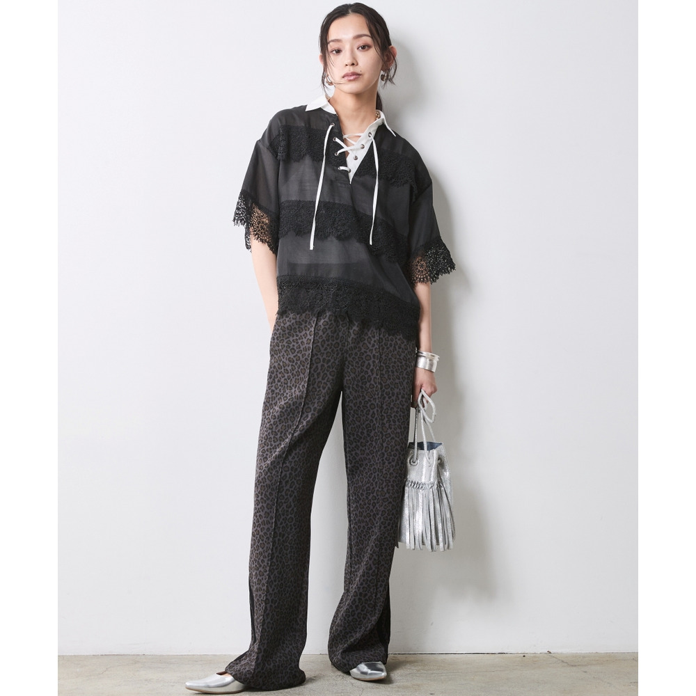 レオパード柄の膨張感を抑え、脚長効果とスマートな印象を両立させました。
