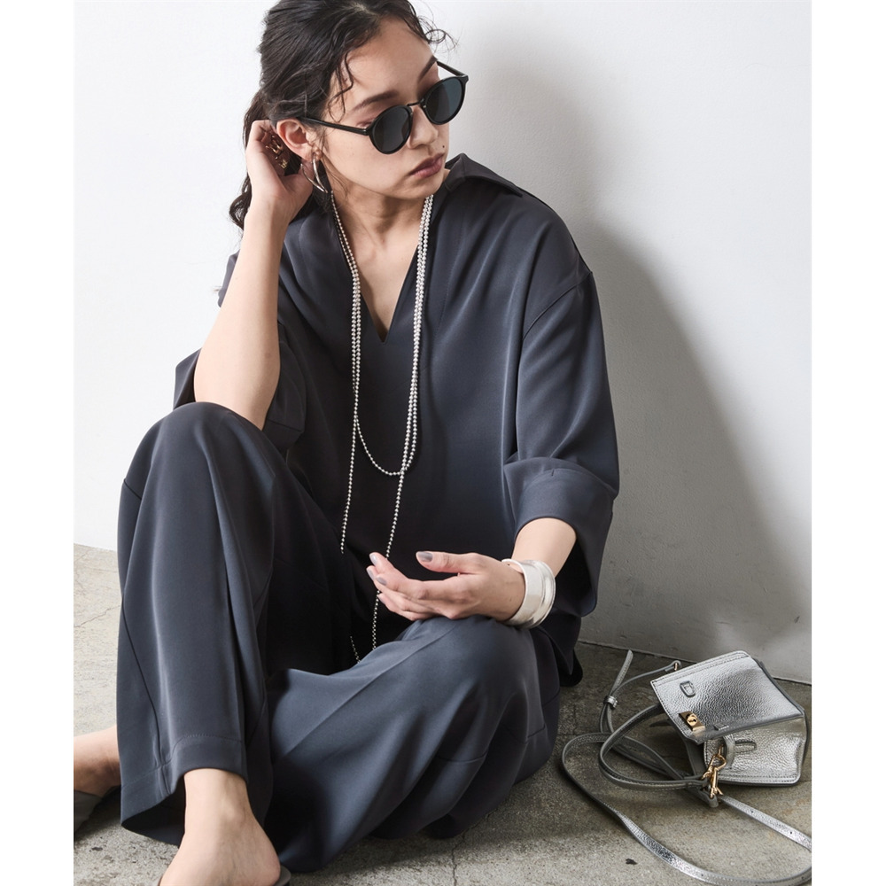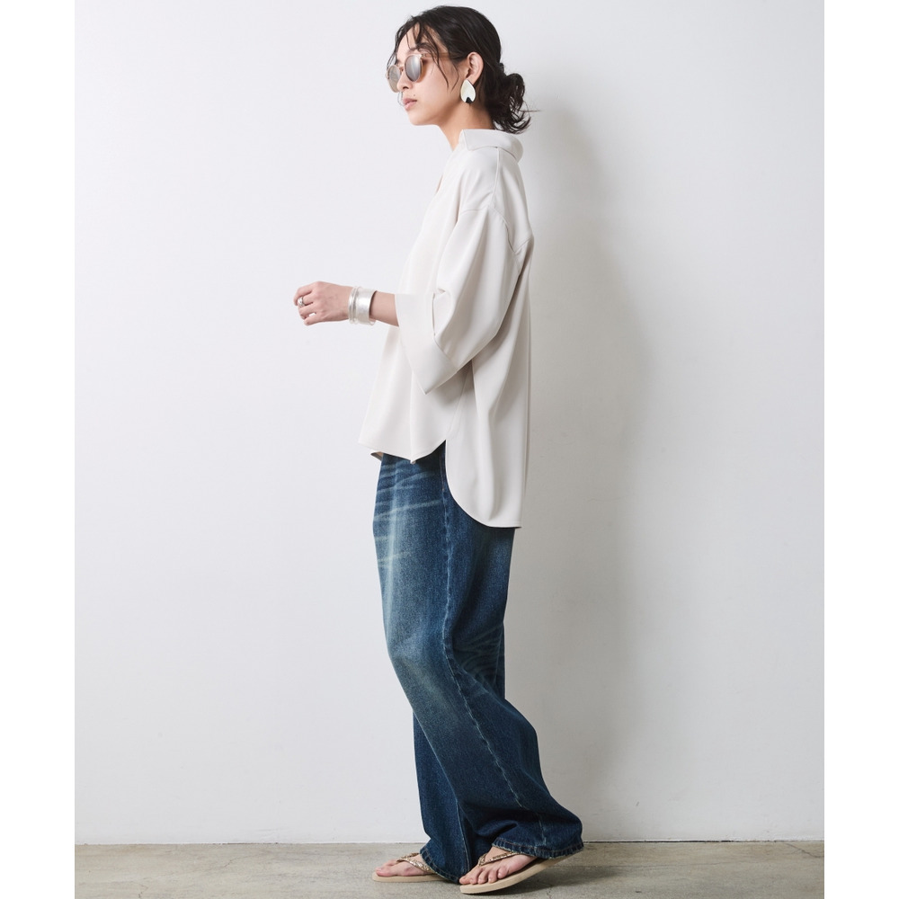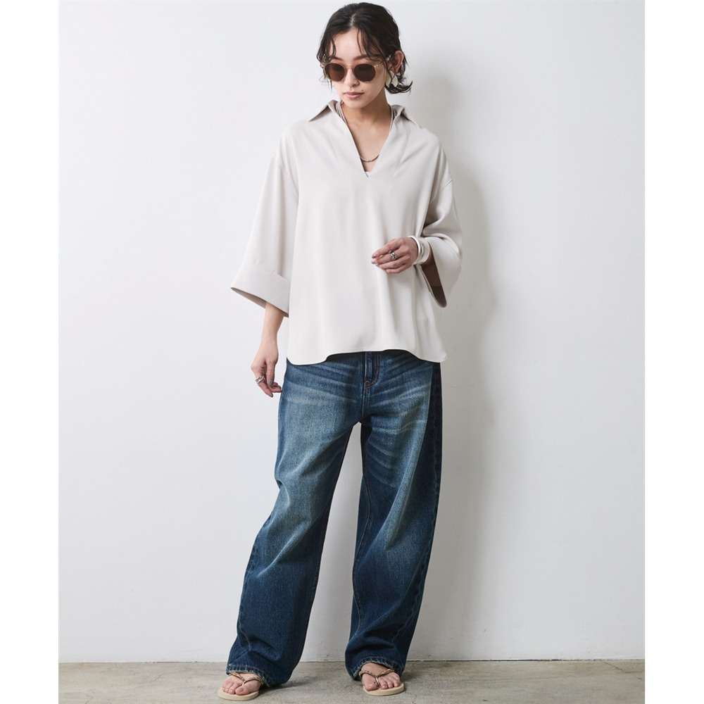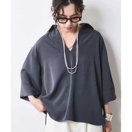 デコルテを美しく見せる深めのスキッパーラインと、体が泳ぐようなリラクシーなサイズ感。