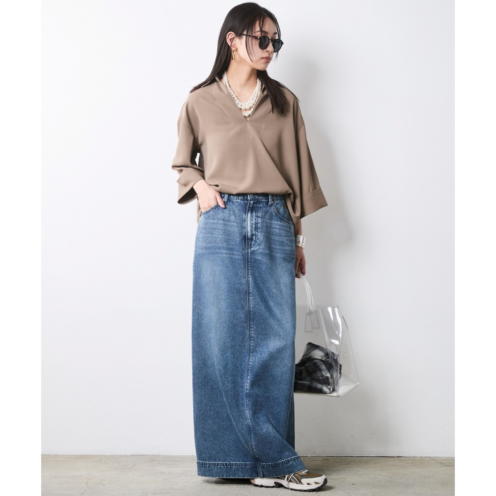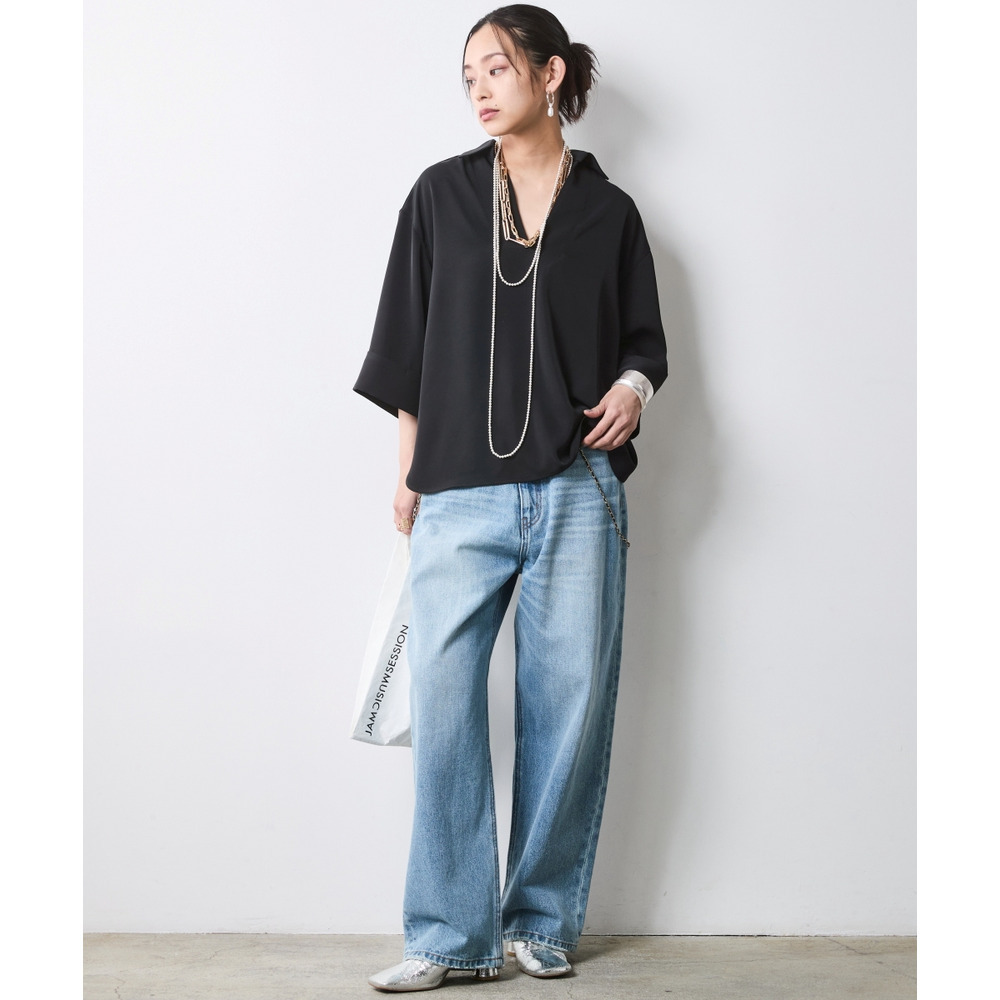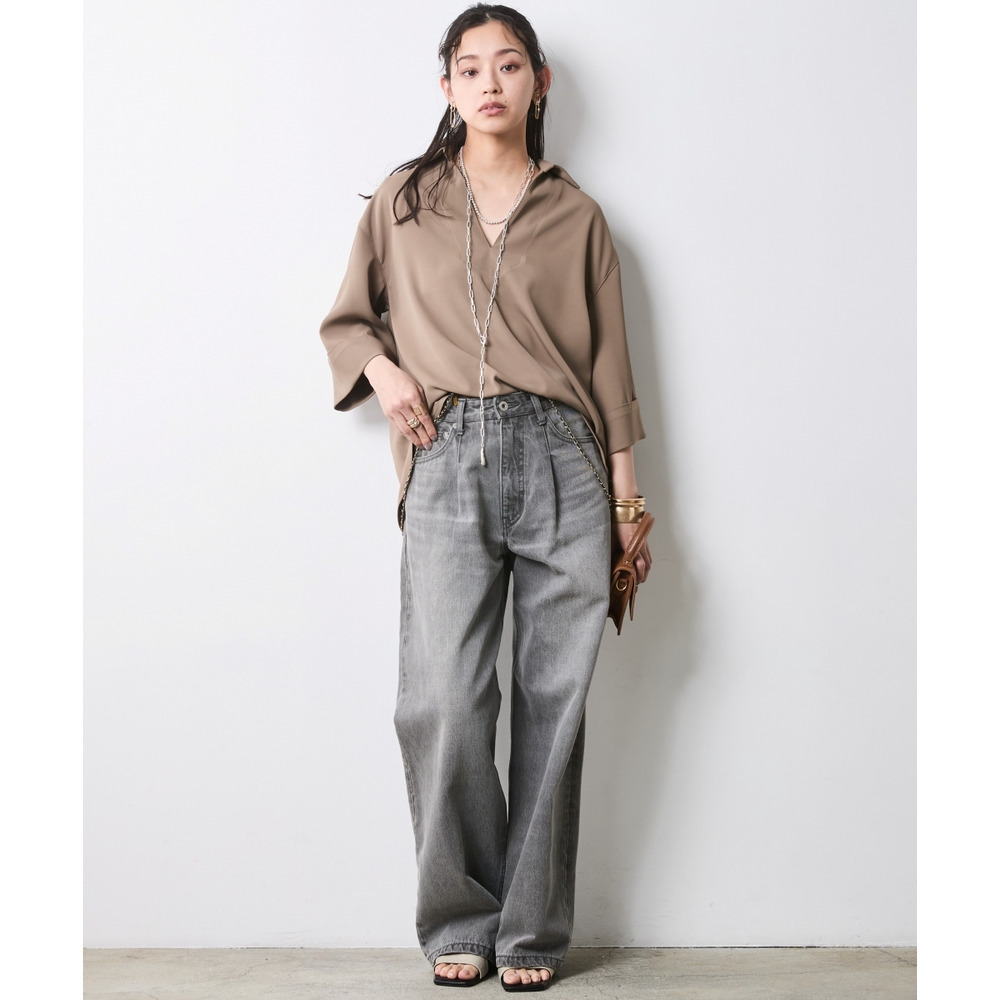 デコルテを美しく見せる深めのスキッパーラインと、体が泳ぐようなリラクシーなサイズ感。