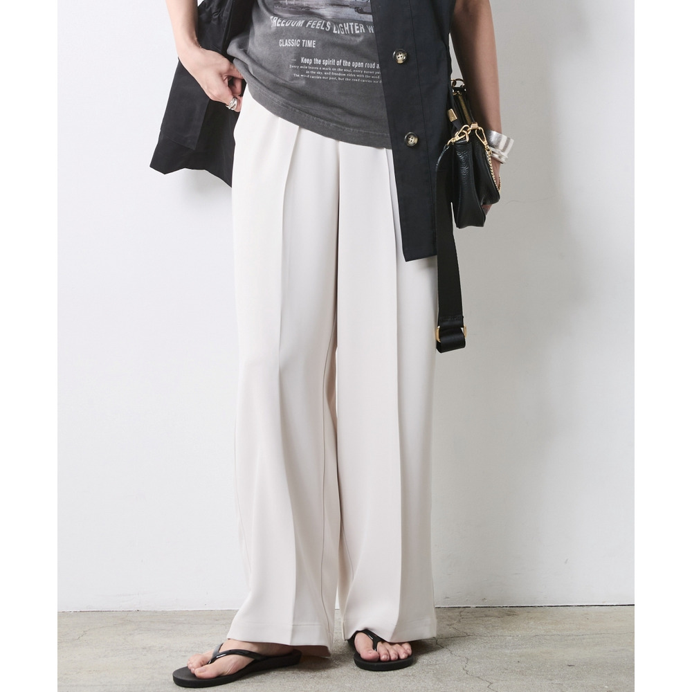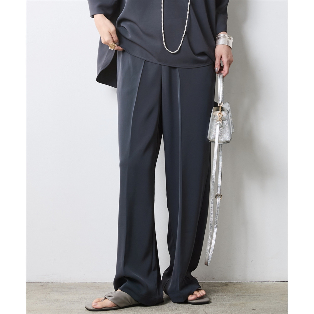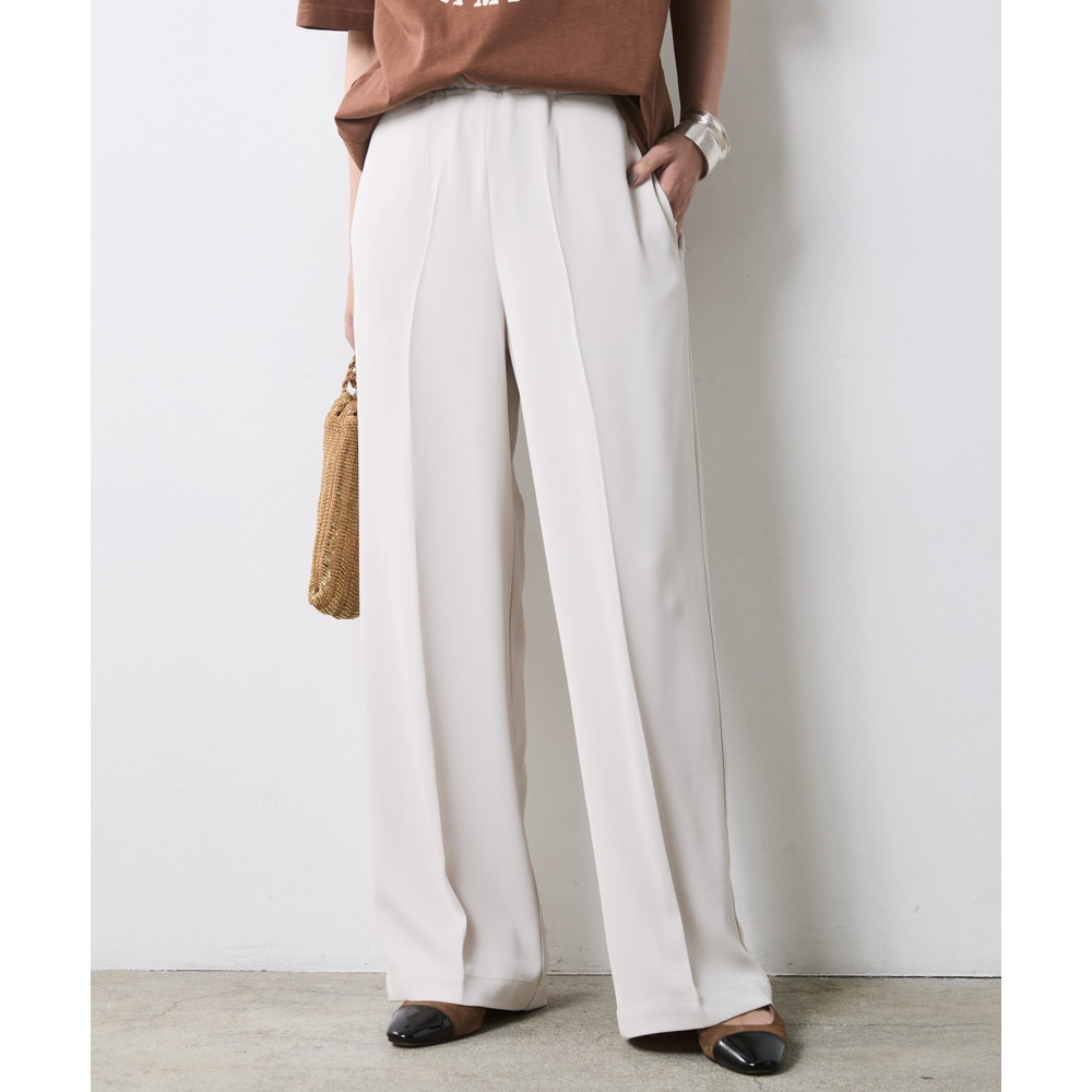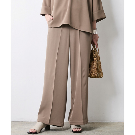 脚のラインを完全にカバーしながら、都会的で知的なシルエットを描き出す、大人のリラックスモードを象徴する一着。